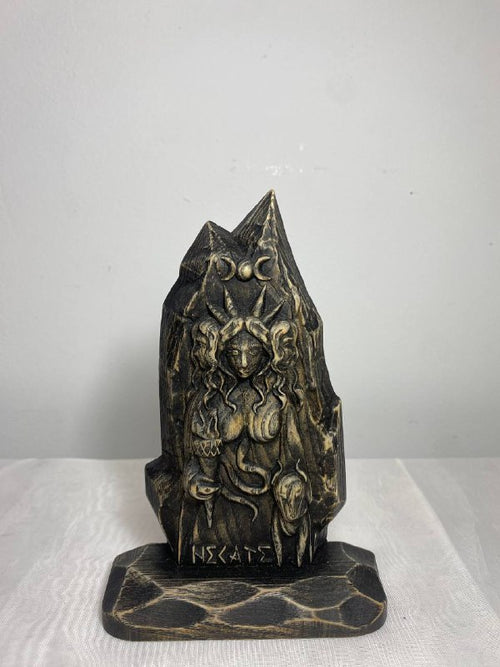 A statue of Hekate, the Greek goddess of darkness and witchcraft, is a perfect addition to any Wiccan altar. This handmade wooden statue is carved from ecological materials and is a beautiful reproduction of ancient Greek sculpture.