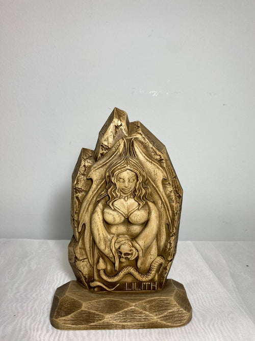 Lilith Wooden Statue – Mythological Art Decor
