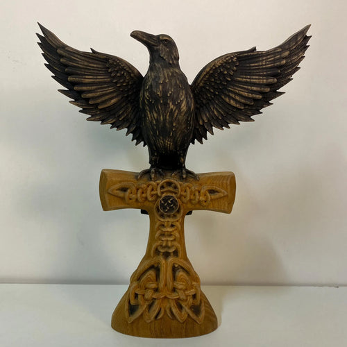 The raven in Morrigan’s mythology is more than a harbinger of death—it represents strength, insight, and the mysteries of transformation. This beautifully carved wooden statuette serves as a reminder of resilience, wisdom, and the eternal cycles of existence.