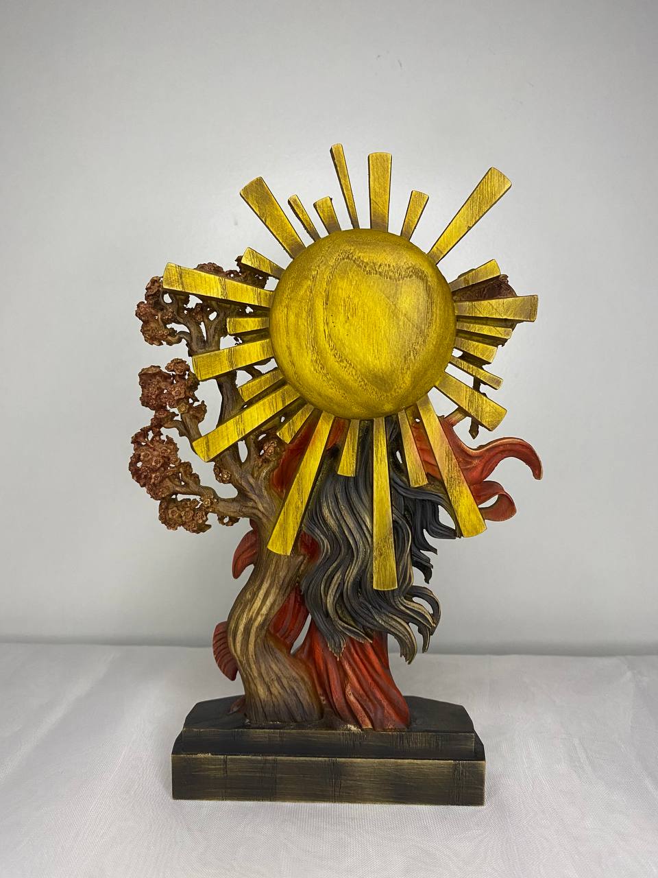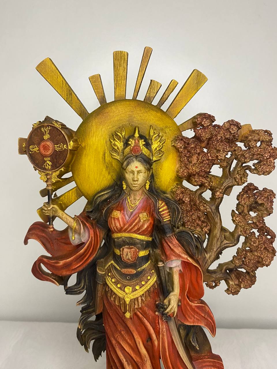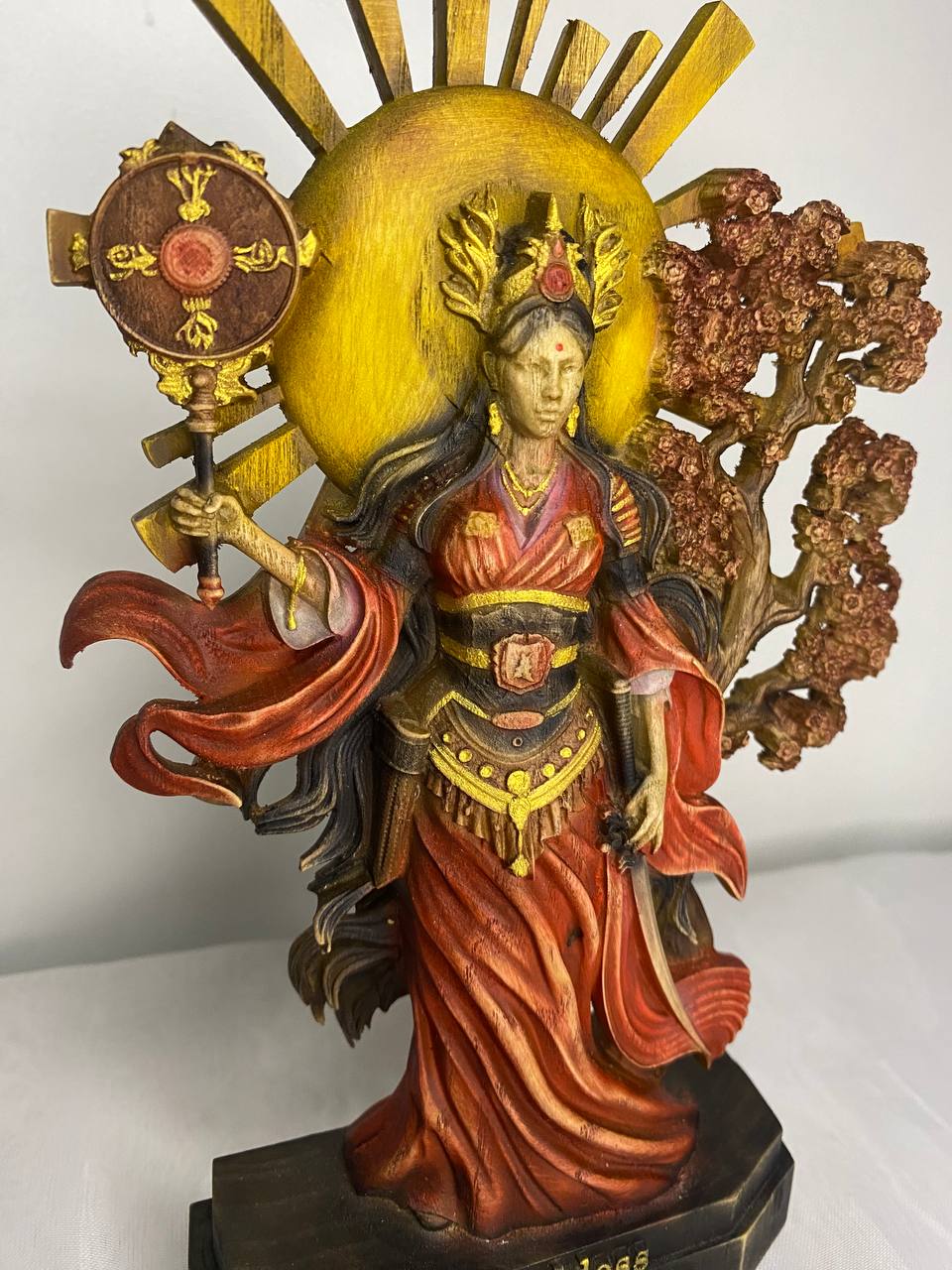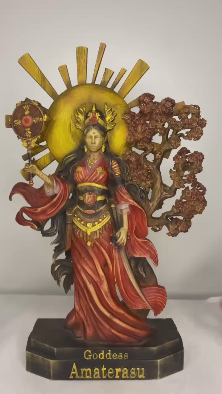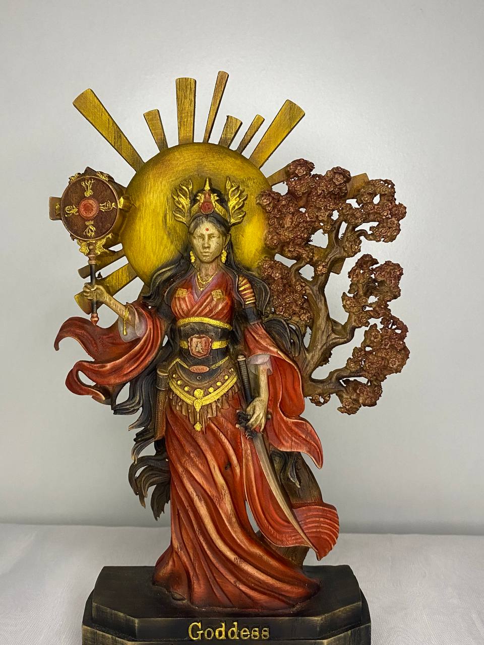 Bring the light and blessings of the sun goddess Amaterasu into your home with this elegant wooden statue — a unique work of art and a symbol of divine energy.