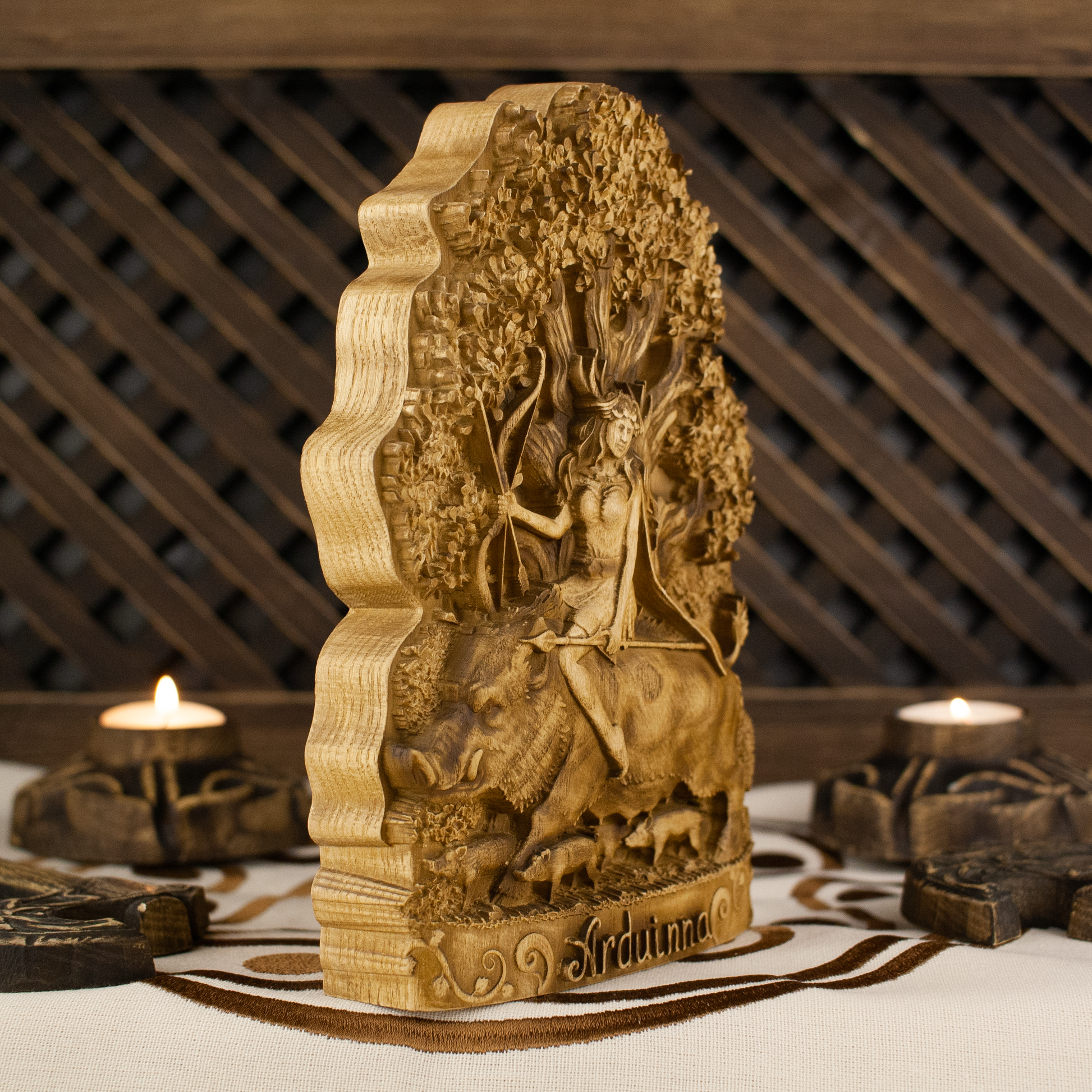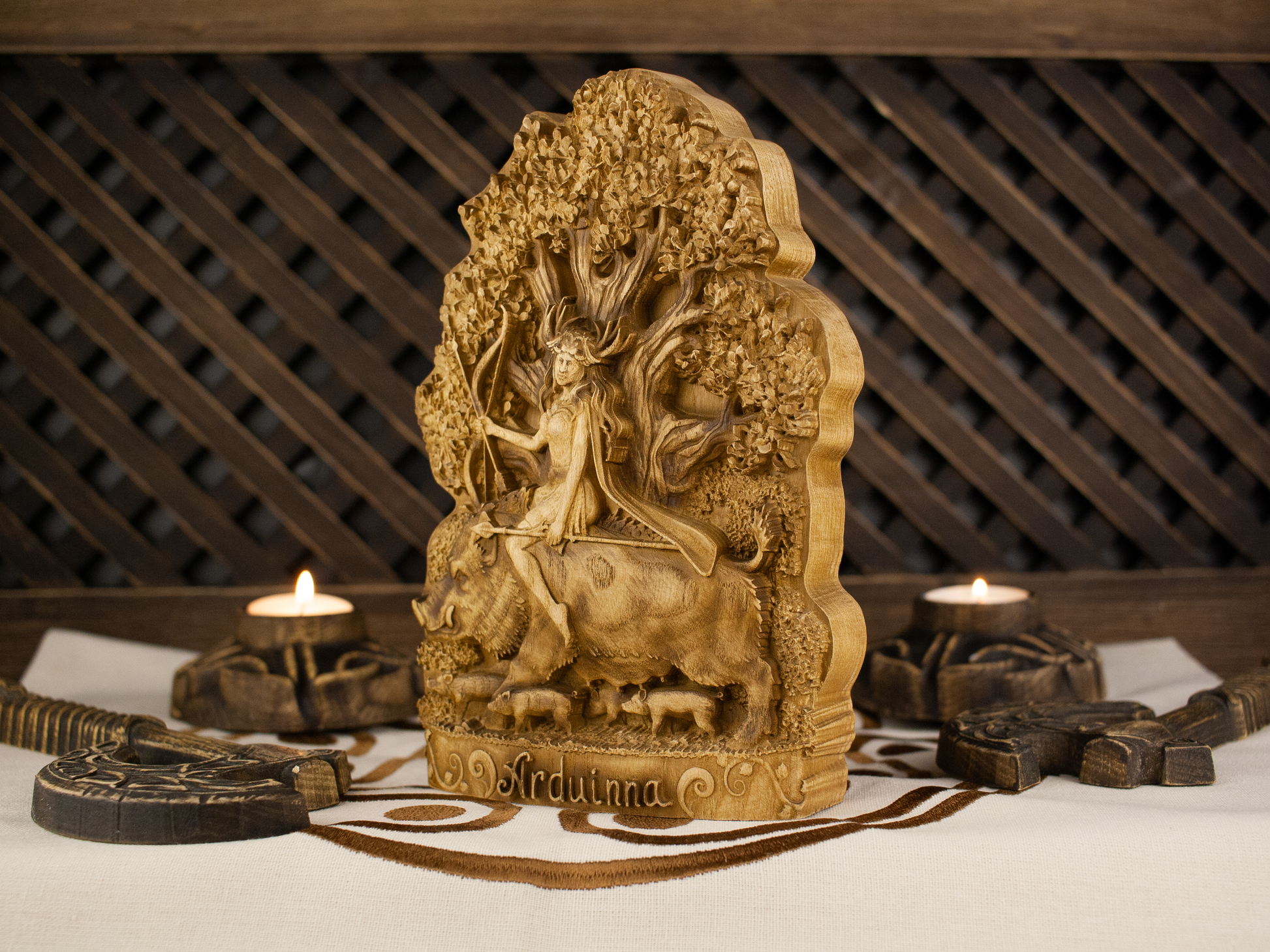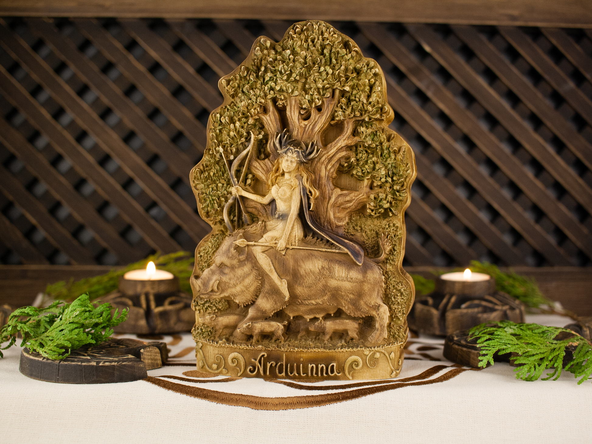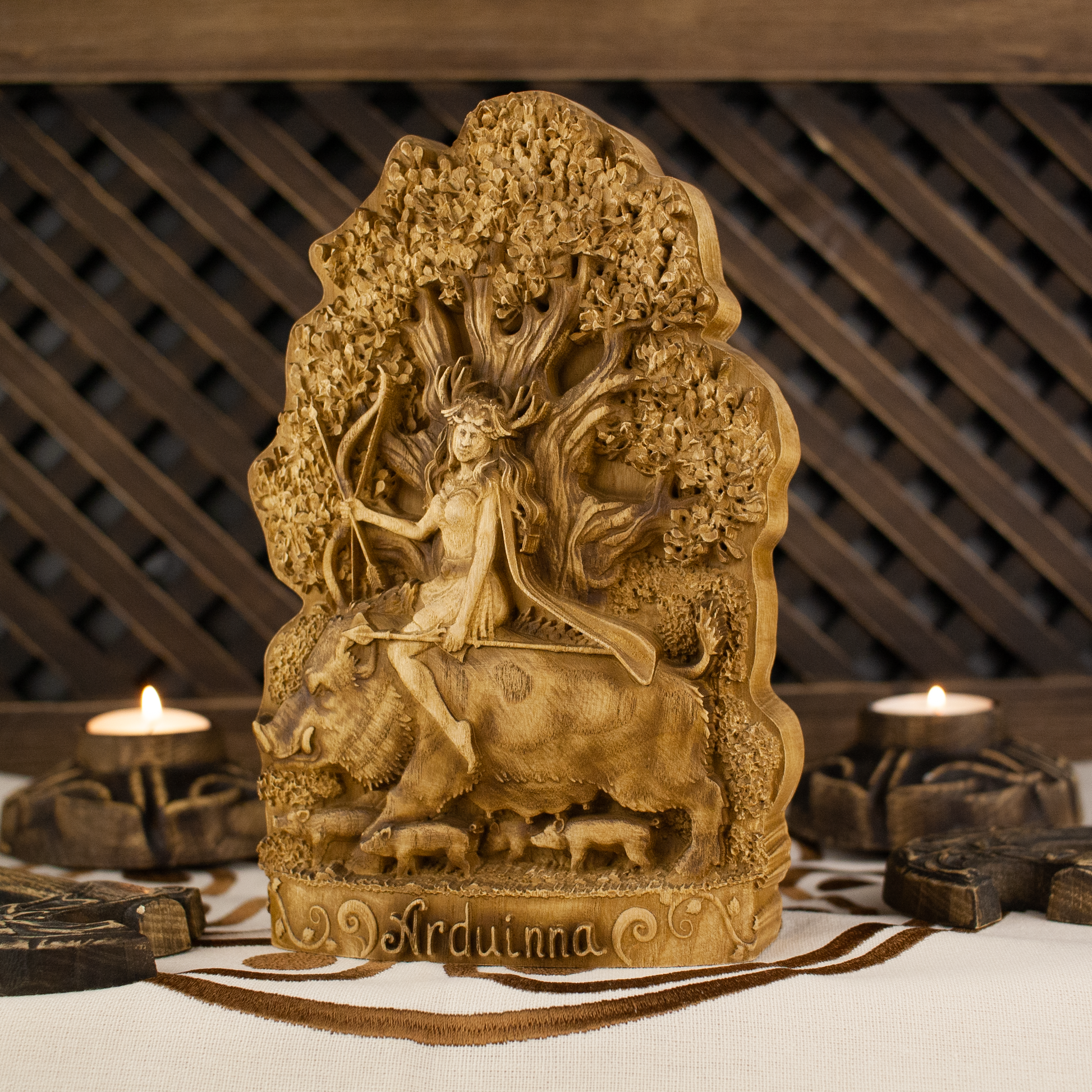 Arduinna Goddess statue Forest goddess Pagan altar Wooden statue Wood carving