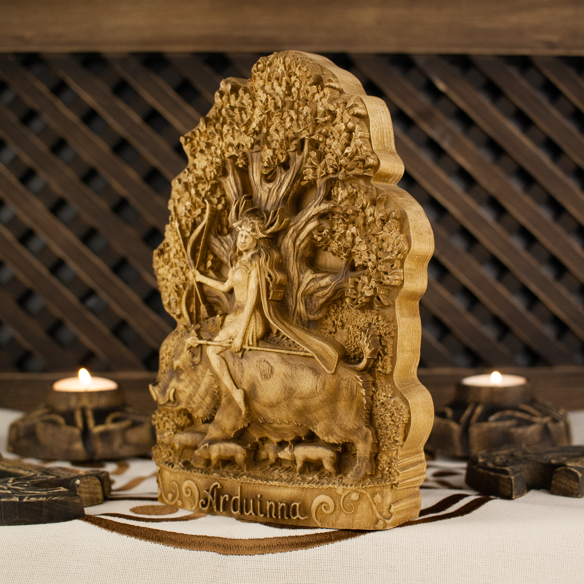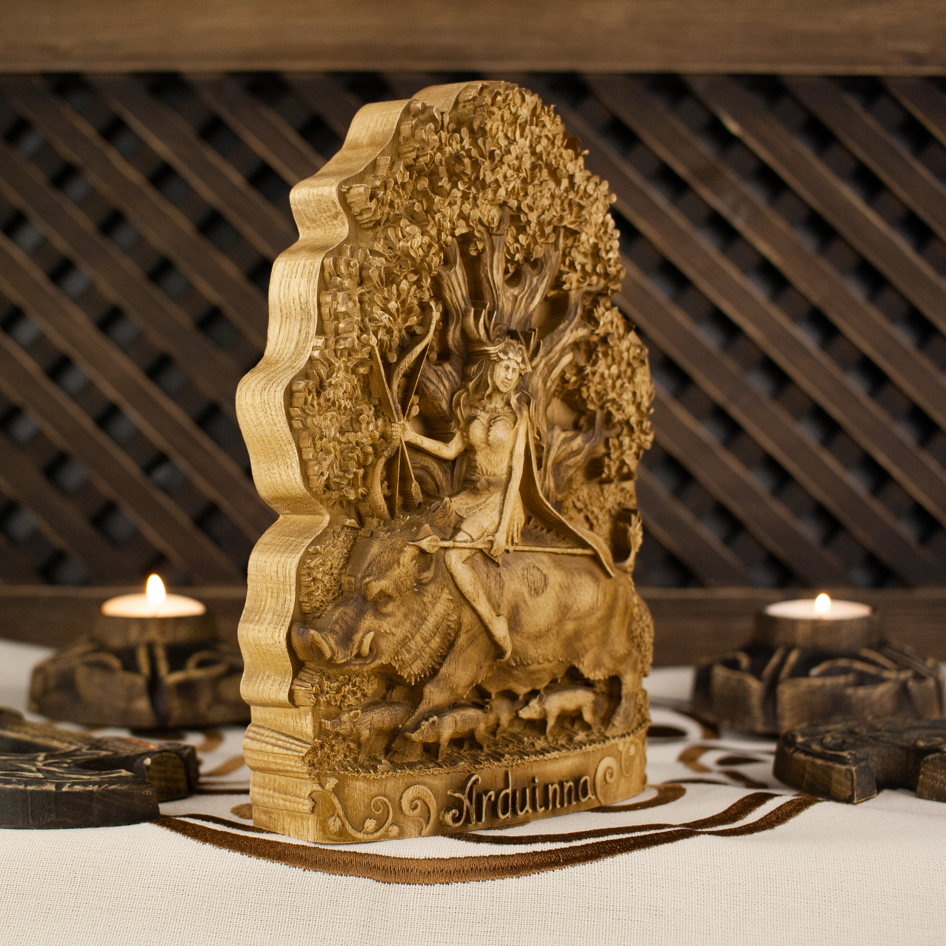 Arduinna was considered the protector of wildlife, animals and forests. Her cult may be associated with rites of hunting, fertility, and harvest, as well as with military aspects such as defense and combat.