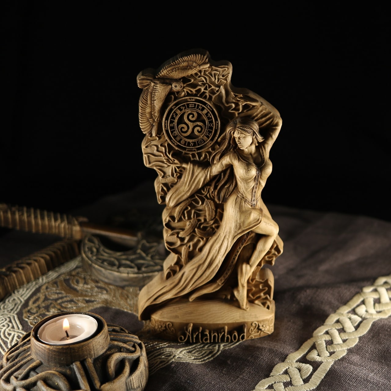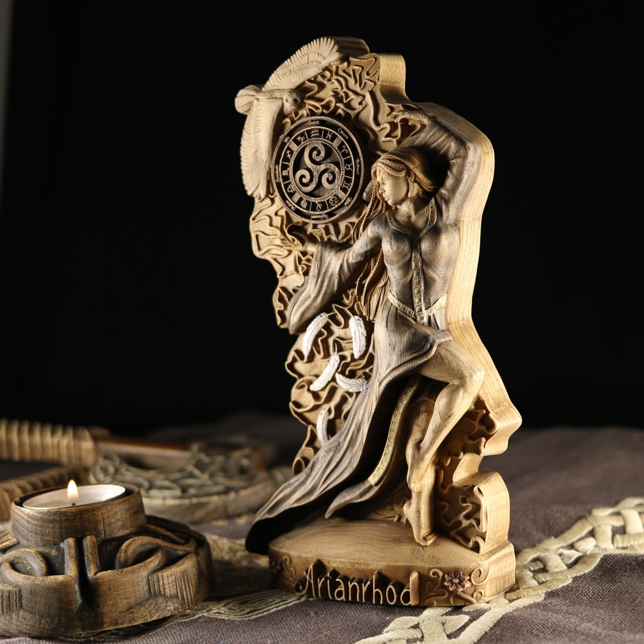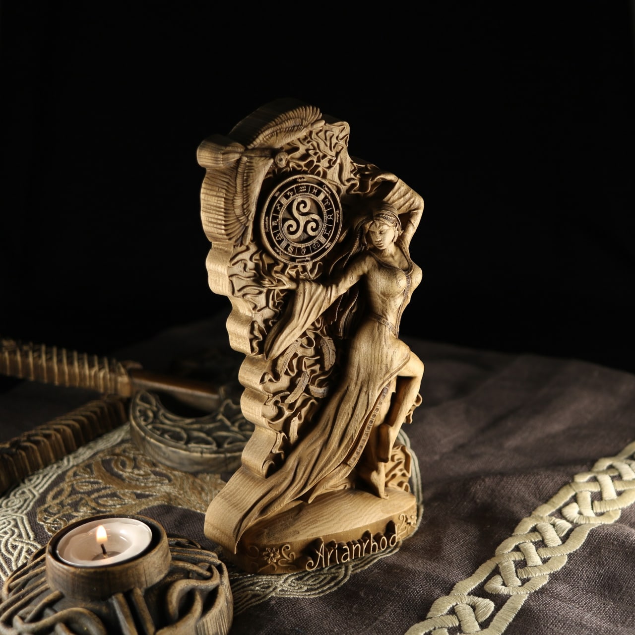 Arianrhod, Moon goddess, Wooden goddess statue Celtic goddess