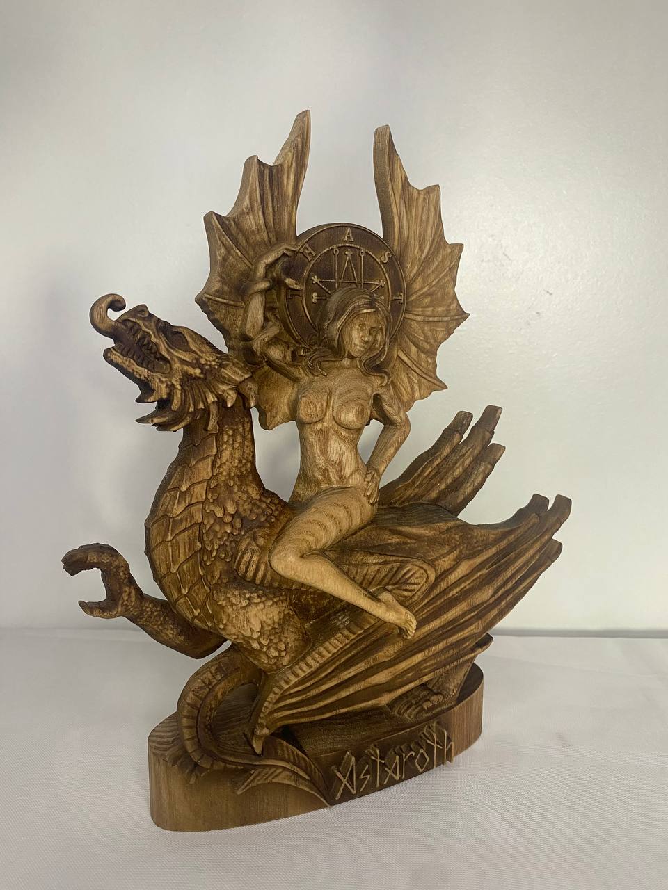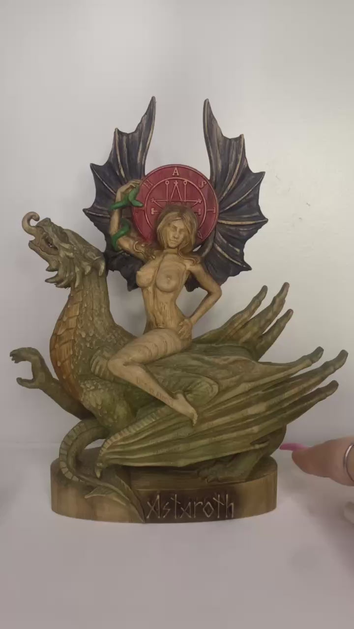 The wooden Astaroth statue is a symbol of power and magic.
