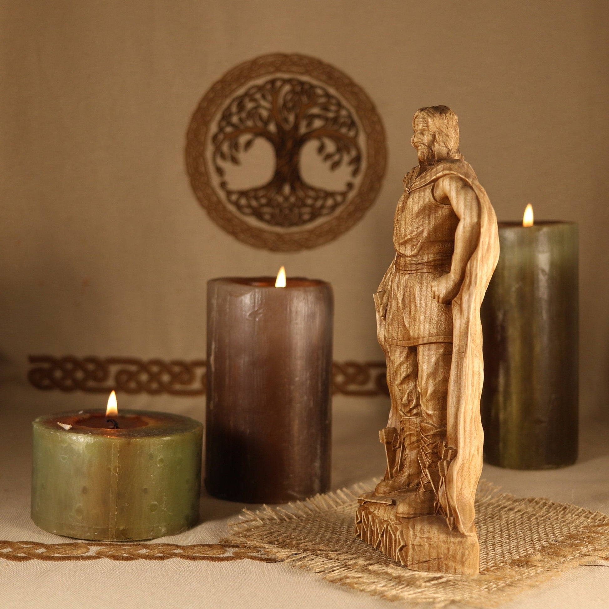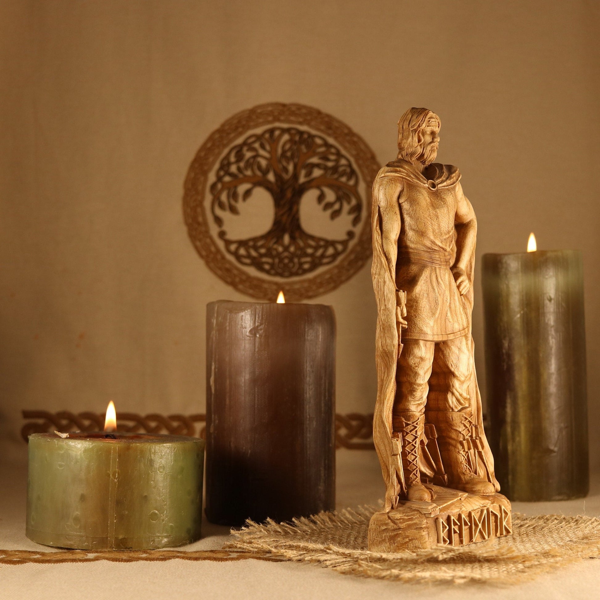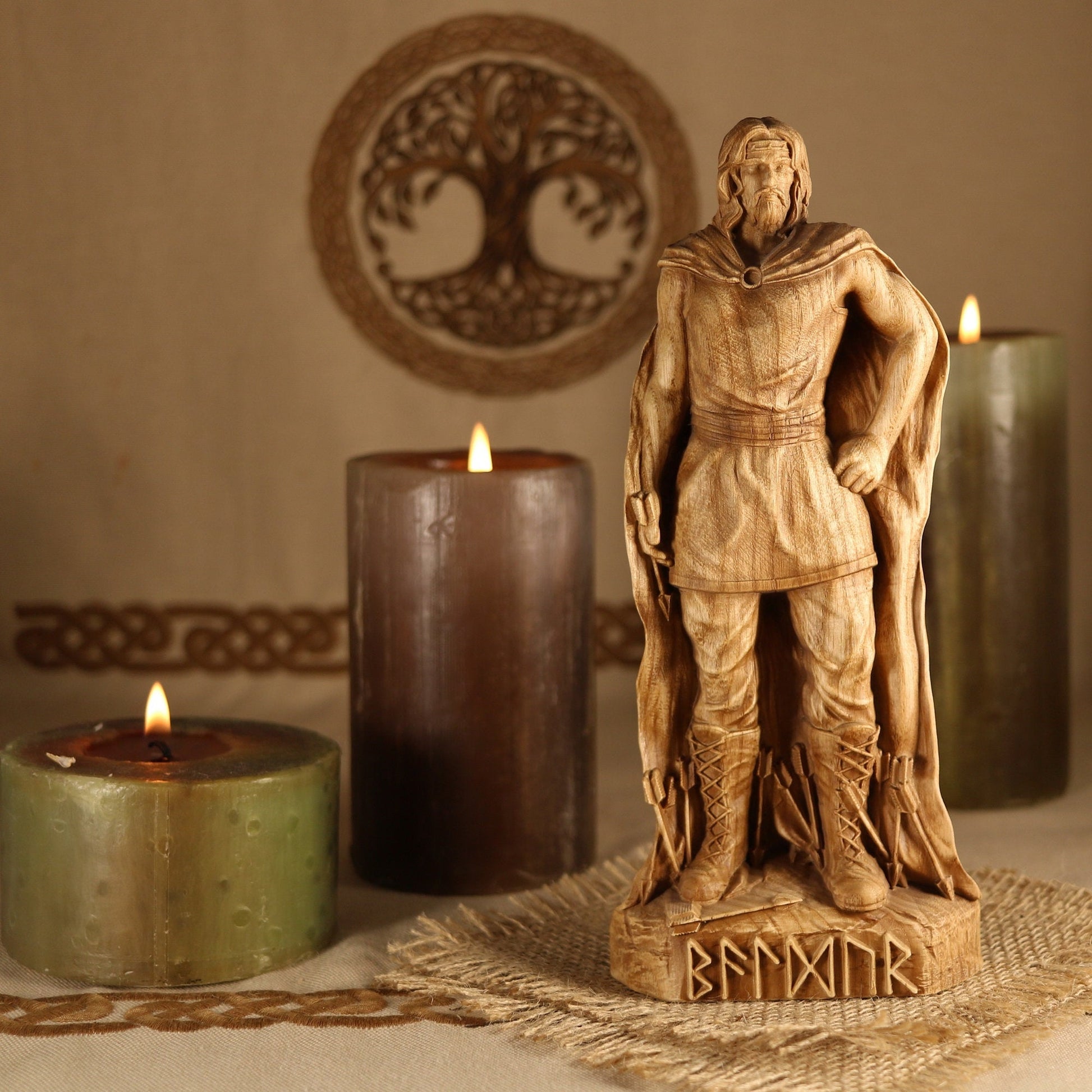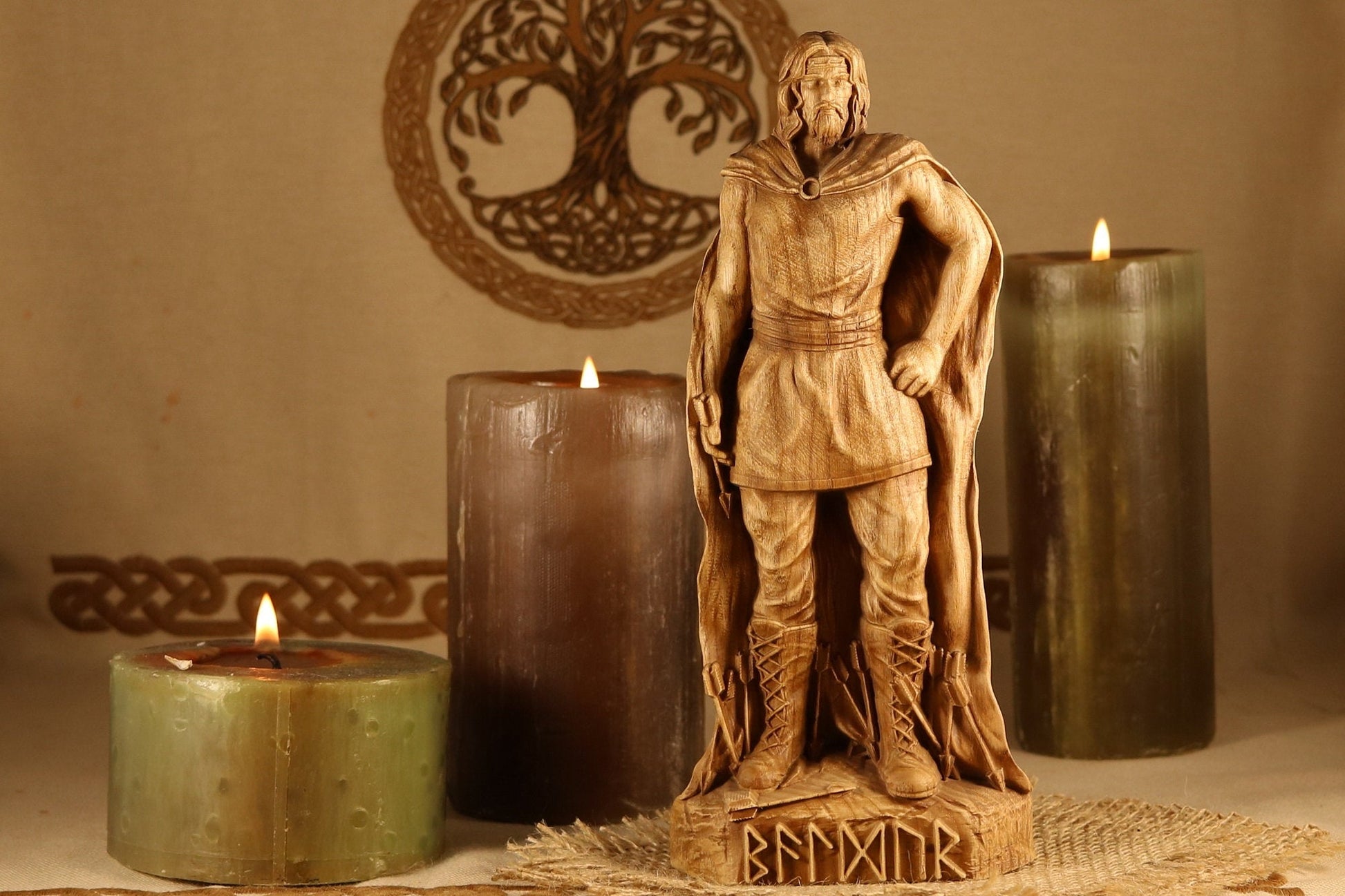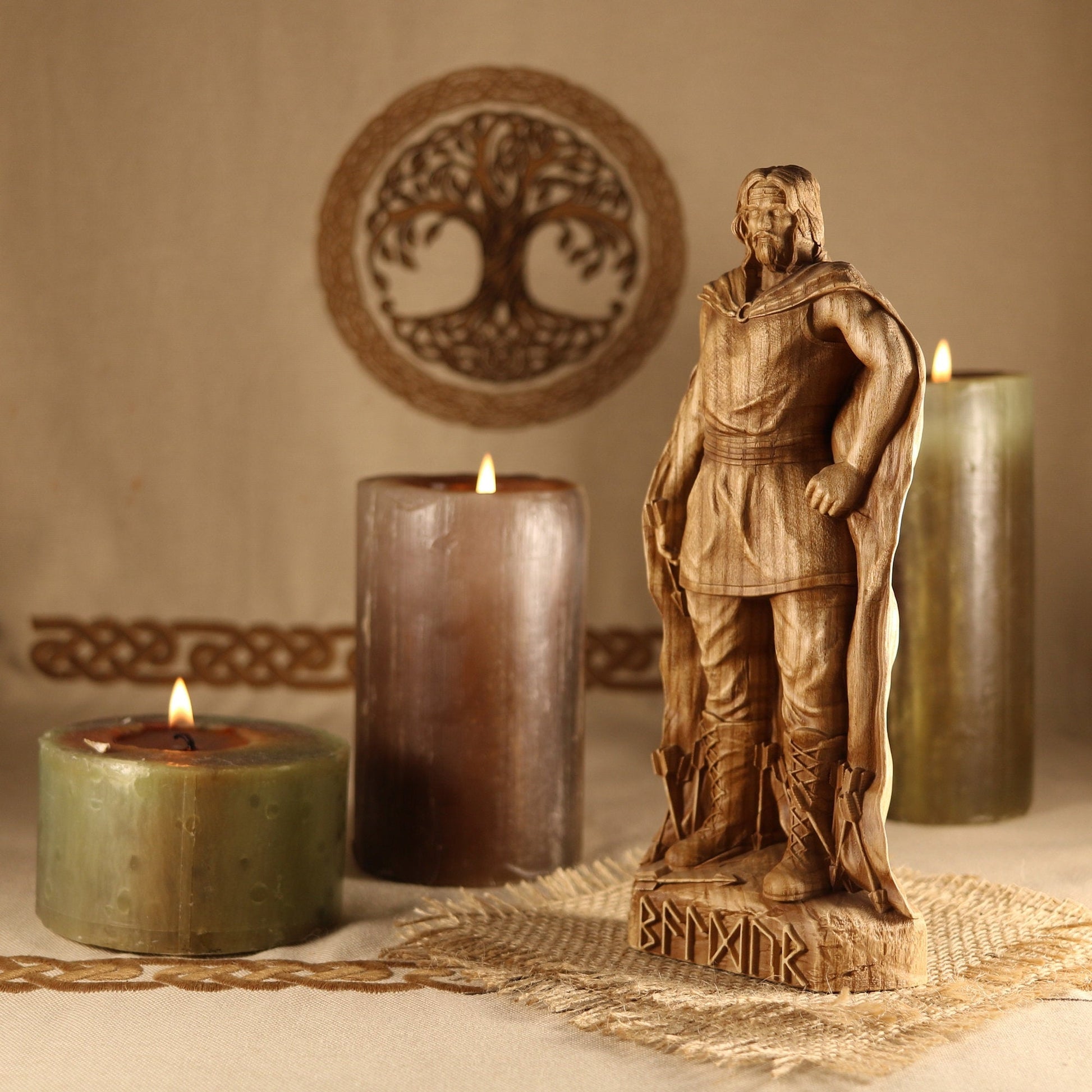 What do you get when you cross a god of light and life with a handmade wood carving sculpture? You get Baldr, the perfect addition to any Norse pagan decor!