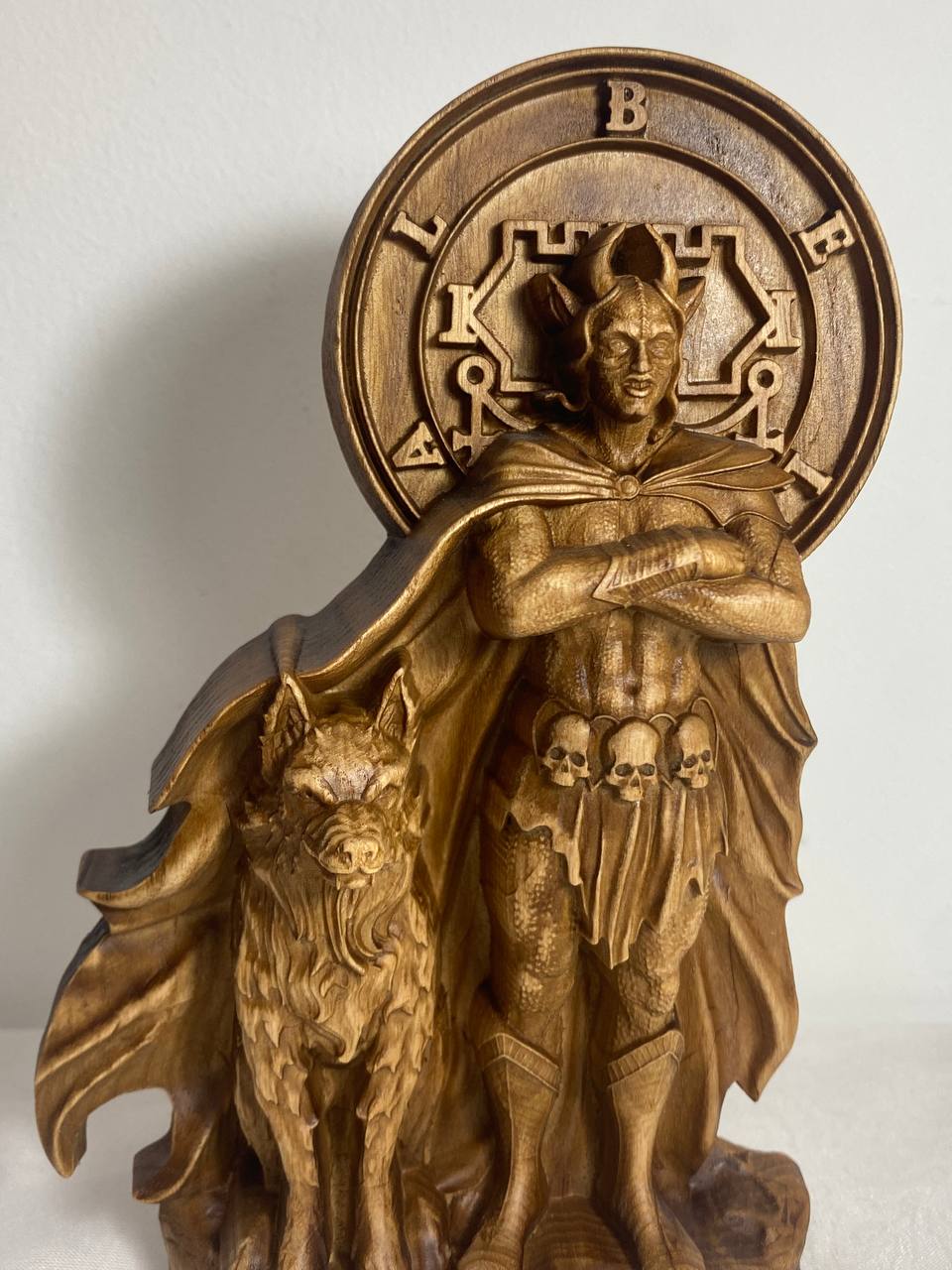 This is Belial, a powerful demon and ally of Satan. He is a handmade wooden statue, demon statue, sculpture carving from ecological material for occult decor, and satanic ritual.