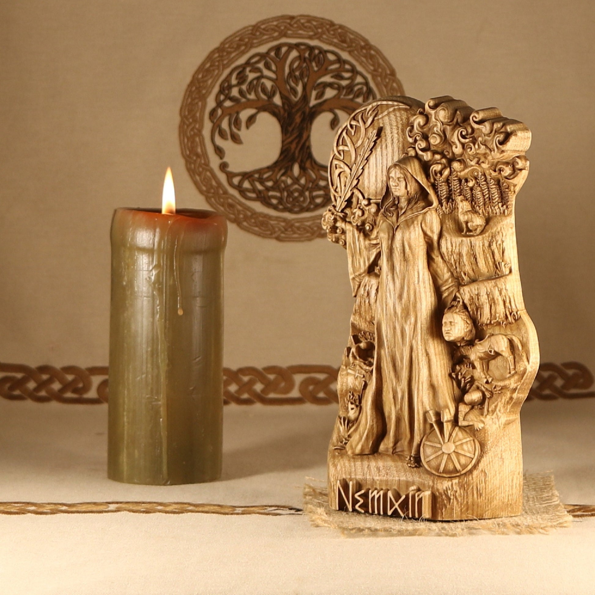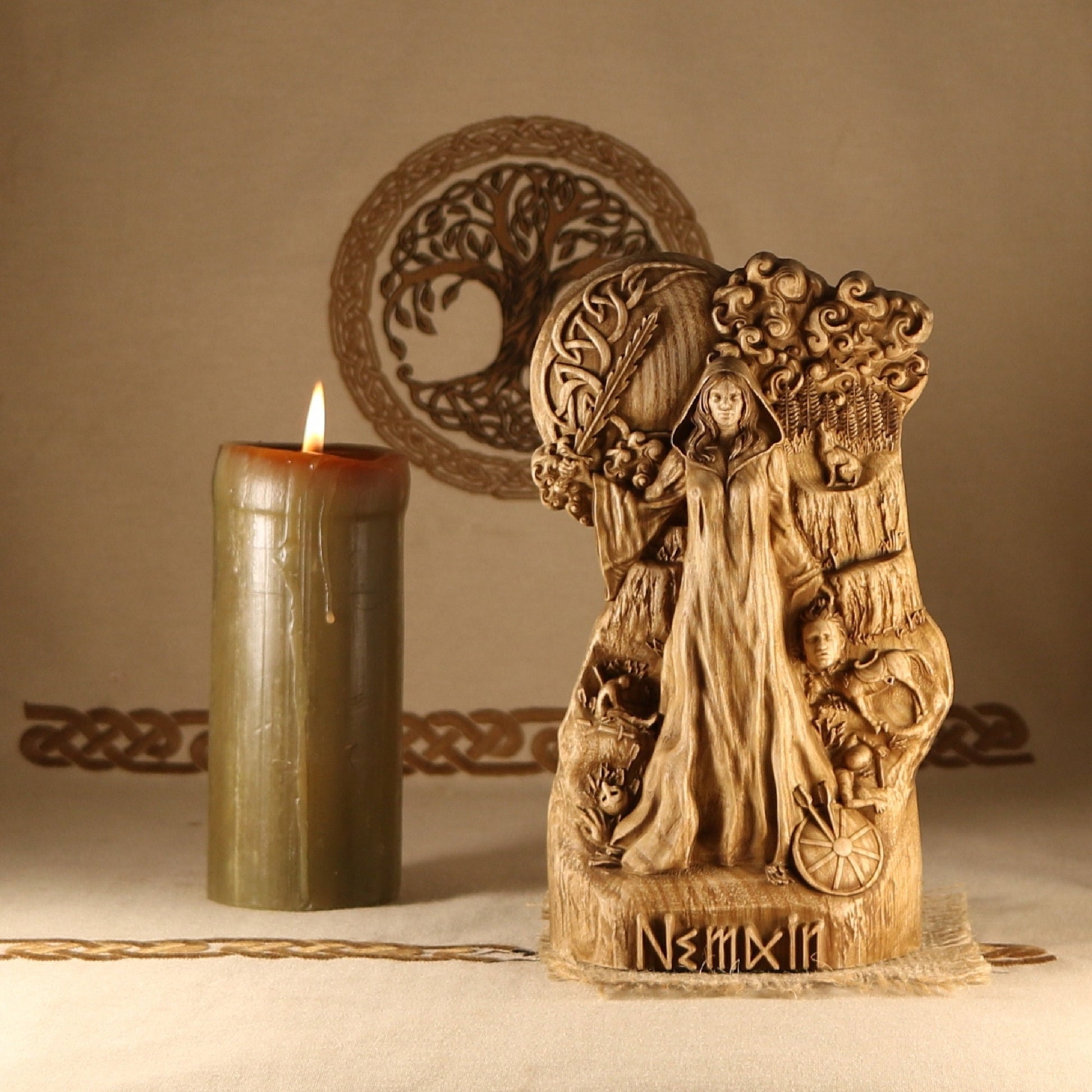 She is the tribal goddess of the Nemeters (a tribe that lived in the area on the Rhine between the Palatinate and Lake Constance before Romanization). She is therefore also a protective goddes of the sanctuaries. In the Alps, a group of goddesses called nemetials was worshiped for a very long time. The holy places that the Celts always found in the forest were under their protection. Hence the forest as such and the abundant water in Nemetia are sacred to her. She is associated with thermal waters and fertility rites.