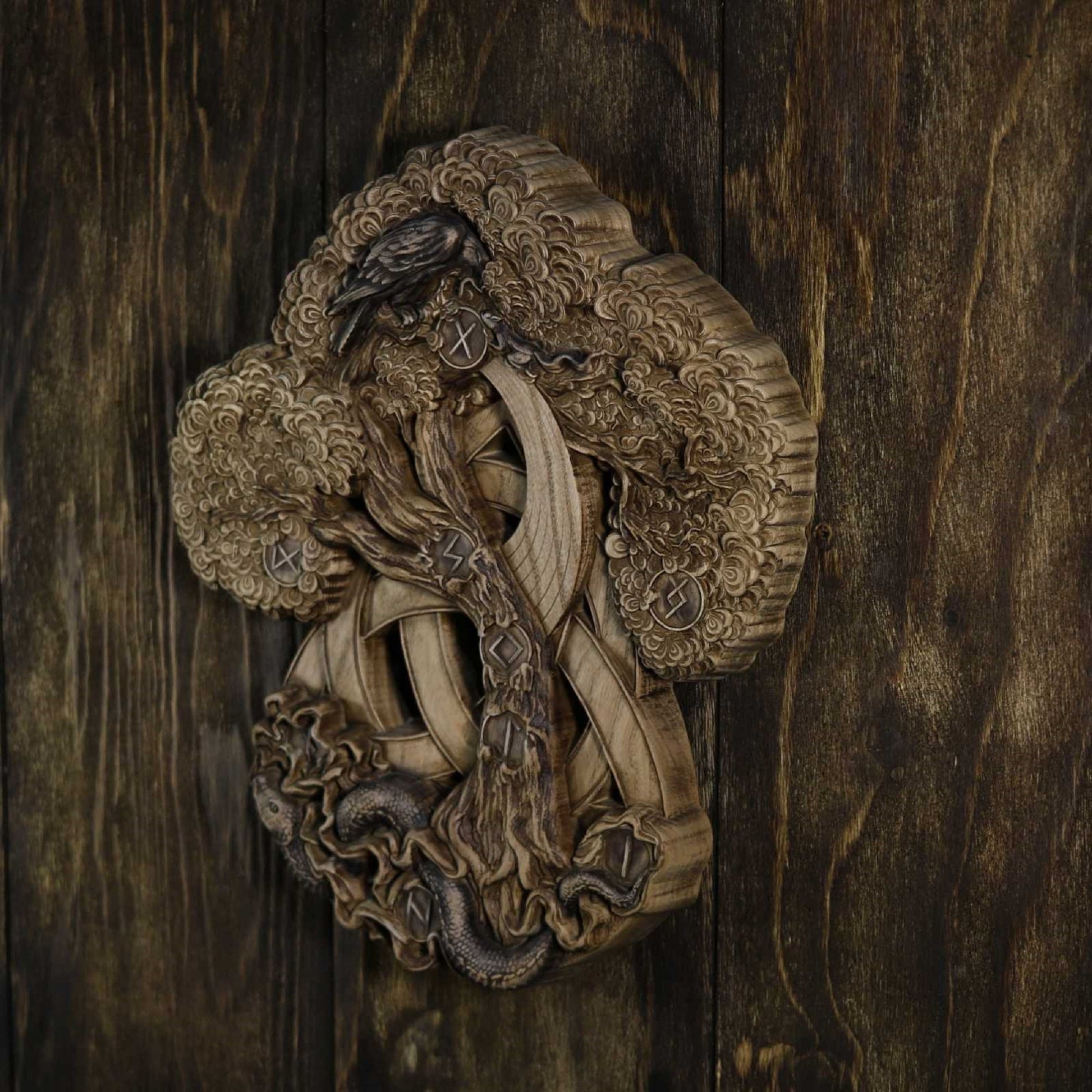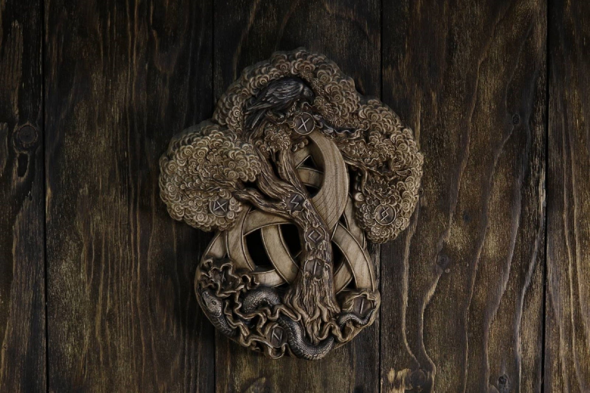 Introducing the Celtic tree of life! This handmade wood carving plaque is the perfect wall-hanging decor for any home. Made from ecological material, this Irish wall decor is both stylish and environmentally friendly. The tree of life design is beautiful and will add a touch of nature to any room. Varnished for durability, this nordic wall art is perfect for indoor or outdoor use. Give your home a piece of history with this unique Celtic tree of life carving.