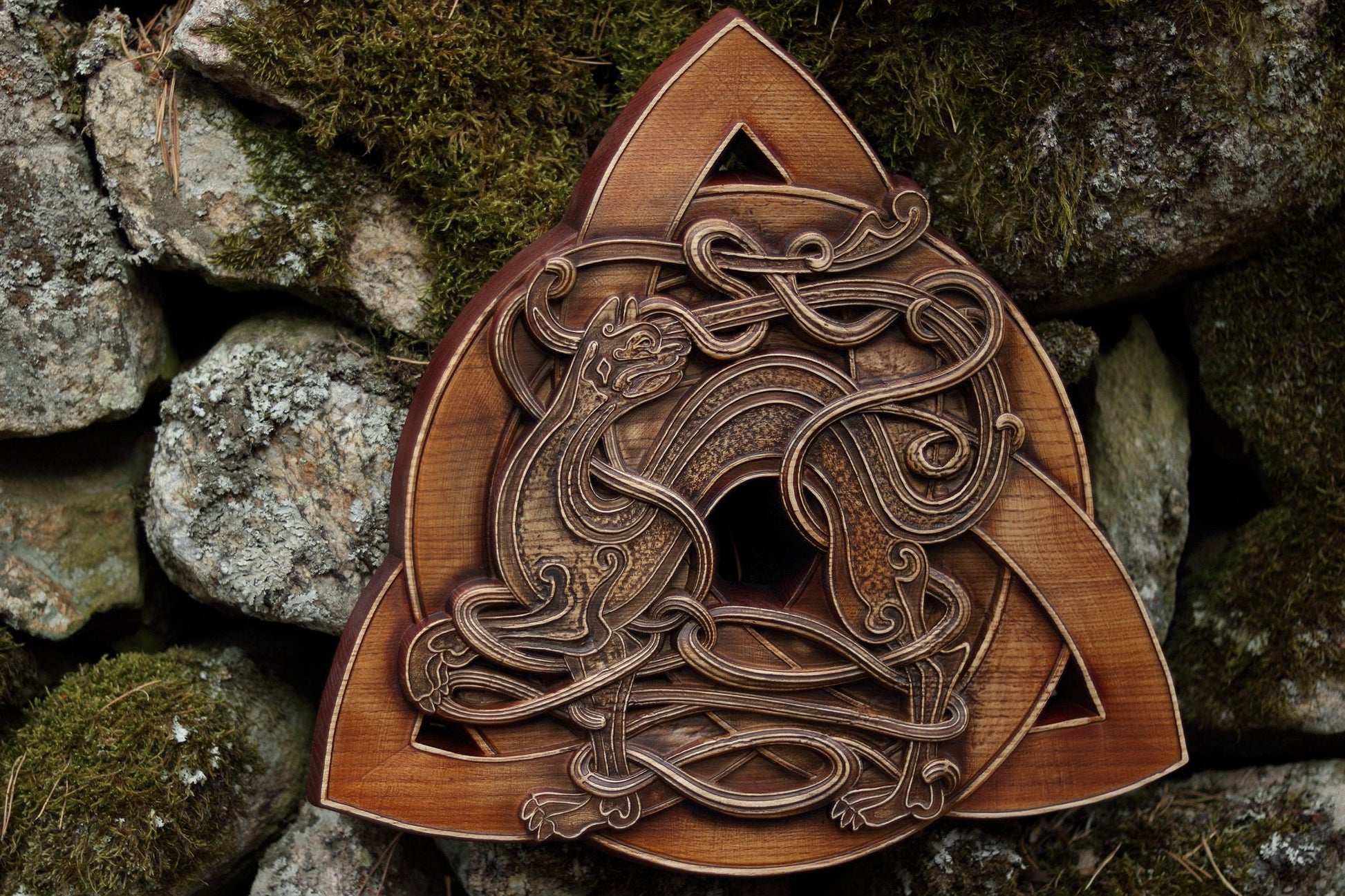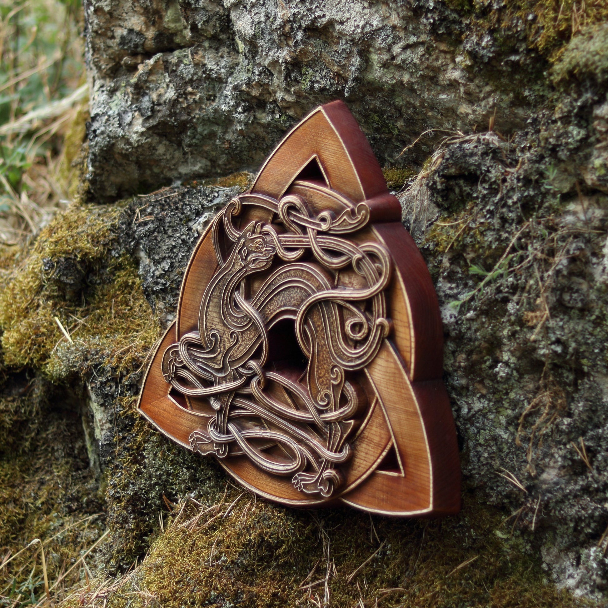 Introducing the Celtic Cat wood carving! This beautiful piece is hand-carved from ecological ashwood and features an intricately carved Celtic knot design. The perfect addition to your wall decor, this piece also makes a great gift for any cat lover or Irish heritage enthusiast. Hang it in your home or office as a stylish accent, or give it as a unique and thoughtful present. Carved with precision and finished with a protective varnish, the Celtic Cat is sure to add a touch of beauty and charm to any space. Order yours today!