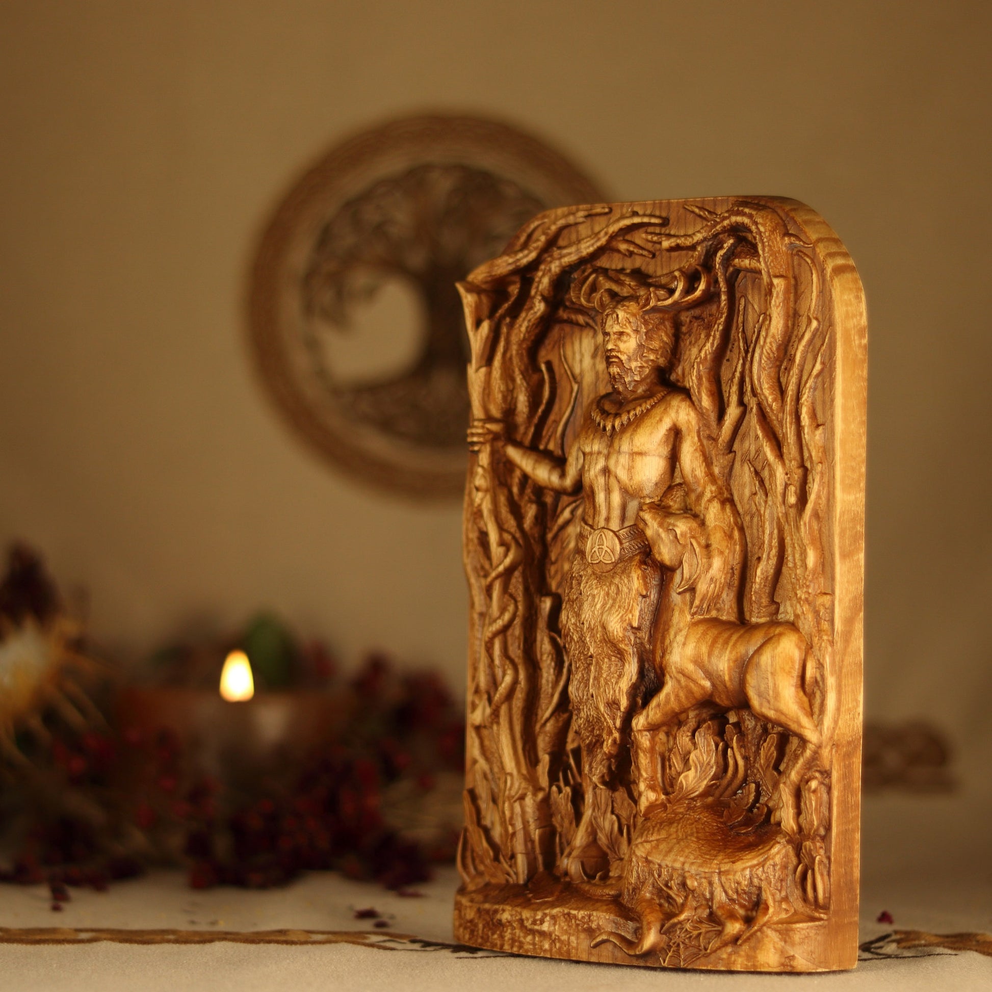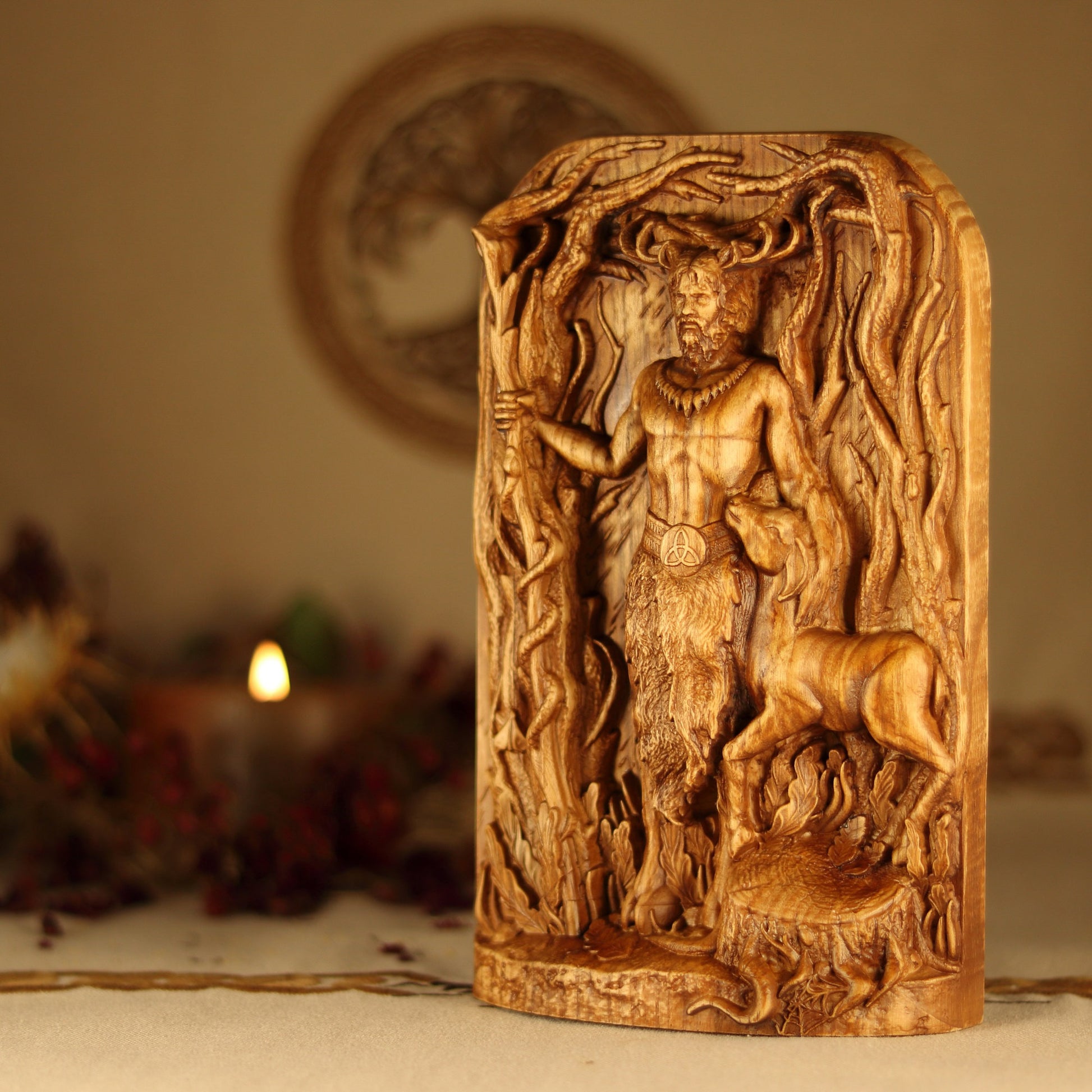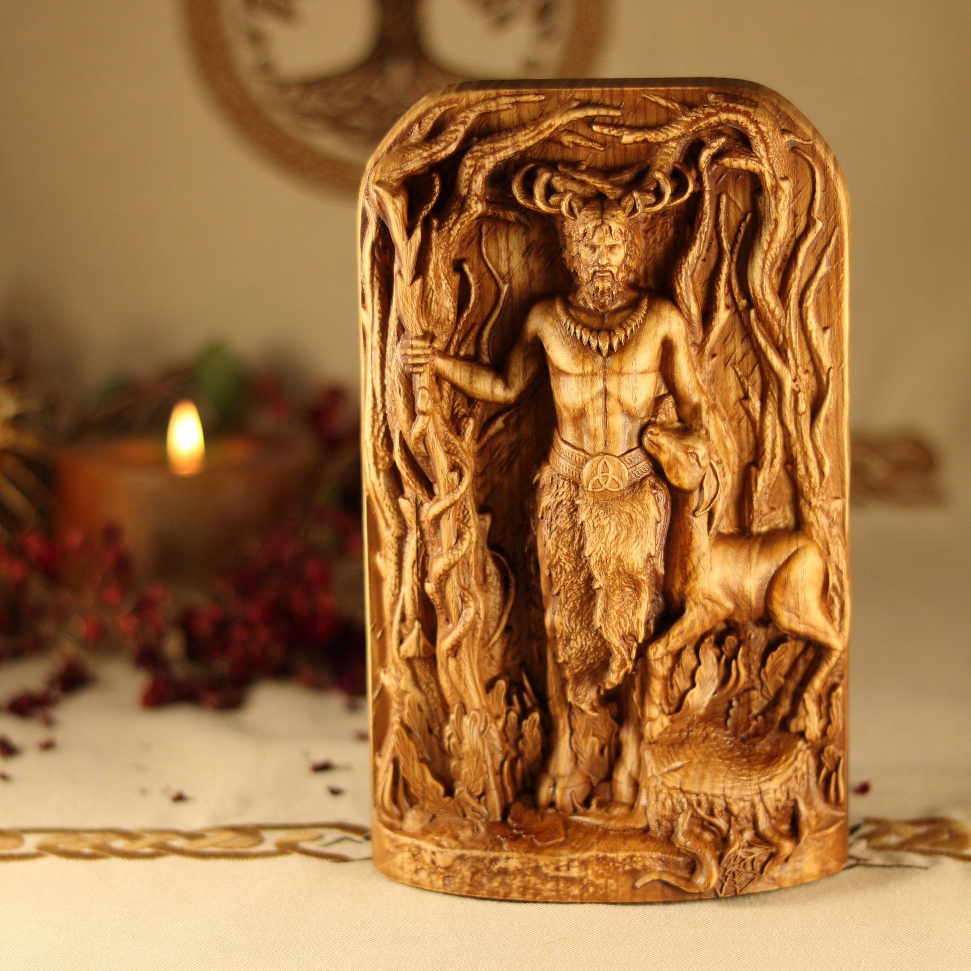 Introducing Cernunnos, the horned god of warriors and the afterlife! This handcrafted wooden statue is carved from ecological materials and coated with varnish for a long-lasting finish. Cernunnos is the perfect addition to any home or office and makes a great gift for anyone who appreciates fine art. Order your very own Cernunnos today!