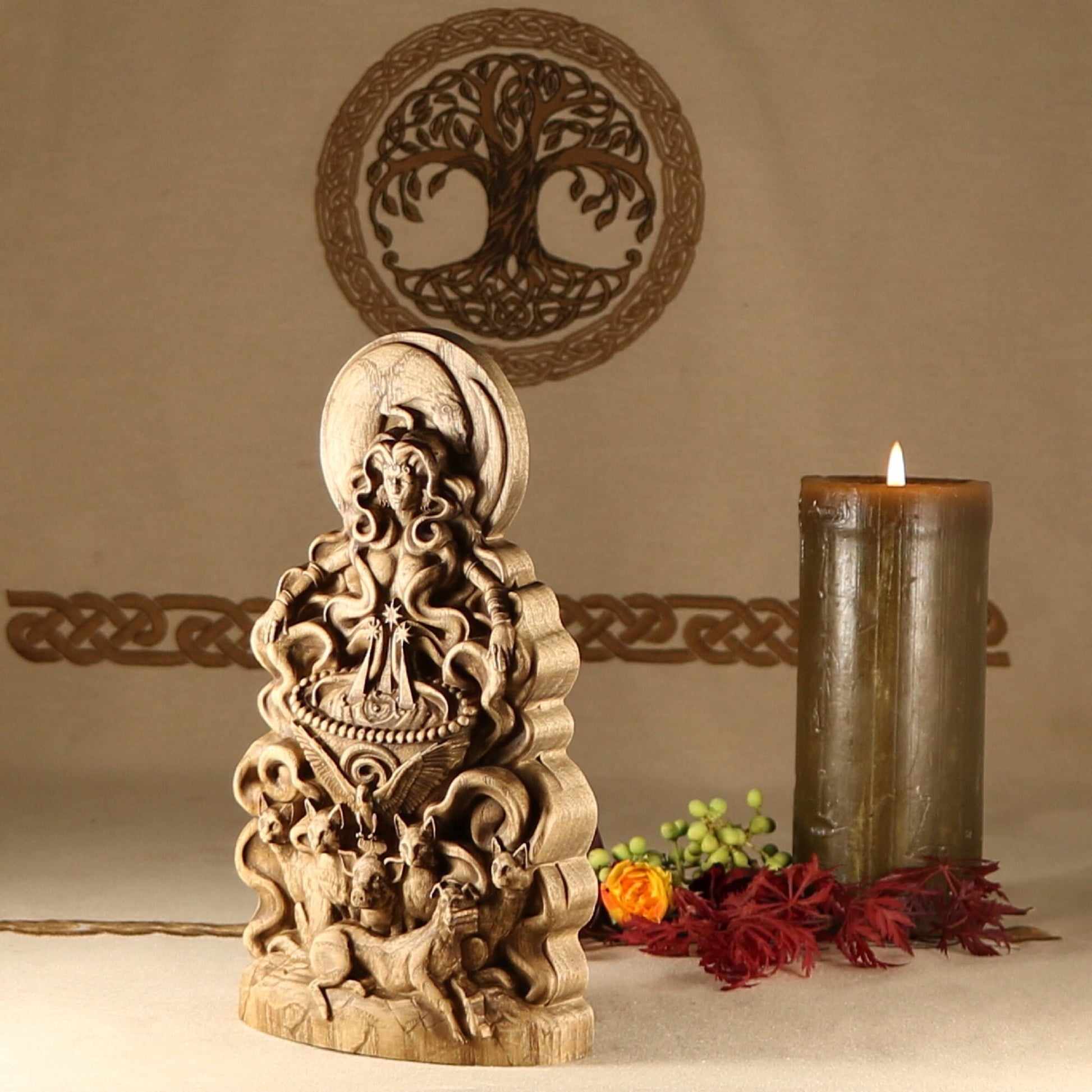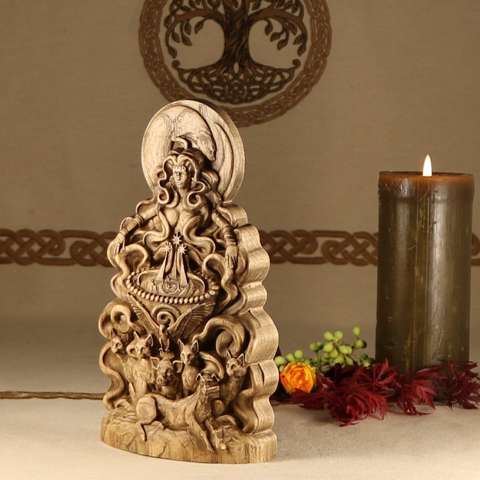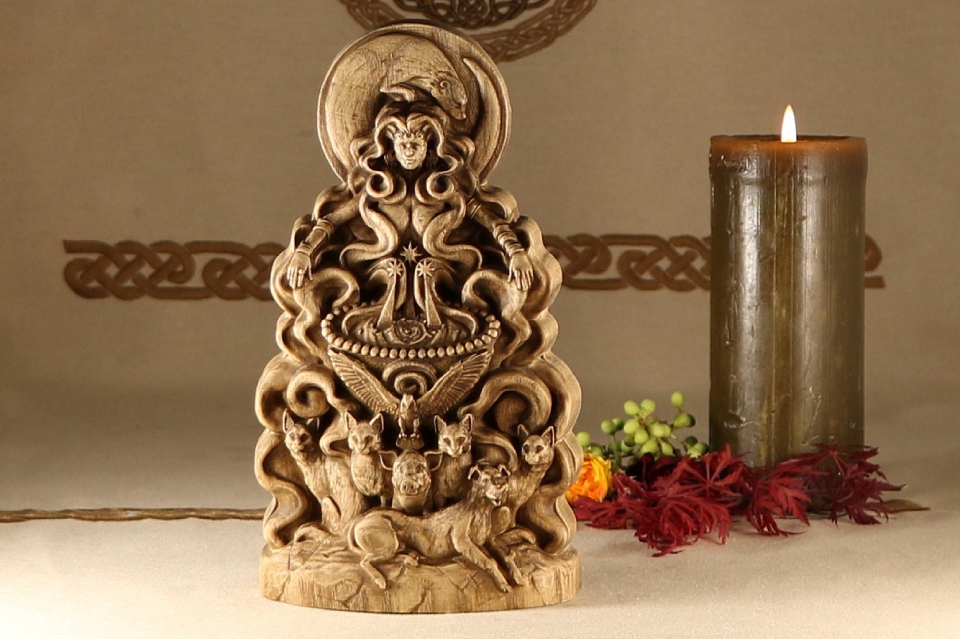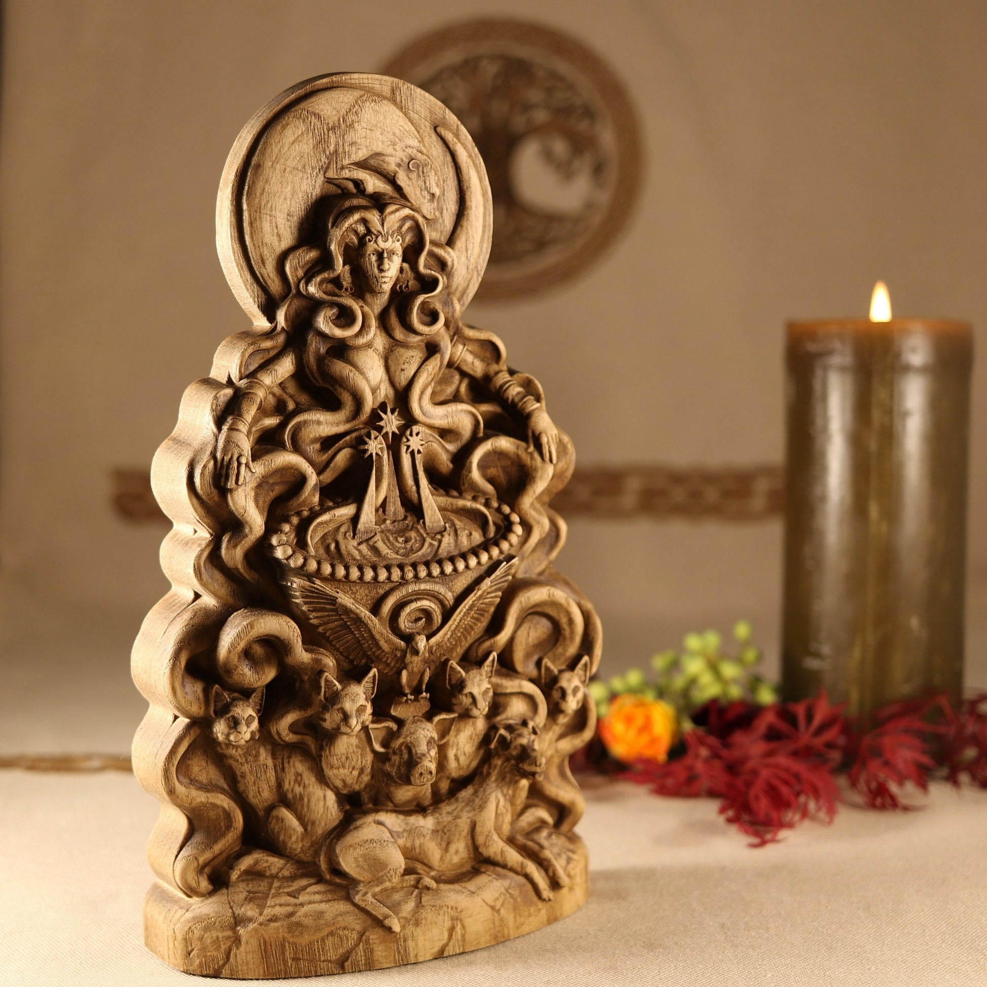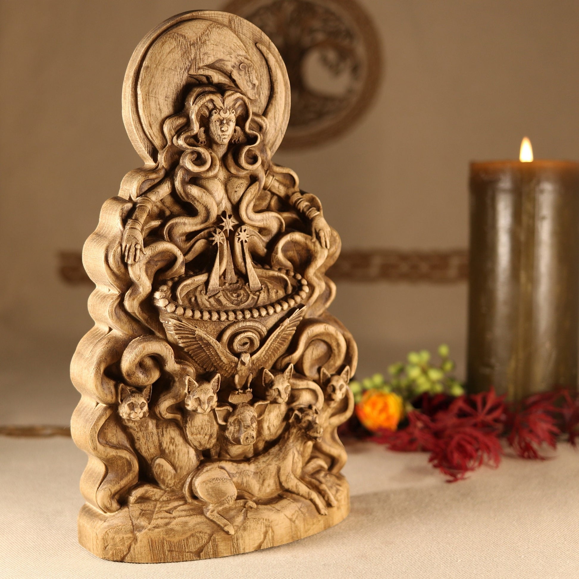 The statue is made according to the sketch Eilonwy le Fay Evernight is a traditional faerie folkloric witch, ordained High Priestess, death walker, occultist, illustrator, sculptor, and herbalist. She has a deep knowledge of world folklore, world mythologies, world religions, and many styles of witchcraft. She has been practicing witchcraft for over twenty seven years and has studied it very seriously as an occultist for twelve years. She studied illustration, character design, and sculpture at the Academy of Art University. Eilonwy le Fay Evernight uses their folkloric and mythological knowledge, as well as their spiritual experiences to design esoteric sculptures and illustrations that are heirloom worthy for any devotees altars. You can follow her on Twitter @EilonwyEvernig1, on Instagram at eilonwyevernight, and at her personal witchcraft shop soon to reopen BeyondShadows on Etsy.