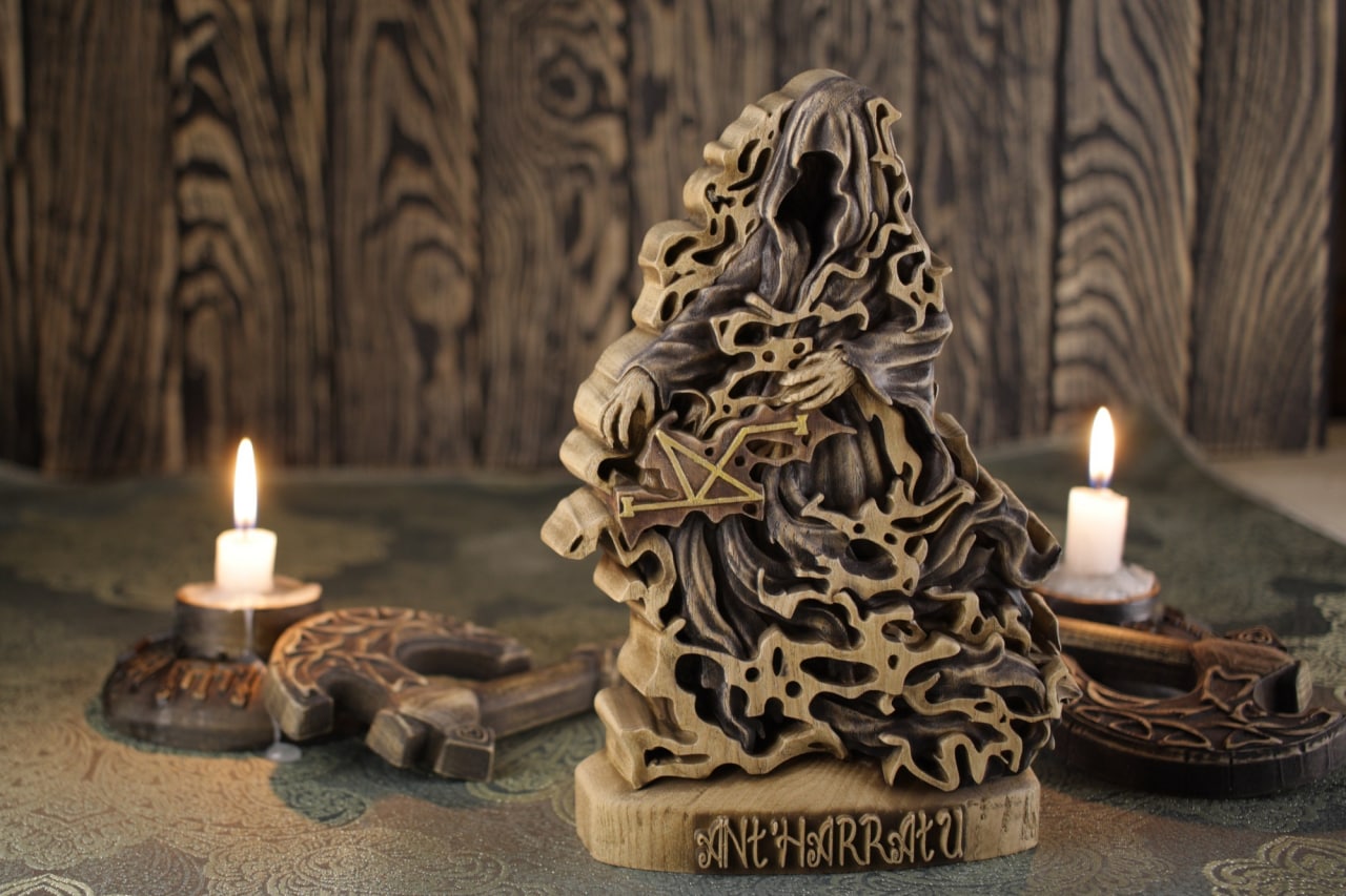 The Satanic Ant’Harratu wood carving is truly a work of art. It would make a great addition to any home or office décor. This unique piece is sure to get people talking and admiring your taste in art. Order your very own Satan Ant’Harratu wood carving today!