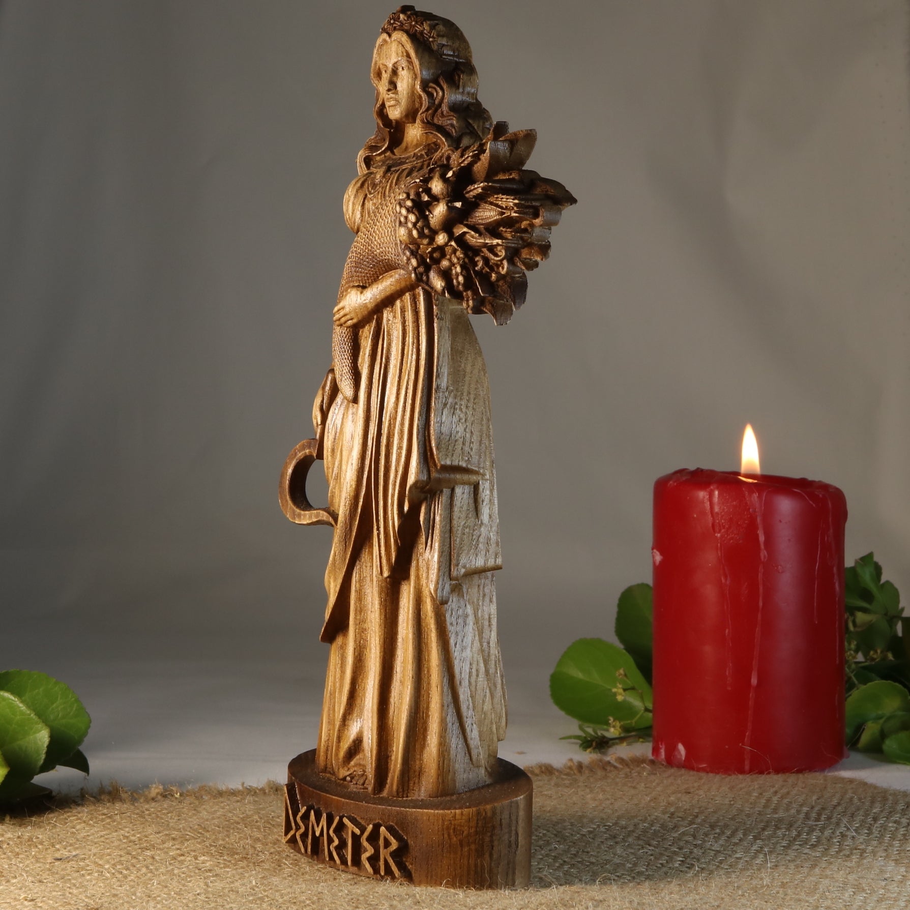 This exquisite wooden figurine depicts Demeter, the ancient Greek goddess of fertility, the earth, and the harvest. Carefully handcrafted with intricate detailing, it embodies both artistry and mythology, making it a striking addition to any collection or interior decor.