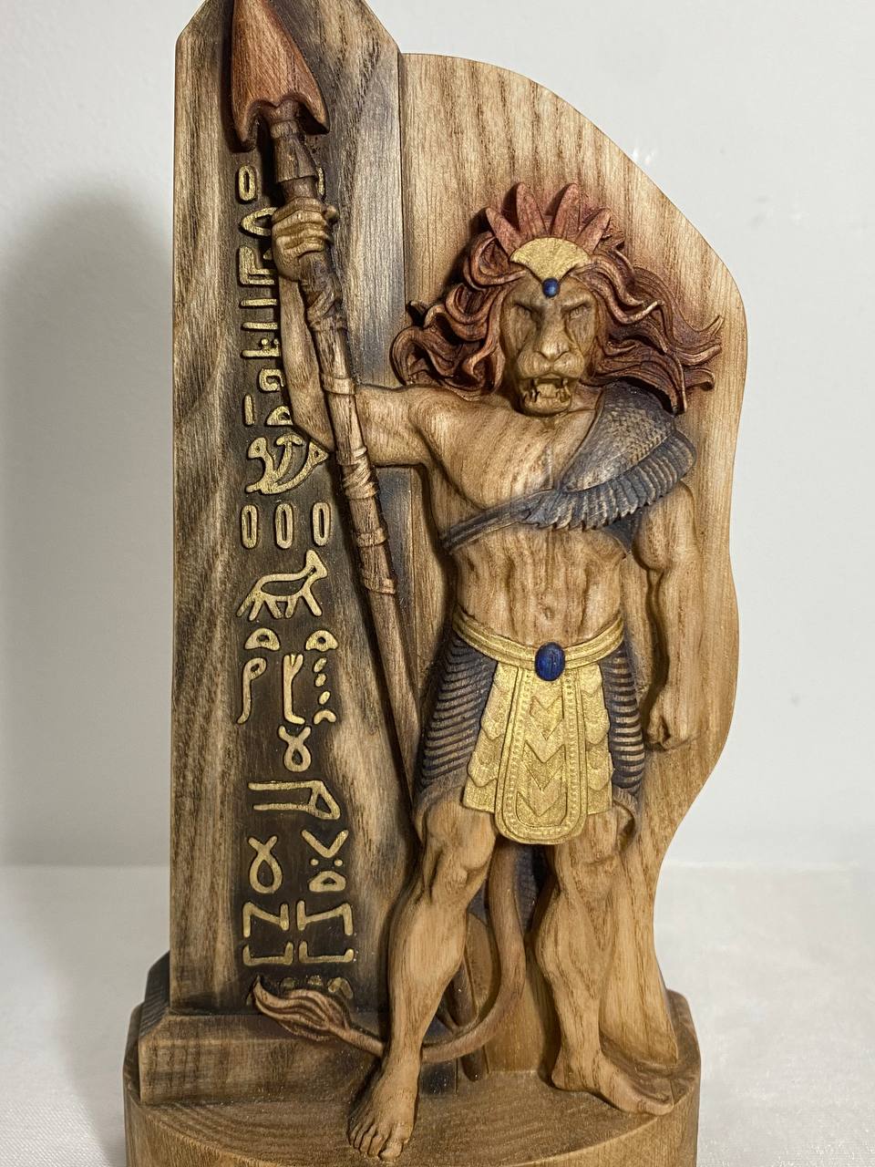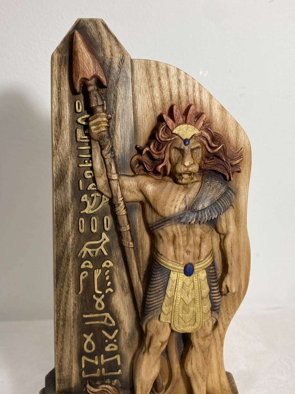 Egyptian statue Anhur Egyptian god Kemetic Anhur lion Egyptian decor Egyptian mythology Ancient egyptian Egyptian goddess Goddess carving