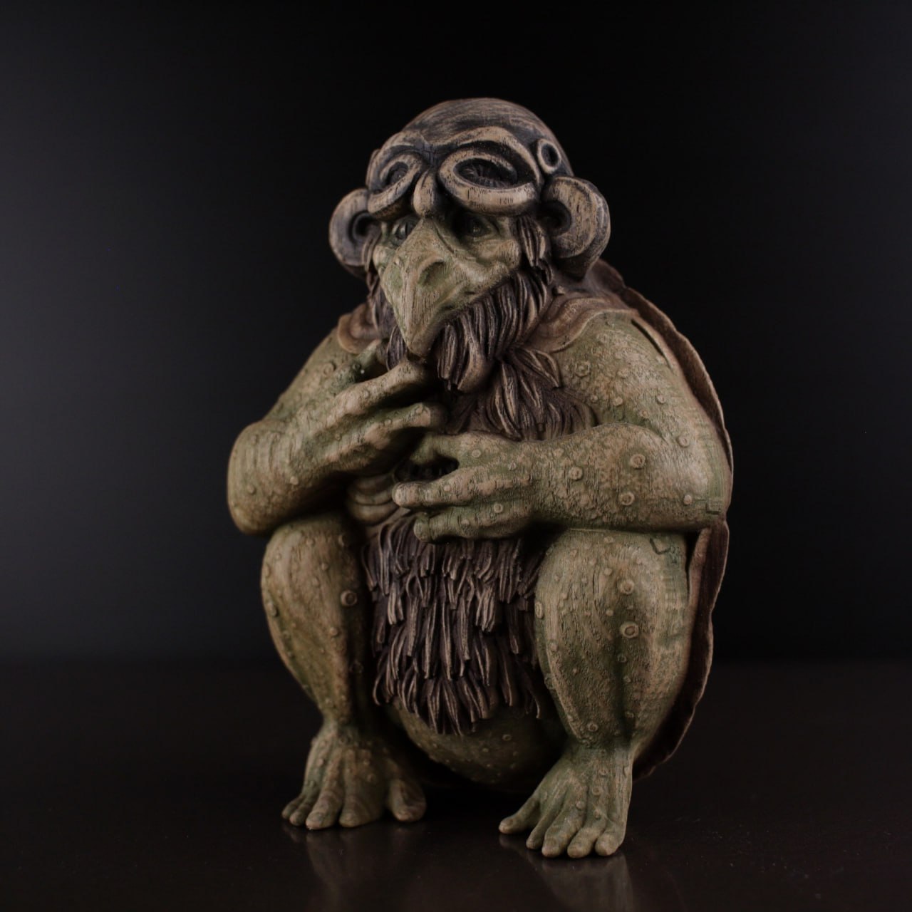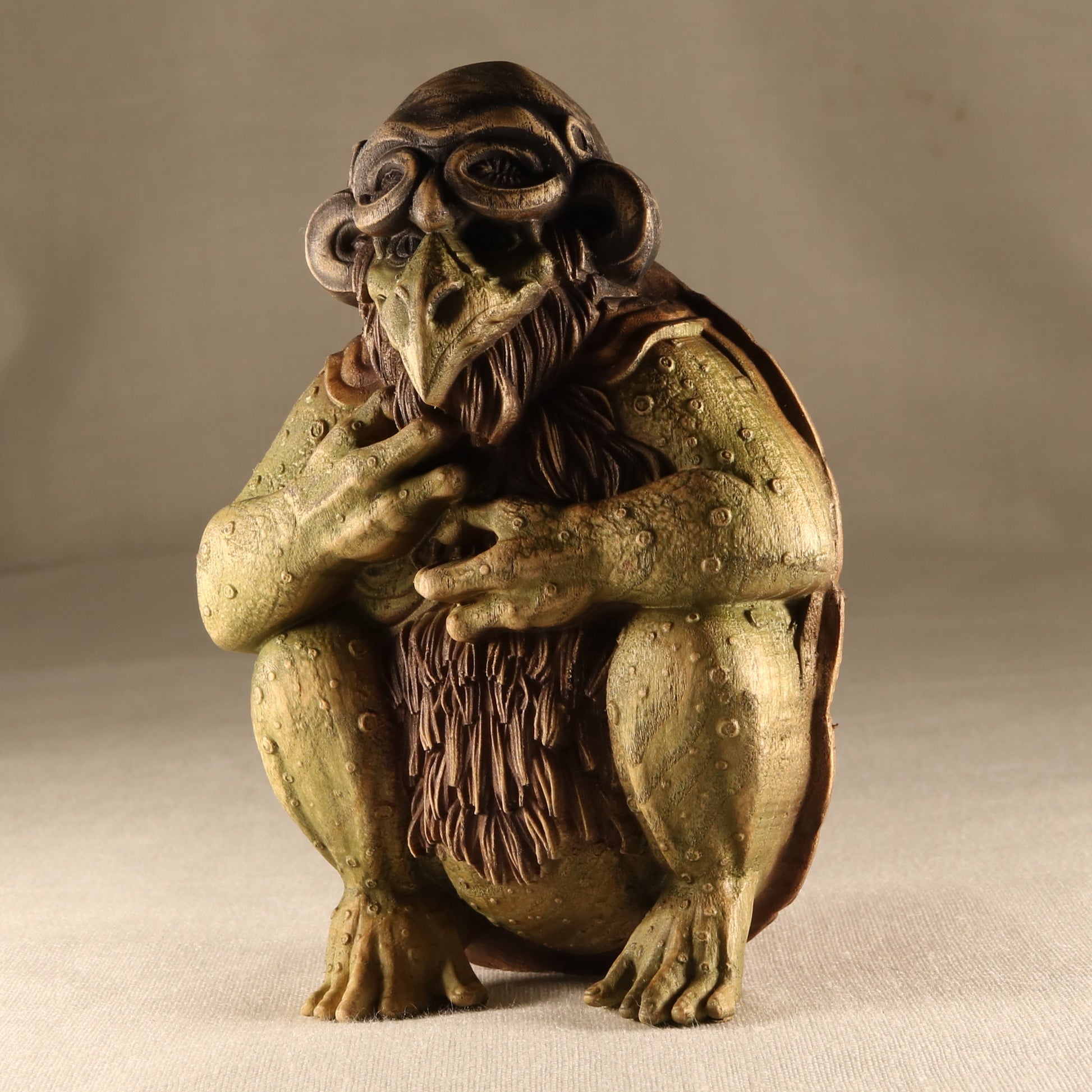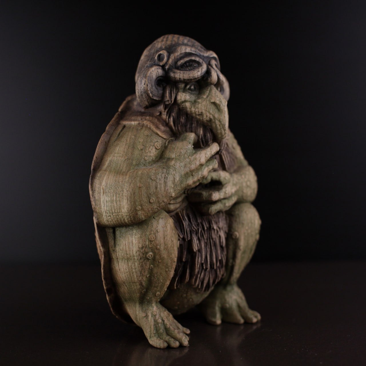 Exquisite Japanese Wooden Kappa Statue - Captivating Mythical Creature Artwork