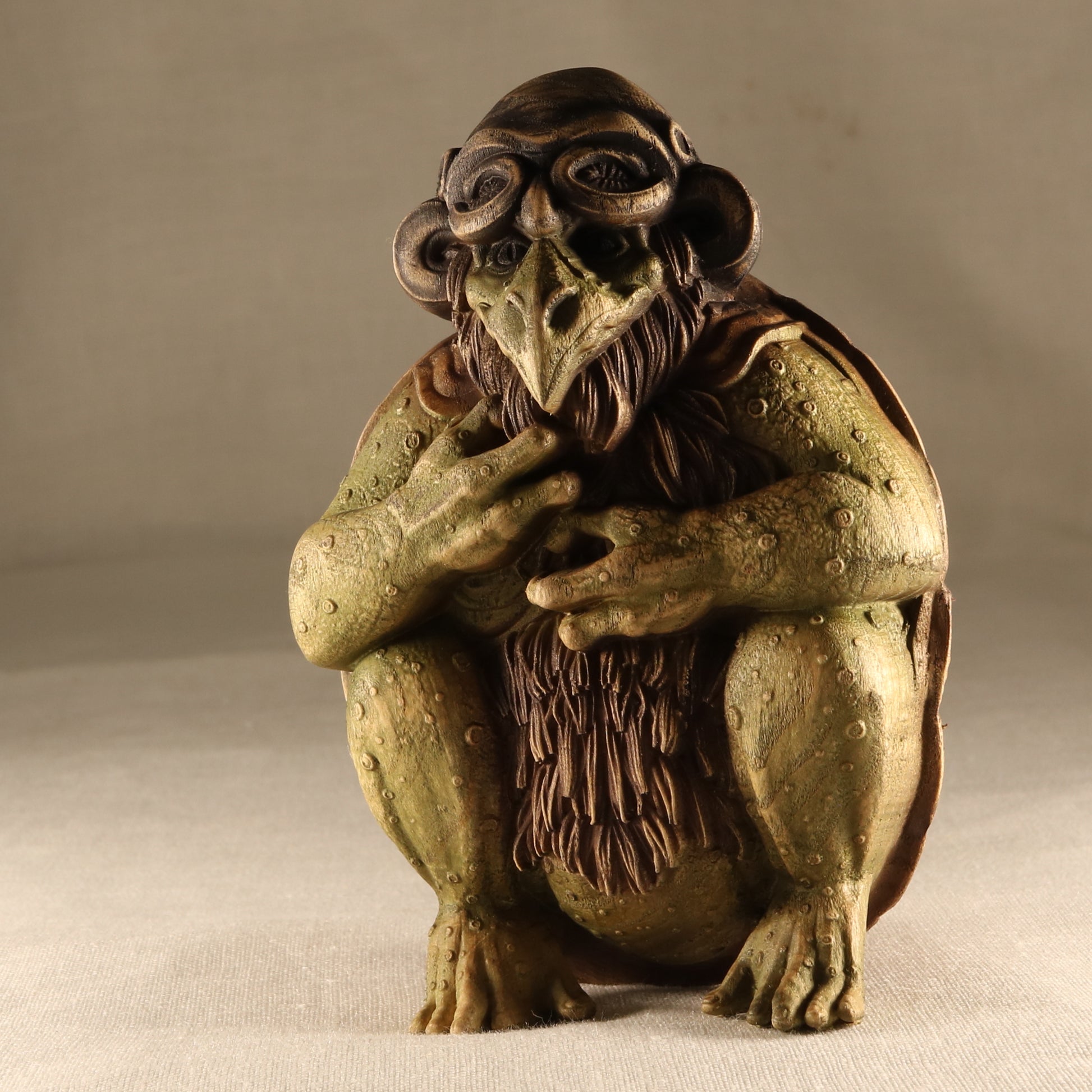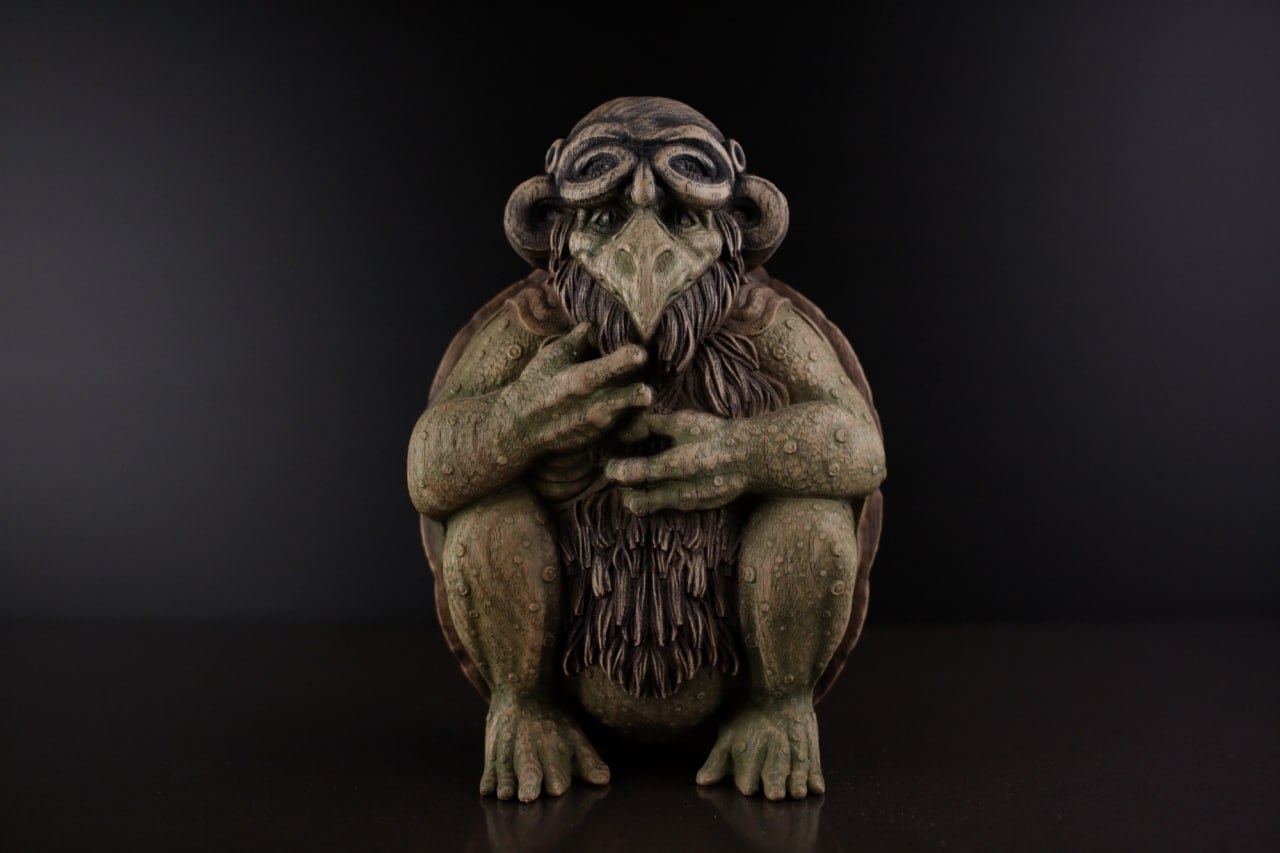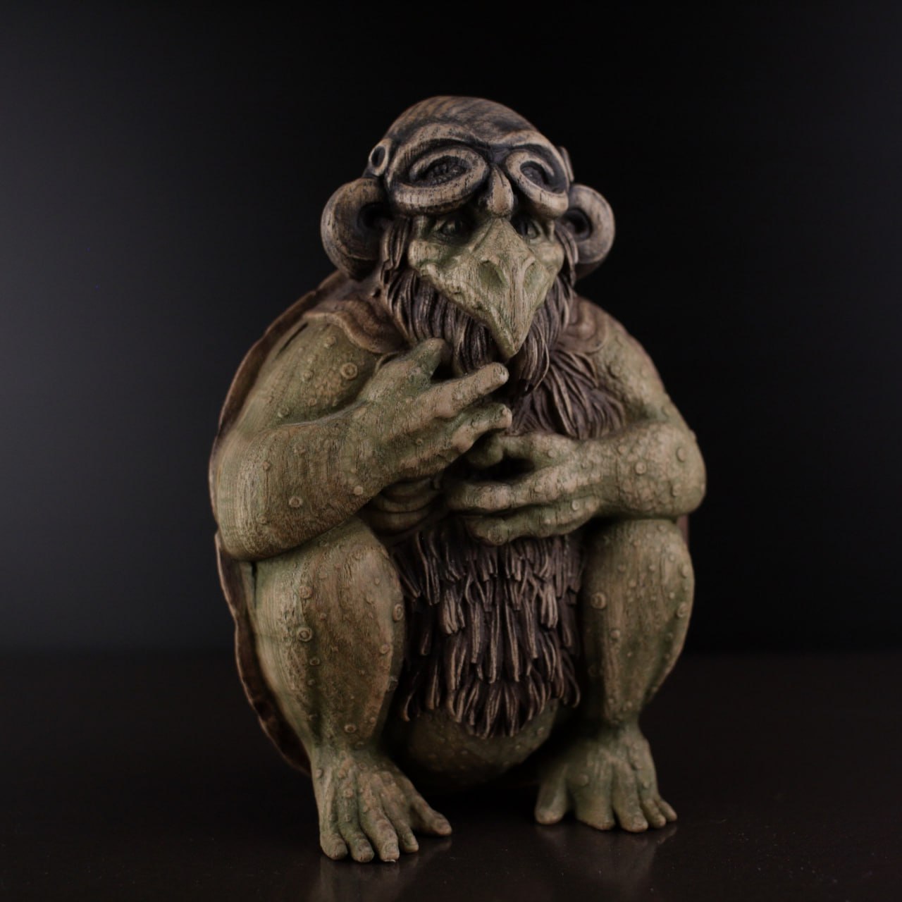 Exquisite Japanese Wooden Kappa Statue - Captivating Mythical Creature Artwork