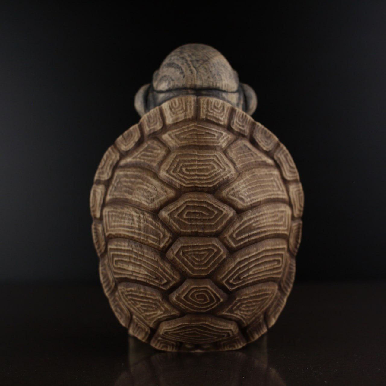 This exquisite Japanese wooden statuette depicts Kappa - a captivating creature from Japanese mythology with intriguing attributes.