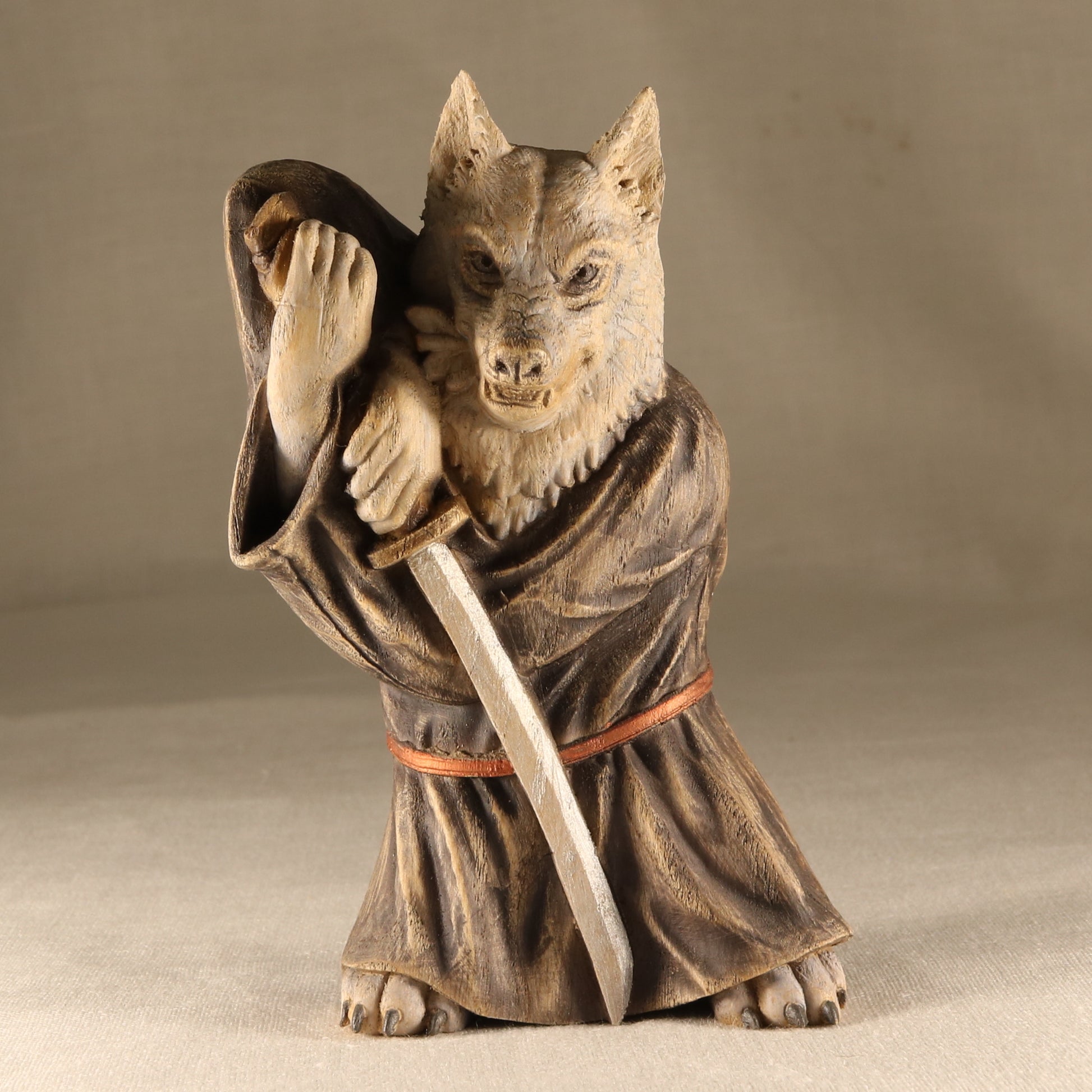 The Akita inu samurai statue embodies the spirit and traditions of Japanese warriors. Crafted from high-quality wood, it features intricate details that reflect the strength and gracefulness of the samurai. Each pose, weapon, and movement captures the distinctive martial aesthetic.