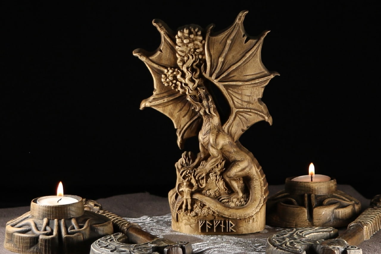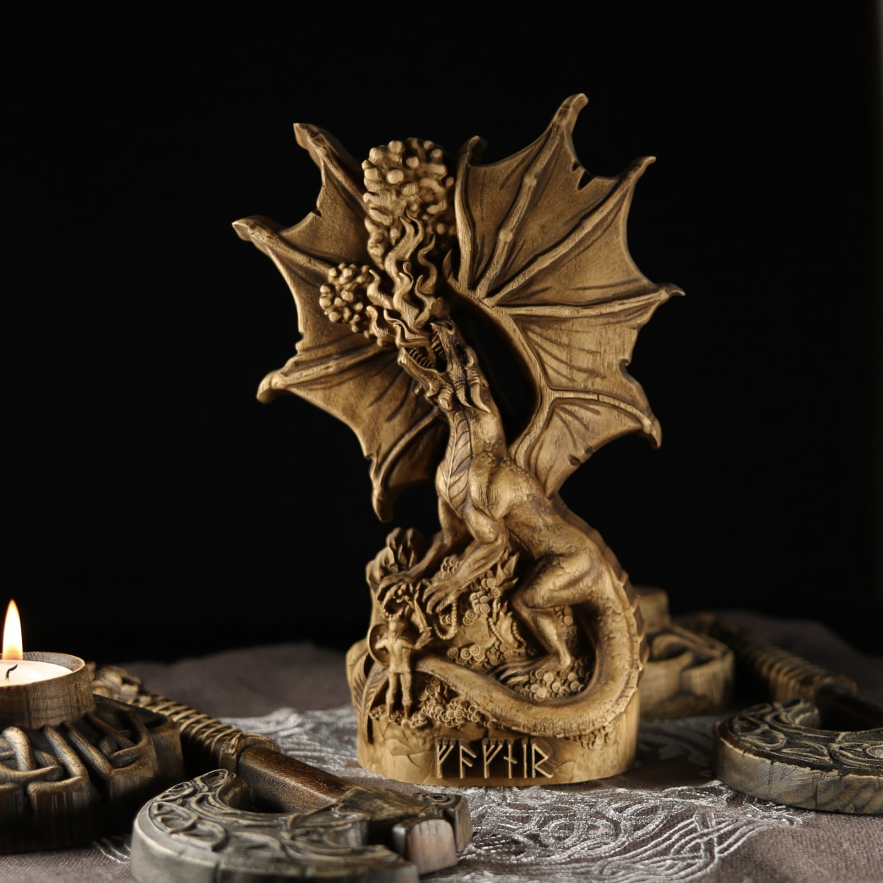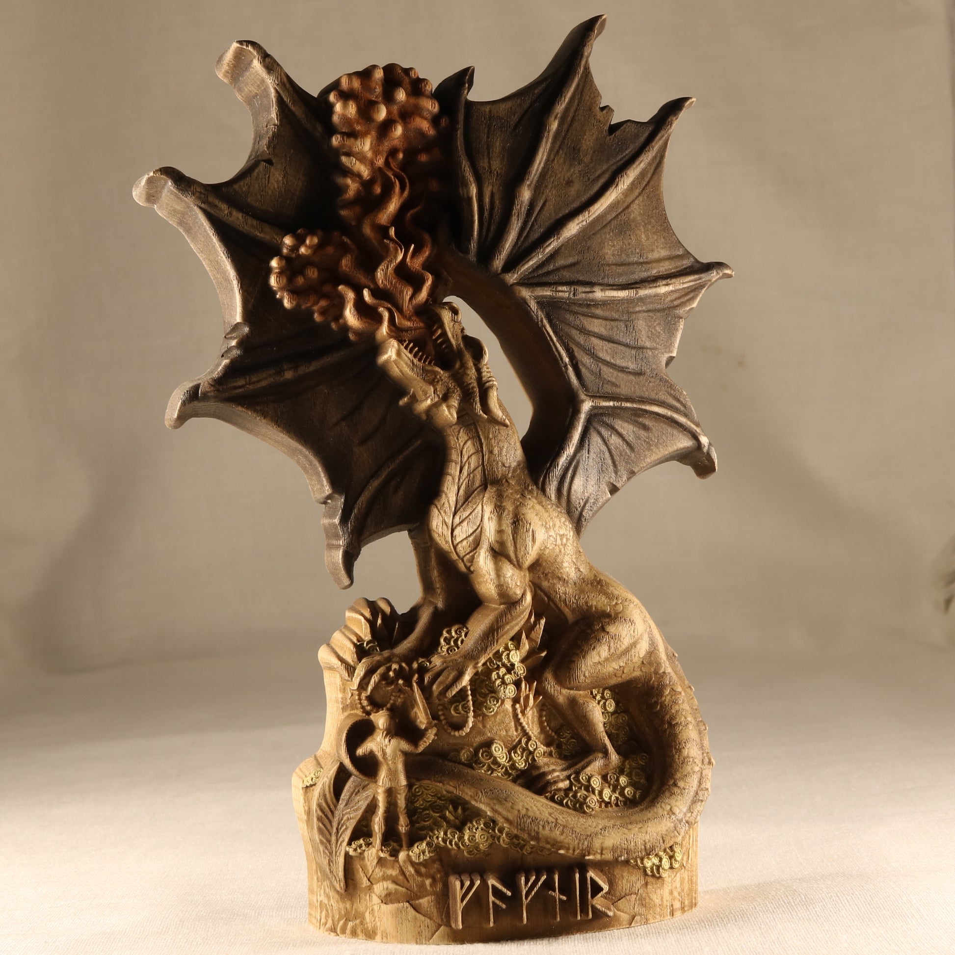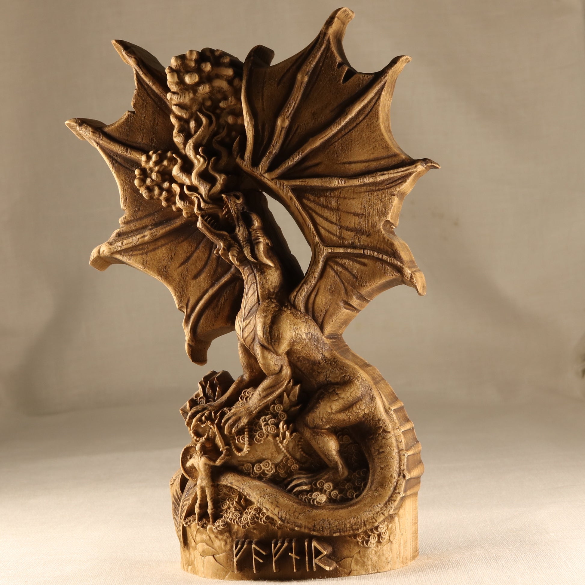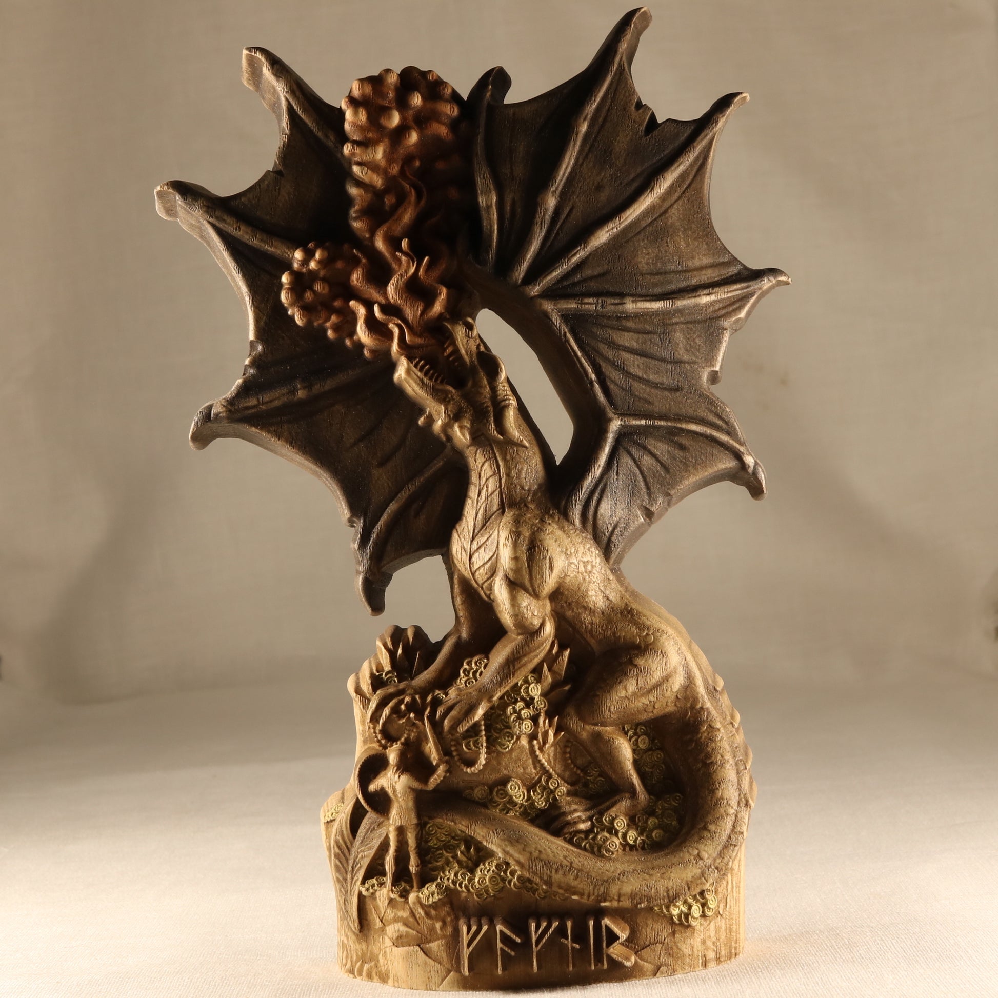 Fafnir Viking dragon, Norse pagan gods, Wooden wood carving