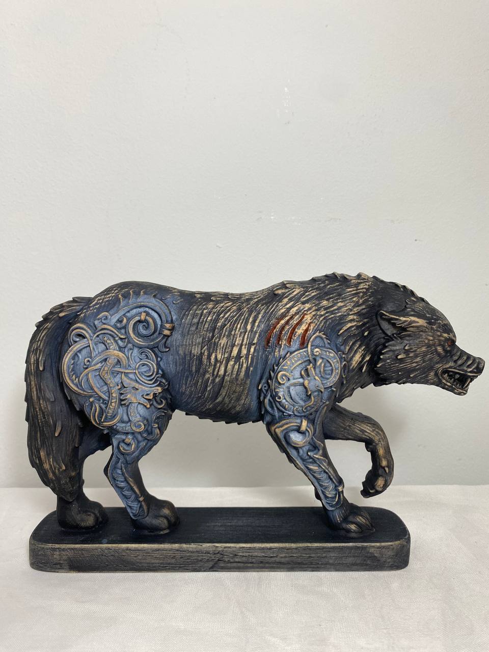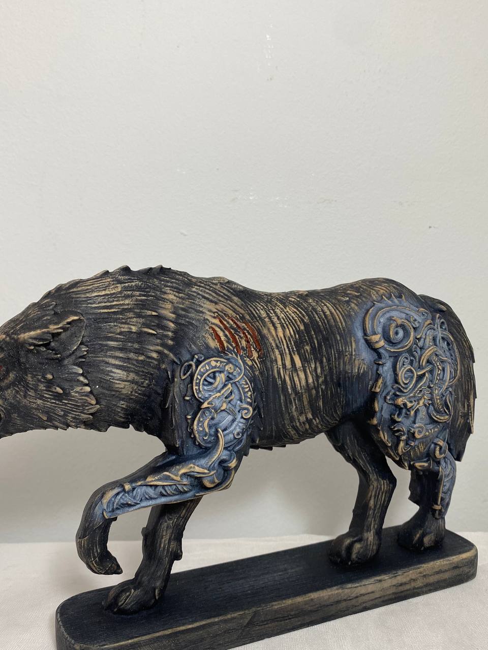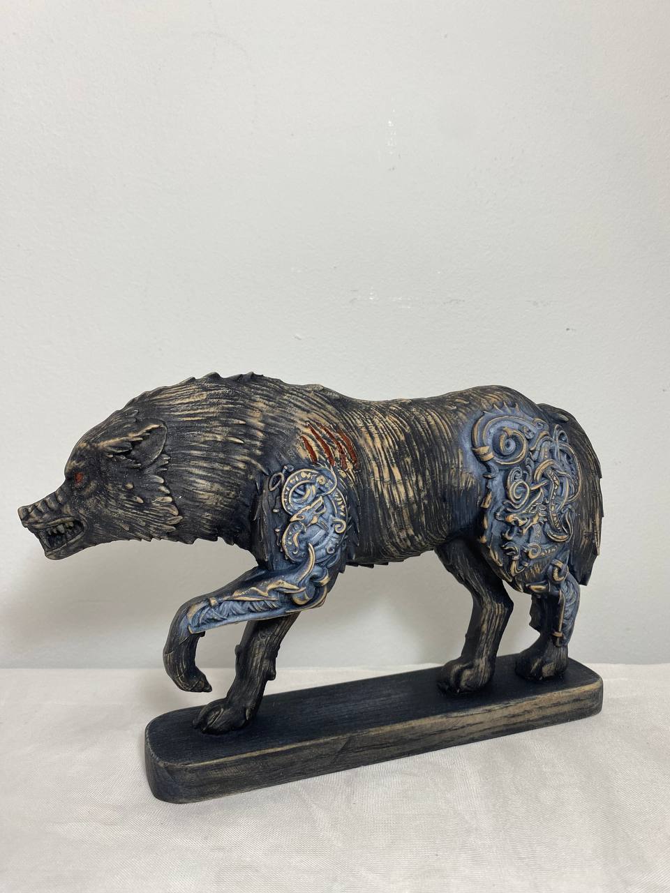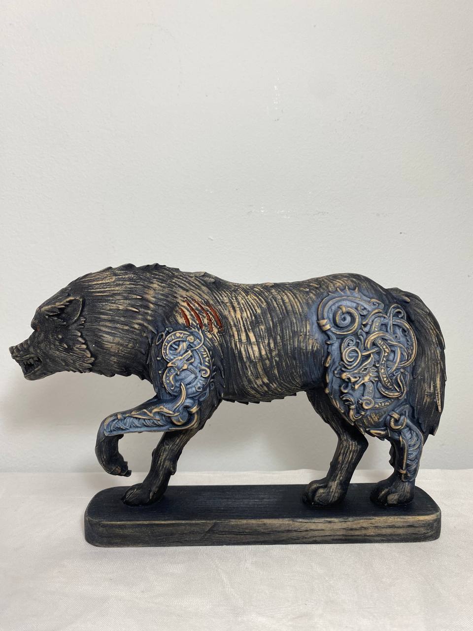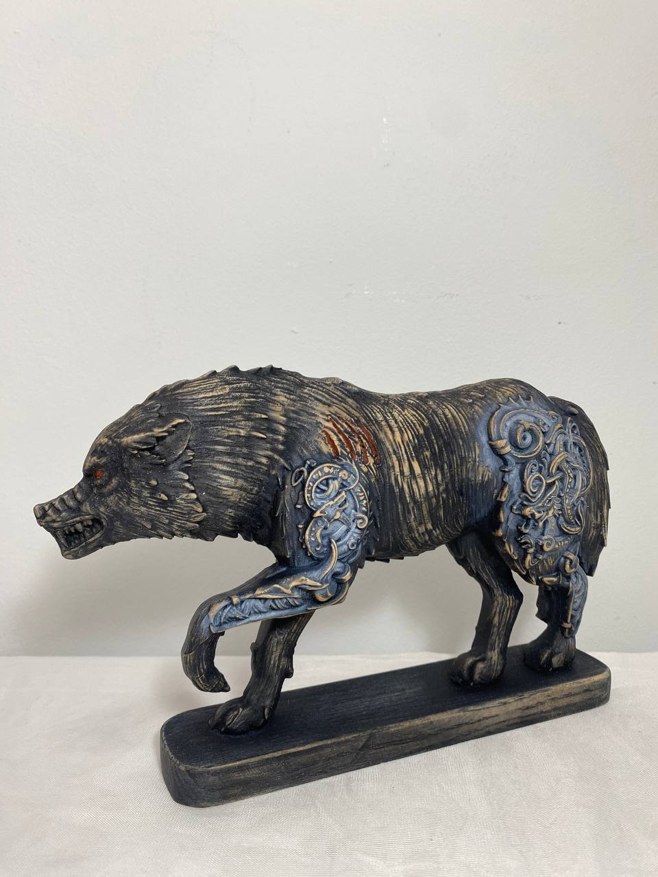 Fenrir, Wolf statue, Wolf sculpture, Norse pagan, White wolf Skoll Wood carving Wolf figurine Wolf decor Viking wolf Norse mythology Odin