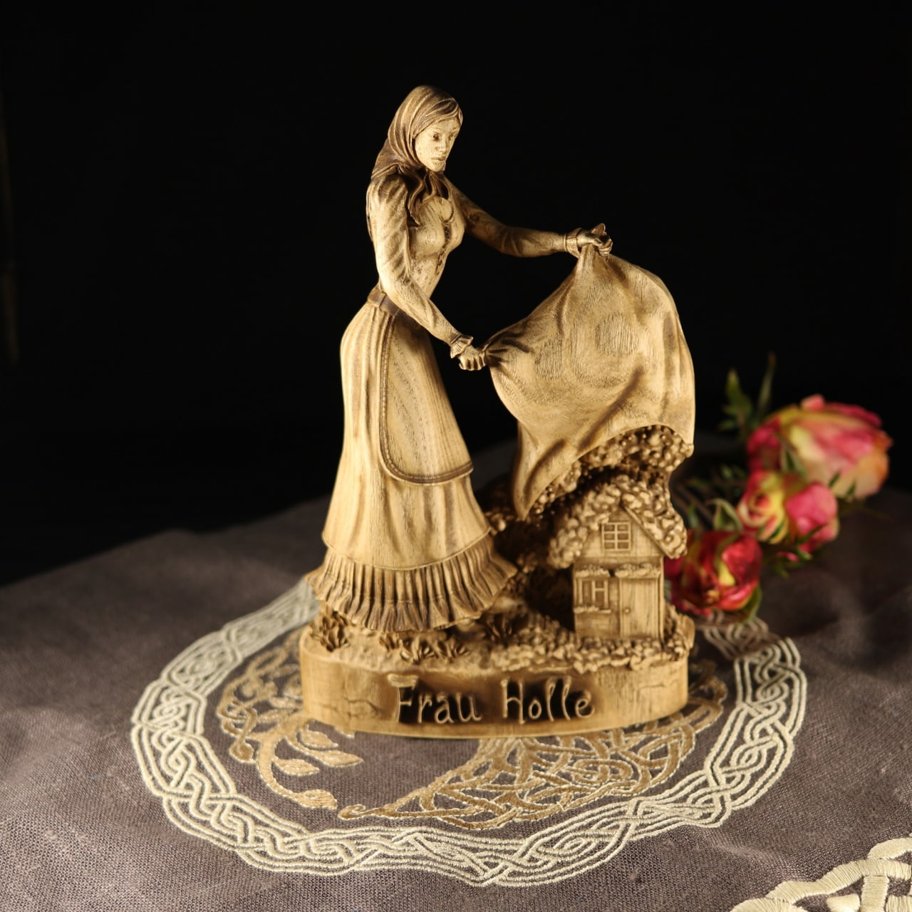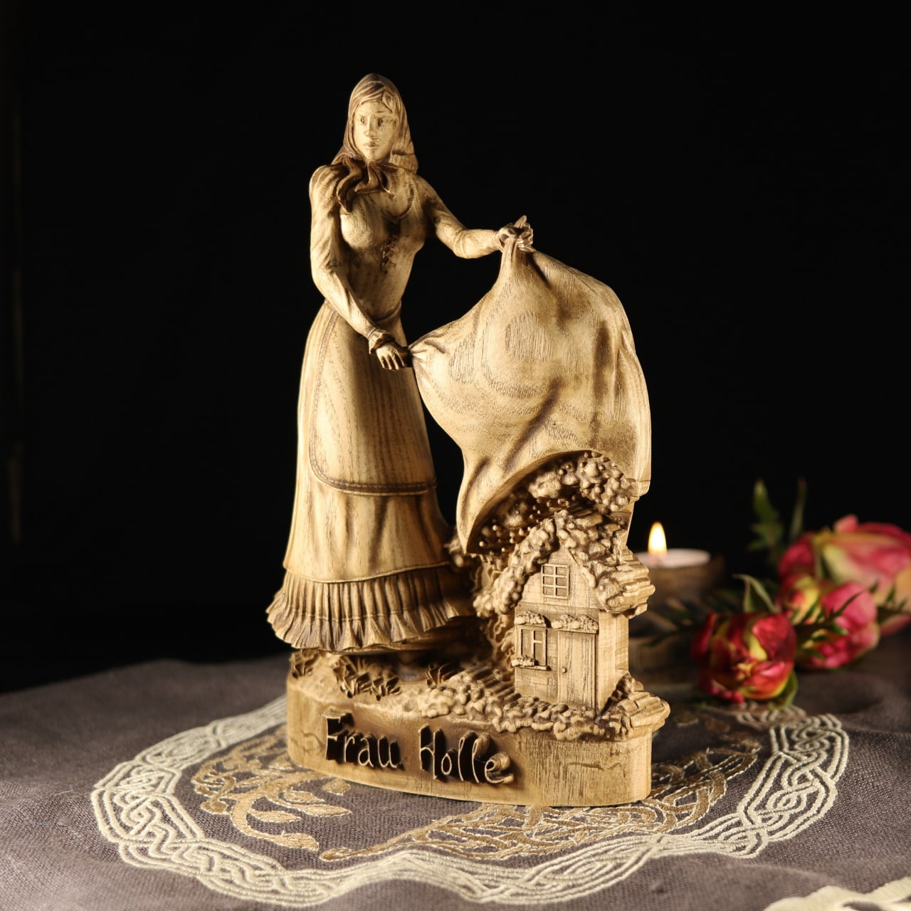 Frau Holle, Mother Holle Wooden Statue for Asatru Altar
