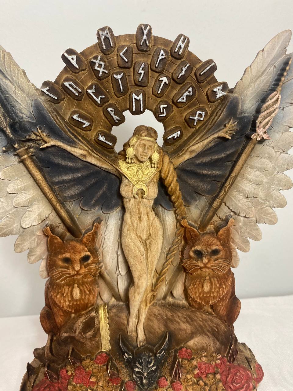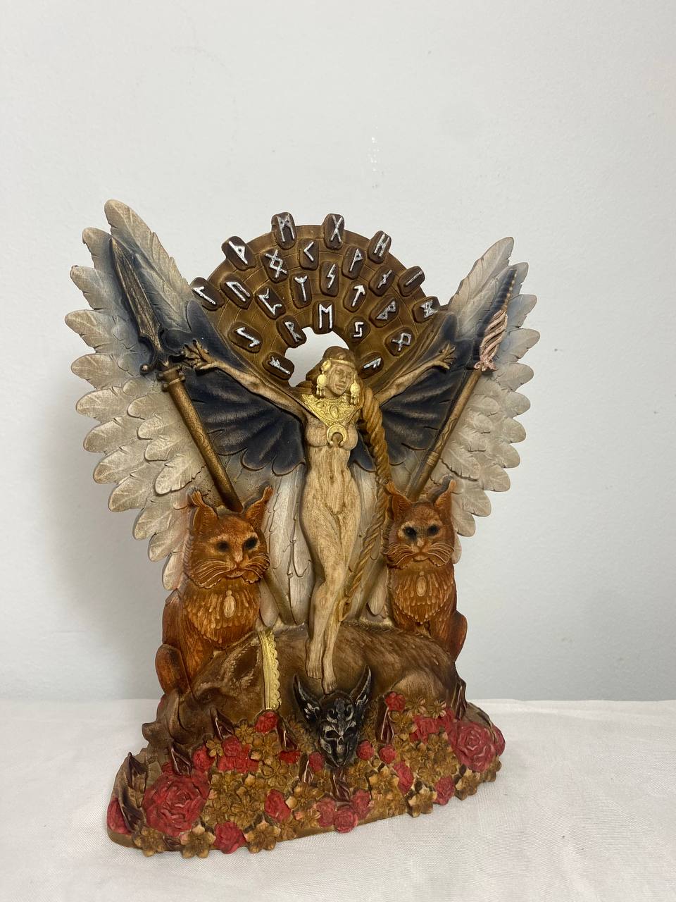 A statue freya can be the centerpiece of an altar used in rituals dedicated to love, fertility and magic. It can also serve as a talisman to bless the home and family.As part of home or Viking decor, the statue adds an atmosphere of the mythical and spiritual. It can stand in the living room, office or bedroom, bringing aesthetic pleasure and a sense of connection to ancient traditions.It is a great gift for those interested in Norse mythology, history or magic. The statue symbolizes strength, beauty and fertility, which makes it a meaningful and symbolic gift.The wooden carved statue of Freya reminds us of the importance of love, beauty, fertility and magic in life. She is a symbol of feminine strength and wisdom, as well as a connection with nature and spiritual worlds.