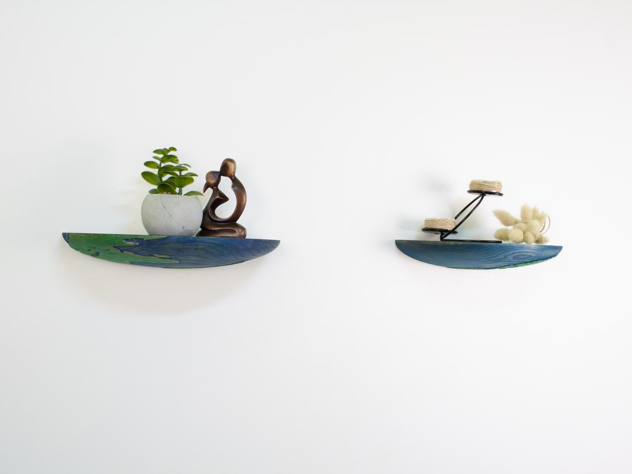 Explore our collection of wooden floating wood shelves shaped like Earths hemispheres! These unique and elegant additions will add a special charm and depth to your interior.