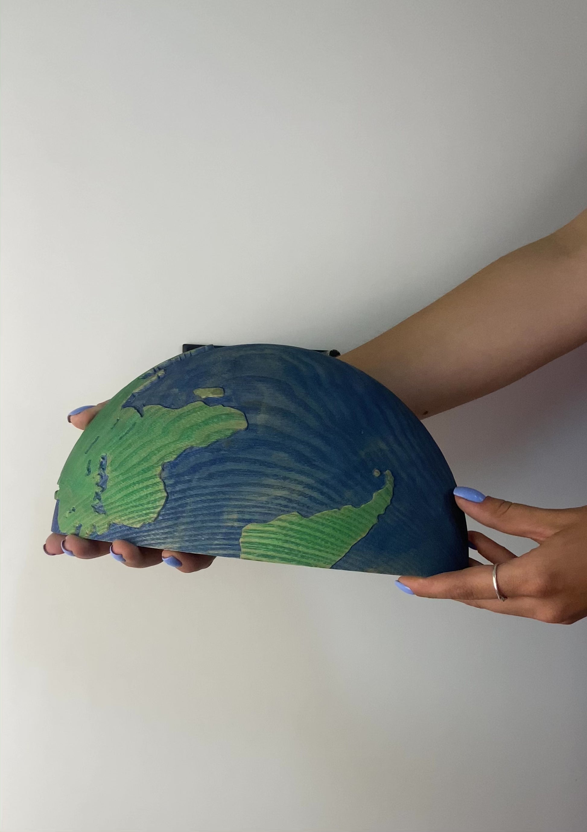 Each wooden shelf we create is a small workshop of art. They are carefully crafted from natural wood with attention to detail. Your eyes will delight in the relief depiction of continents, oceans, and seas, which adds a distinct geographical allure to our shelves.