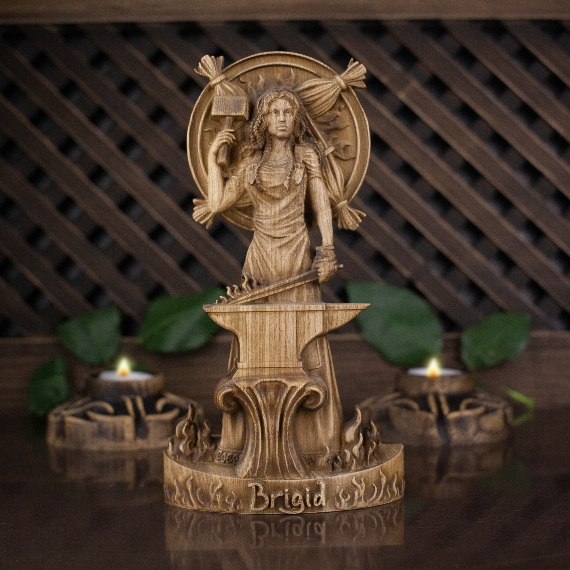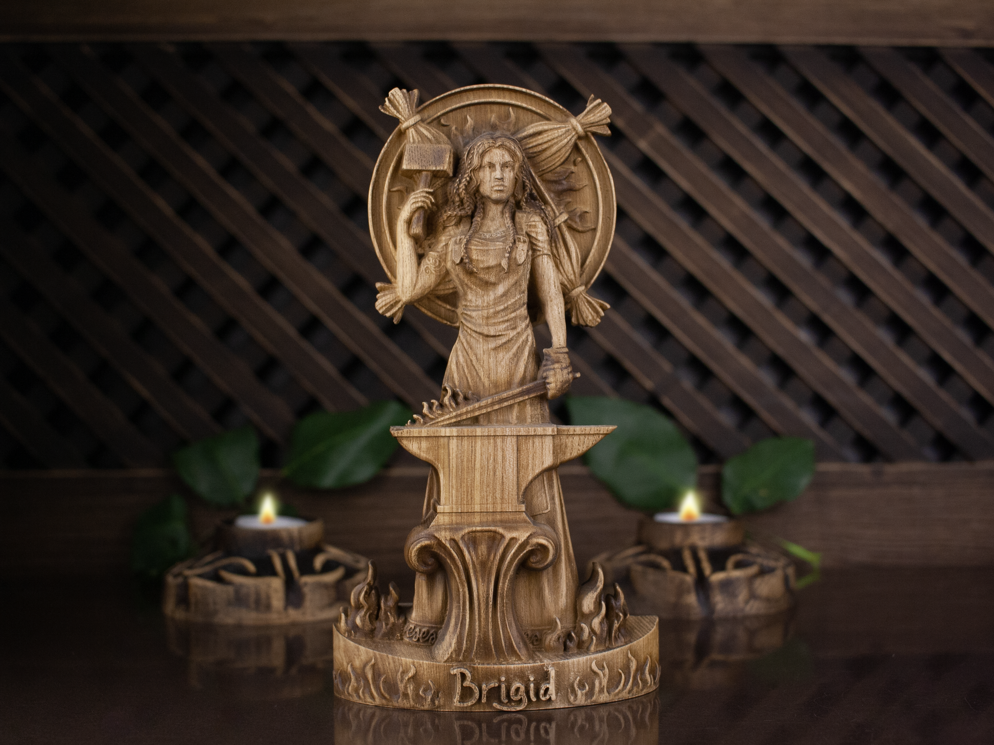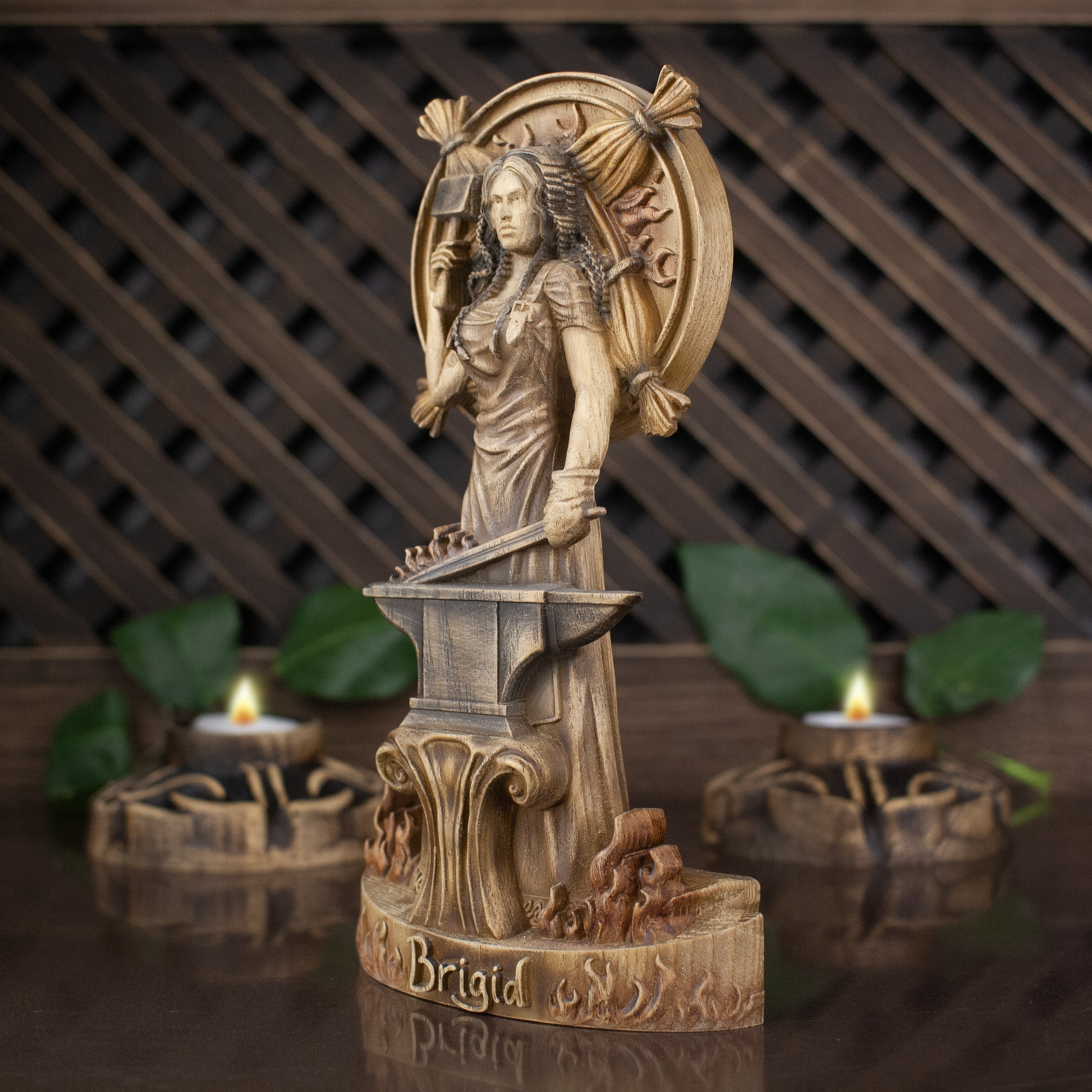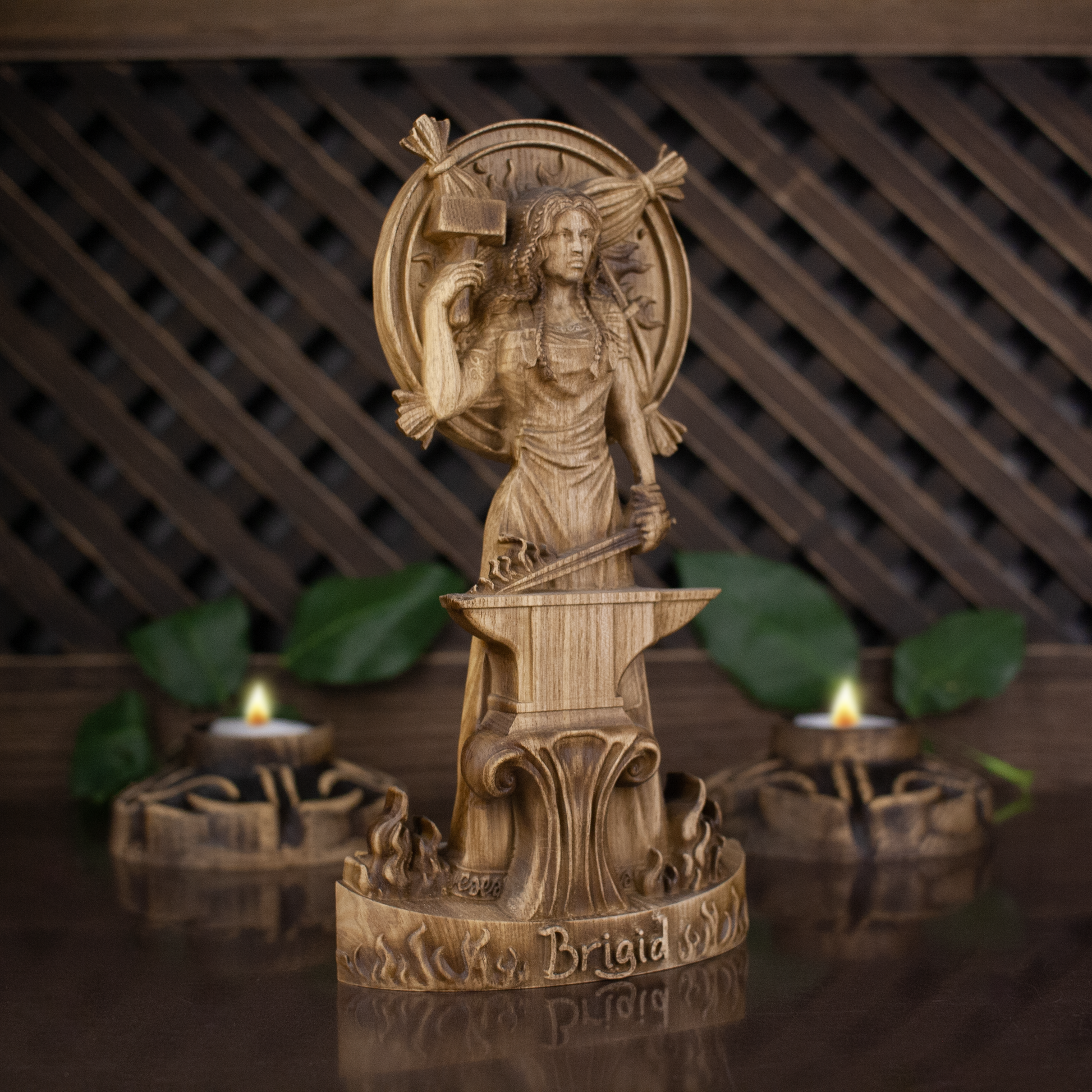 Add this elegant representation of the celtic goddess Brigid as a warrior-blacksmith to your space to immerse yourself in the atmosphere of Celtic magic and symbolism. It's a wonderful gift for art, mythology, and spirituality enthusiasts.