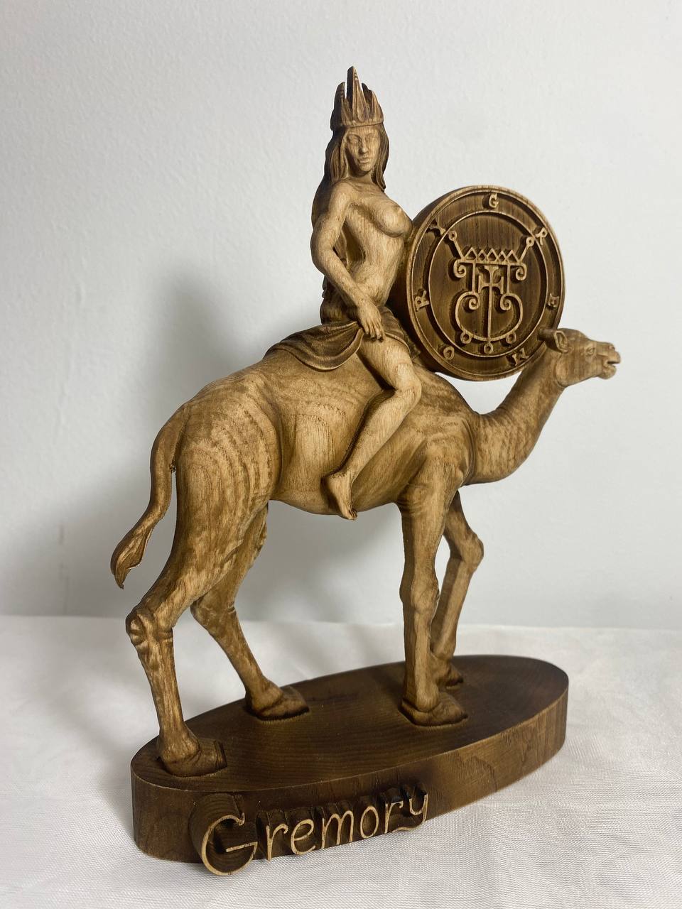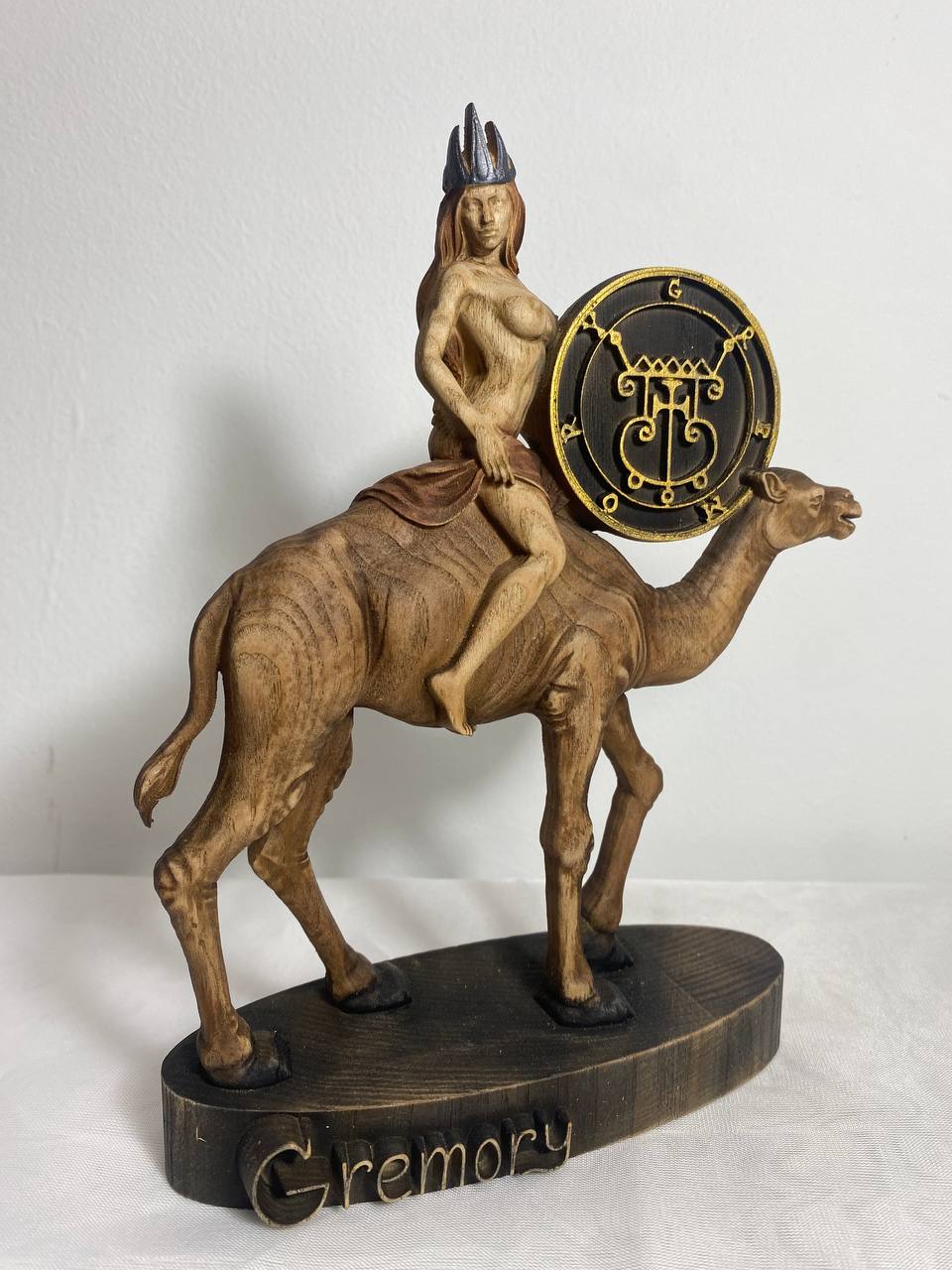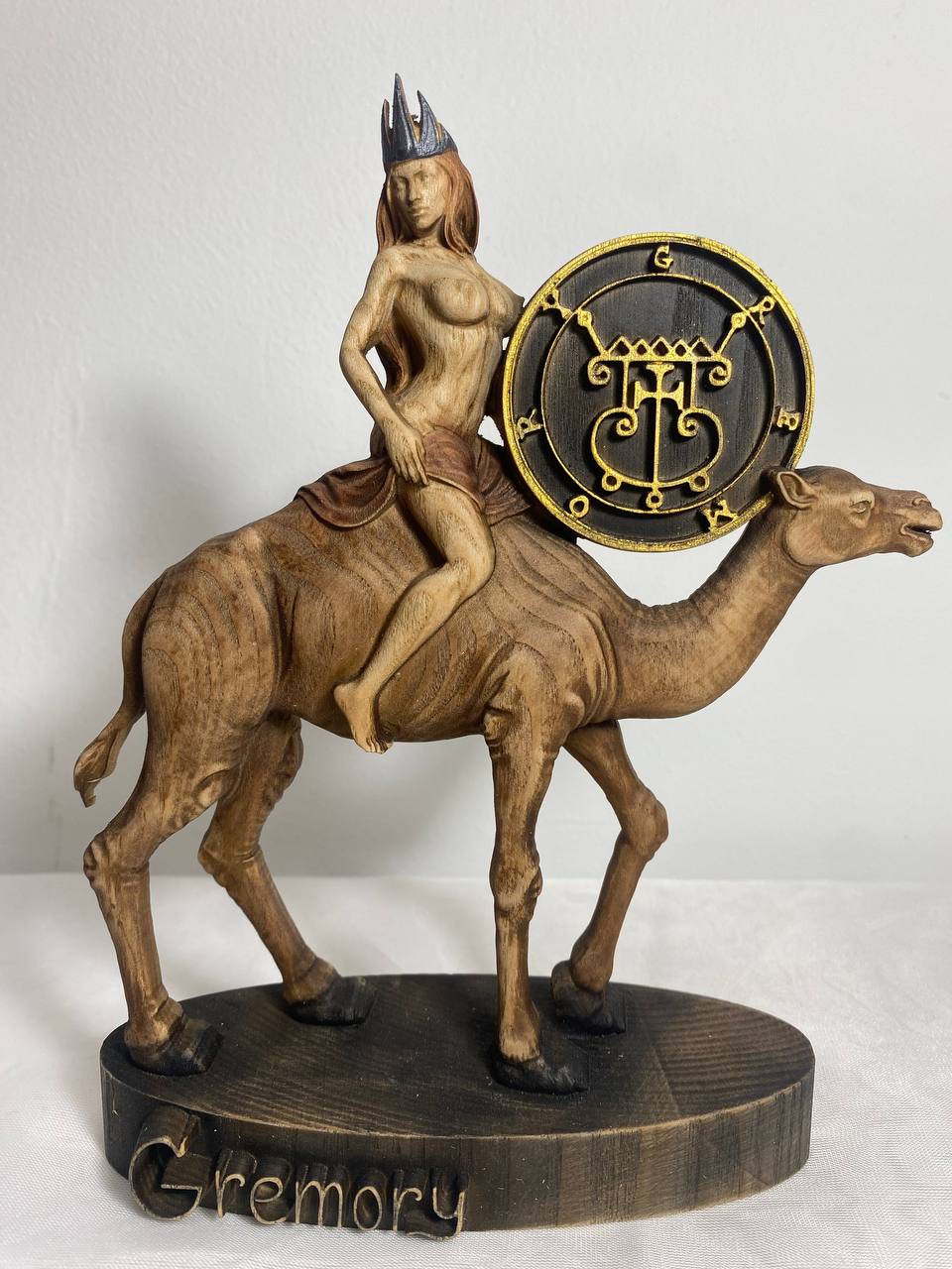 This exquisite handcrafted figurine depicts Gremory, one of the most renowned dukes of hell according to traditional demonology. The Gremory statue is portrayed as a beautiful woman sitting atop a majestic camel, wearing a ducal crown on her head.