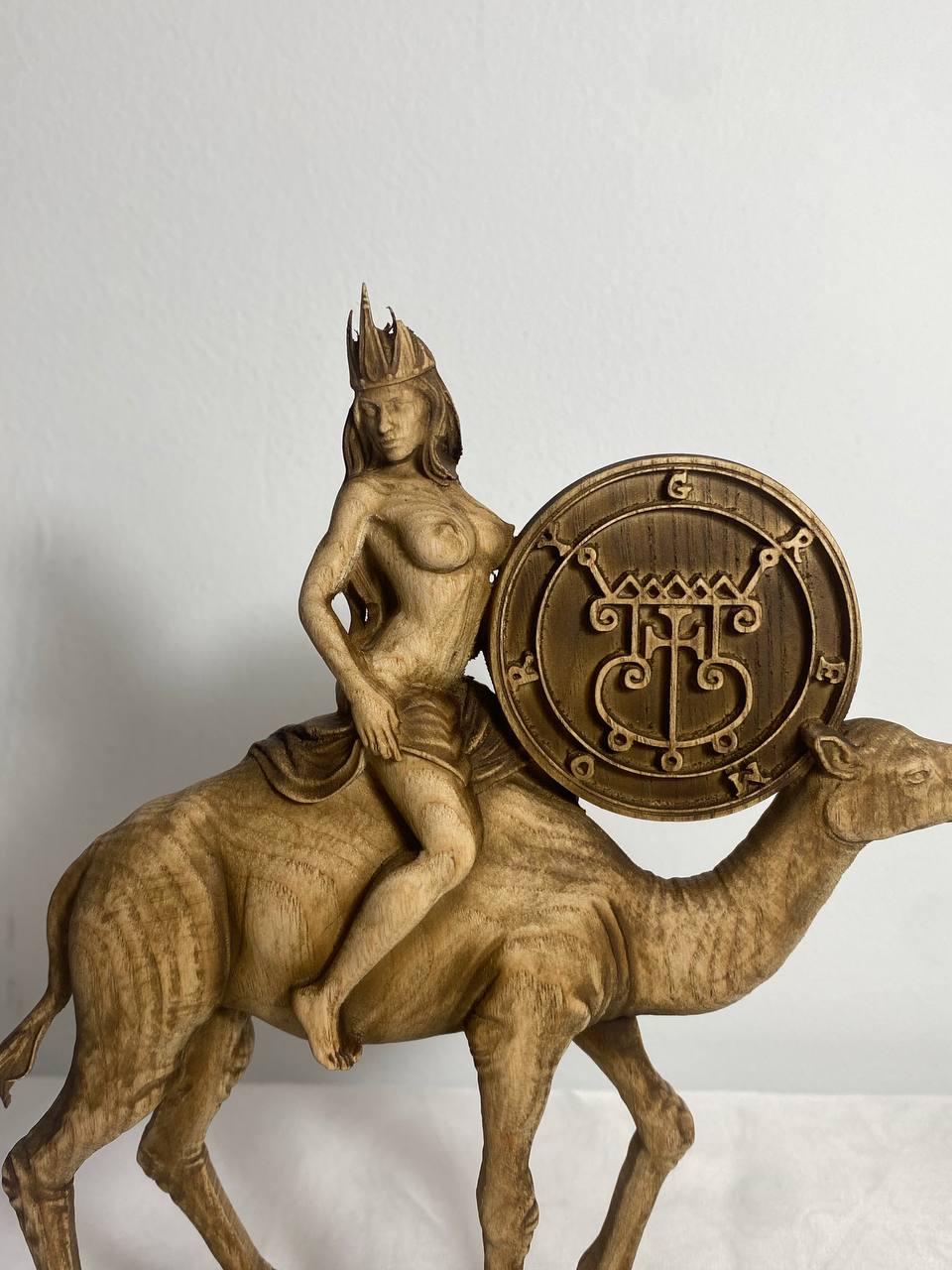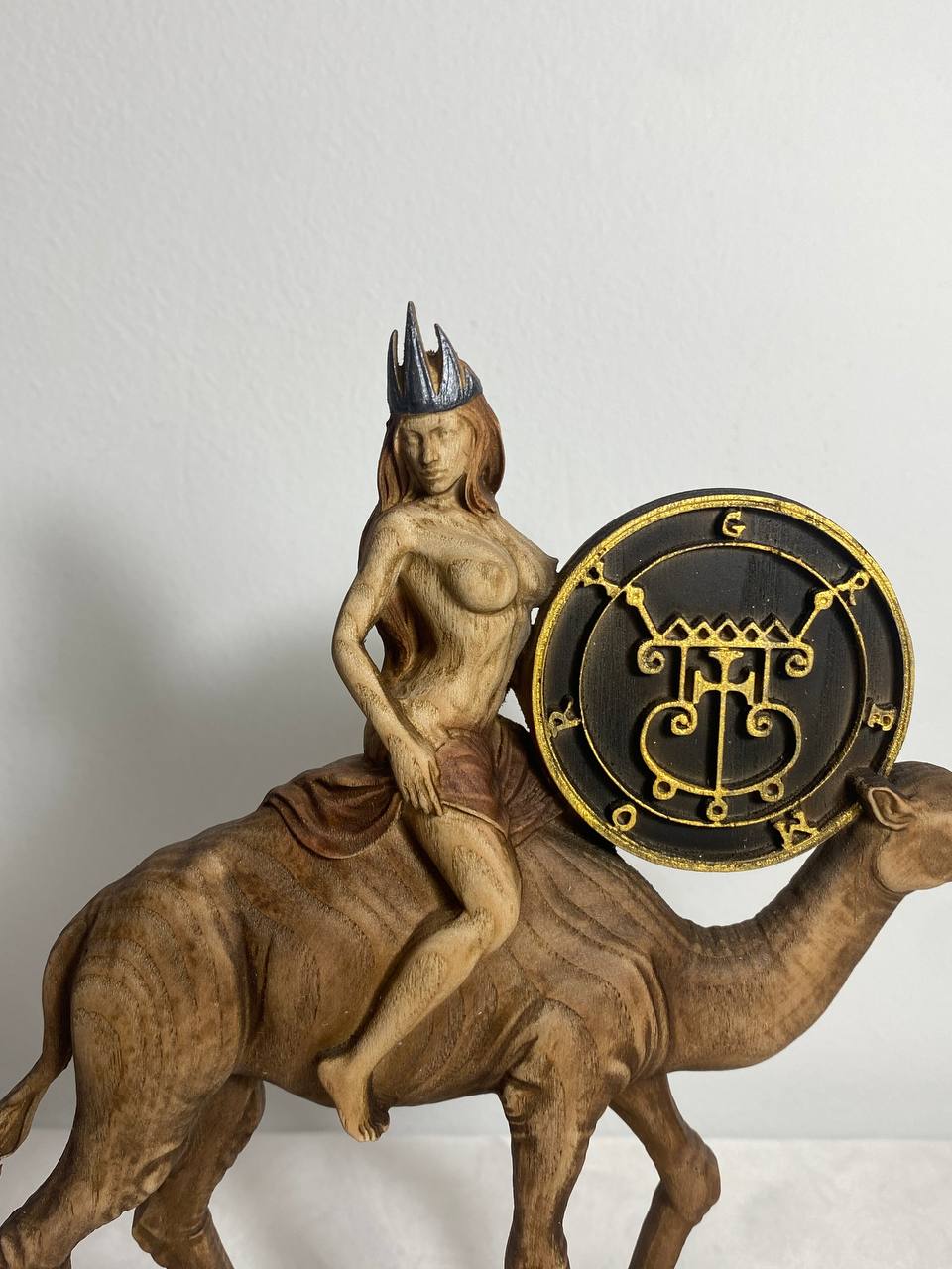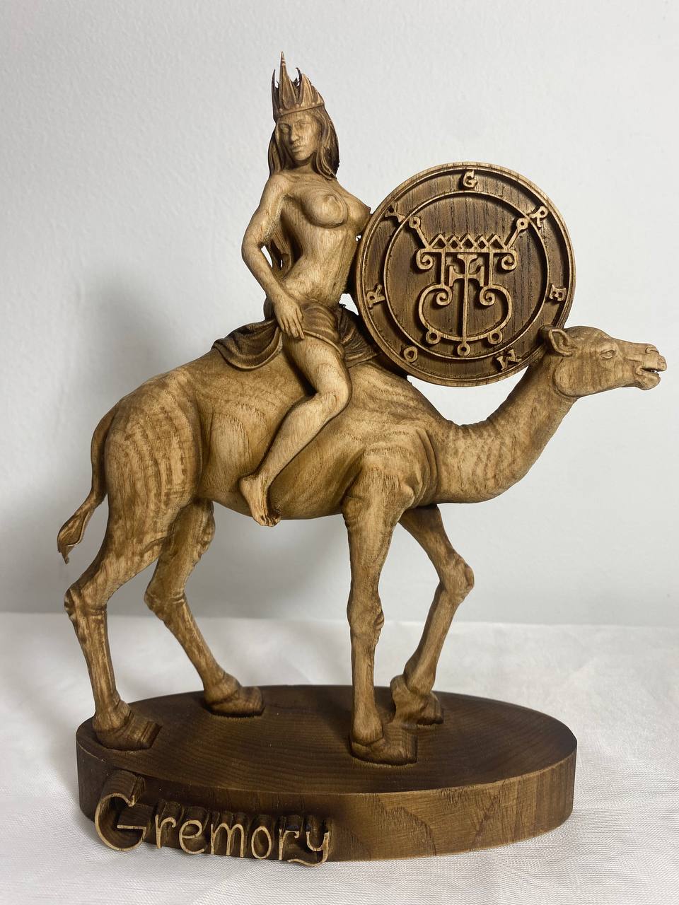 This exquisite handcrafted figurine depicts Gremory, one of the most renowned dukes of hell according to traditional demonology. The Gremory statue is portrayed as a beautiful woman sitting atop a majestic camel, wearing a ducal crown on her head.