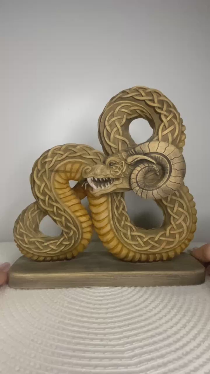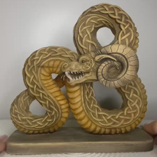 This wooden statue of a snake with ram horns is a faithful companion to your God Cernunnos. It represents a unique combination of symbols from nature and mythology, where the snake, associated with transformation and the cycles of life, merges with ram horns symbolizing strength and power.