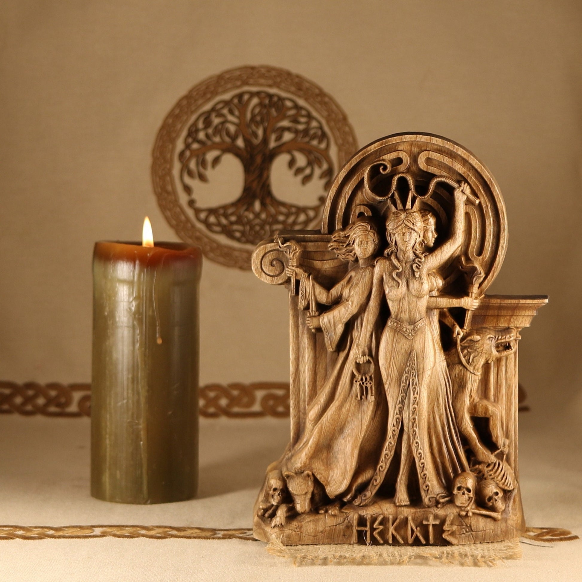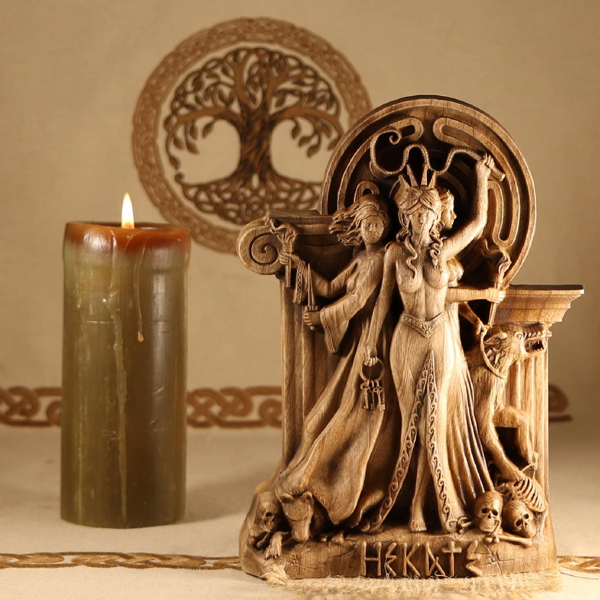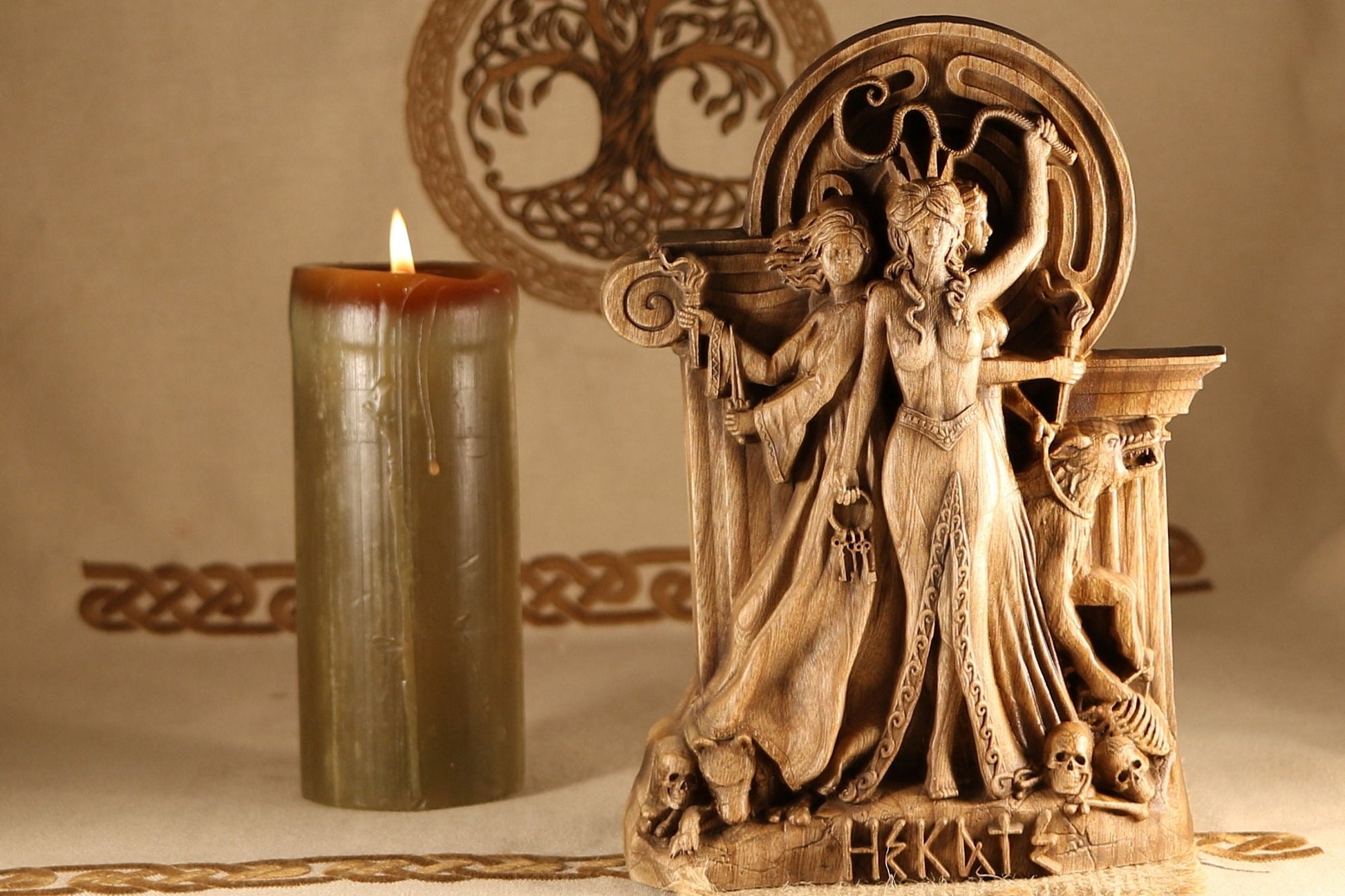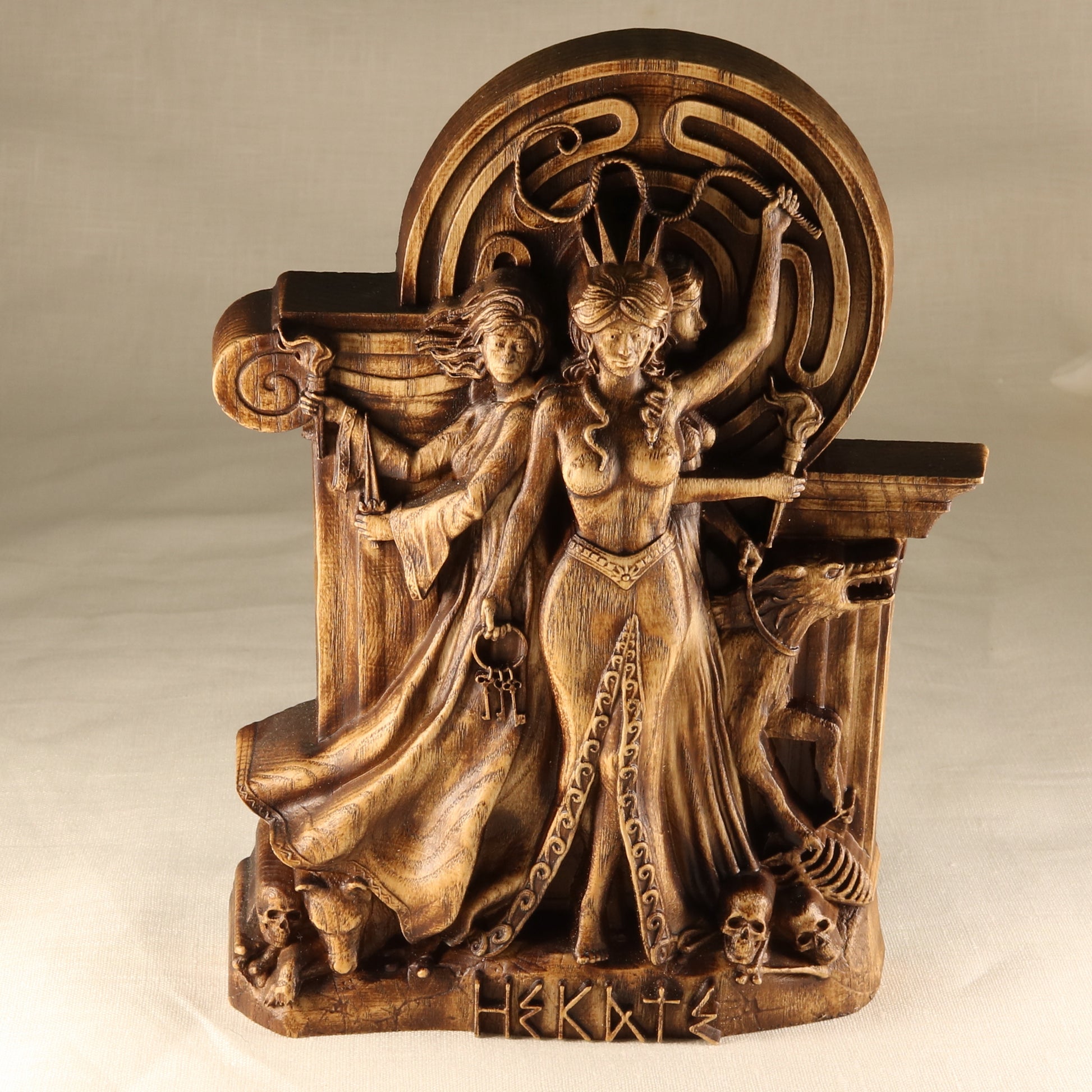 Introducing the Hecate statue! This amazing piece is perfect for anyone who loves Greek mythology, or for those who appreciate the dark and mysterious decor.