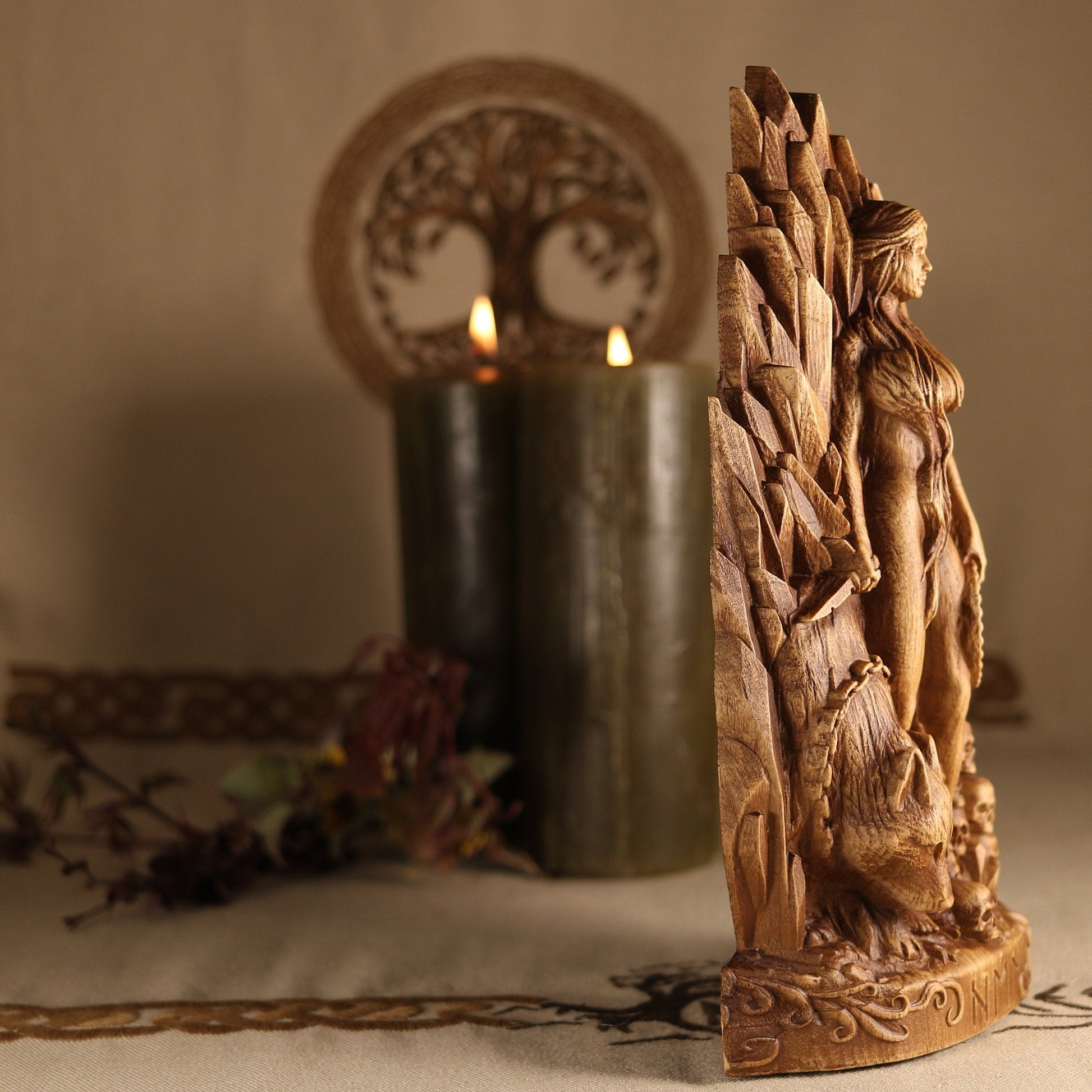 But even Death has a sense of style. This handmade wooden statue carving of Hel is made from ecological materials and finished with a varnish coating. She is a striking addition to any décor, whether gothic or modern. And with her haunting beauty, she's sure to be a conversation starter.