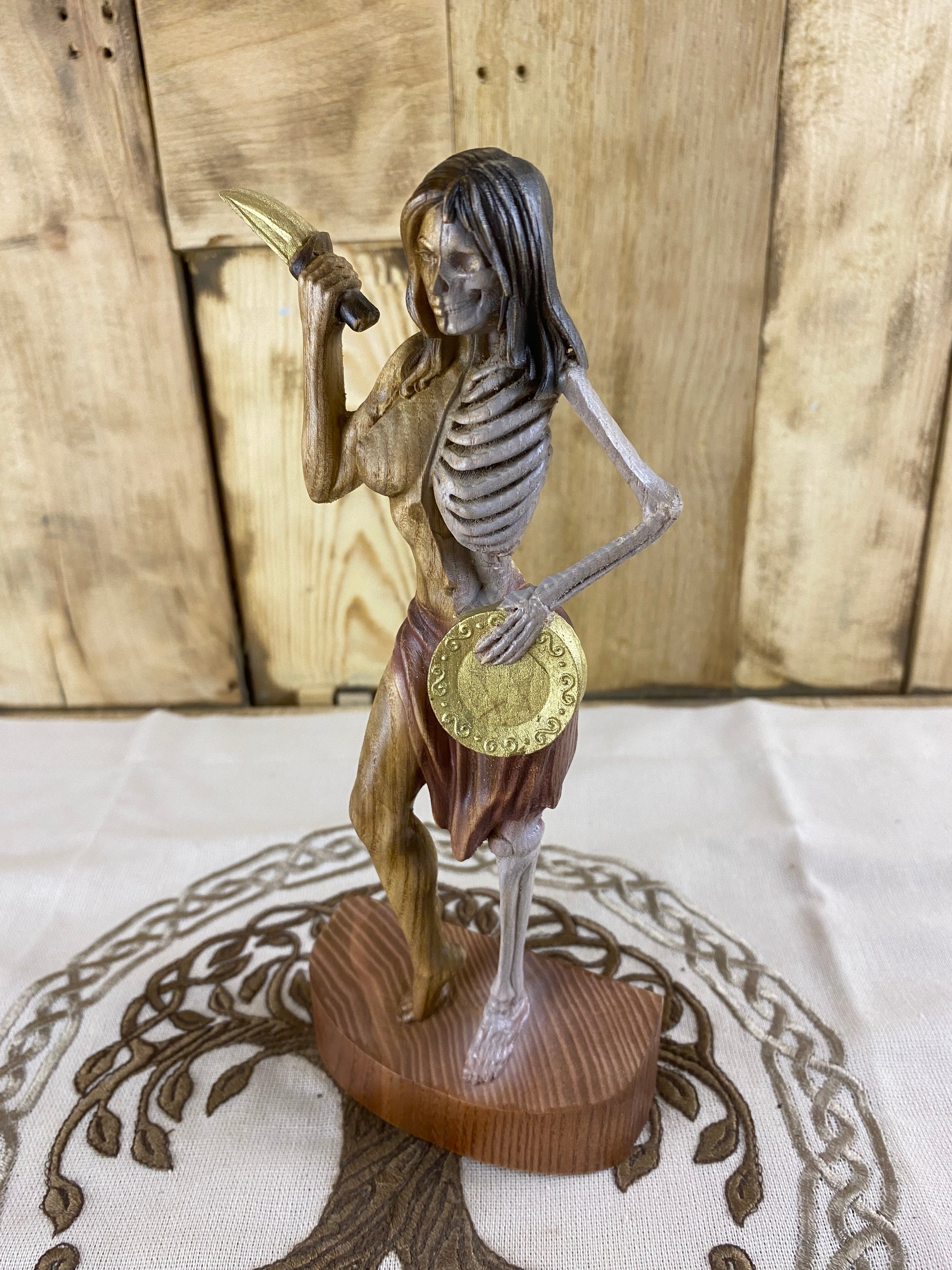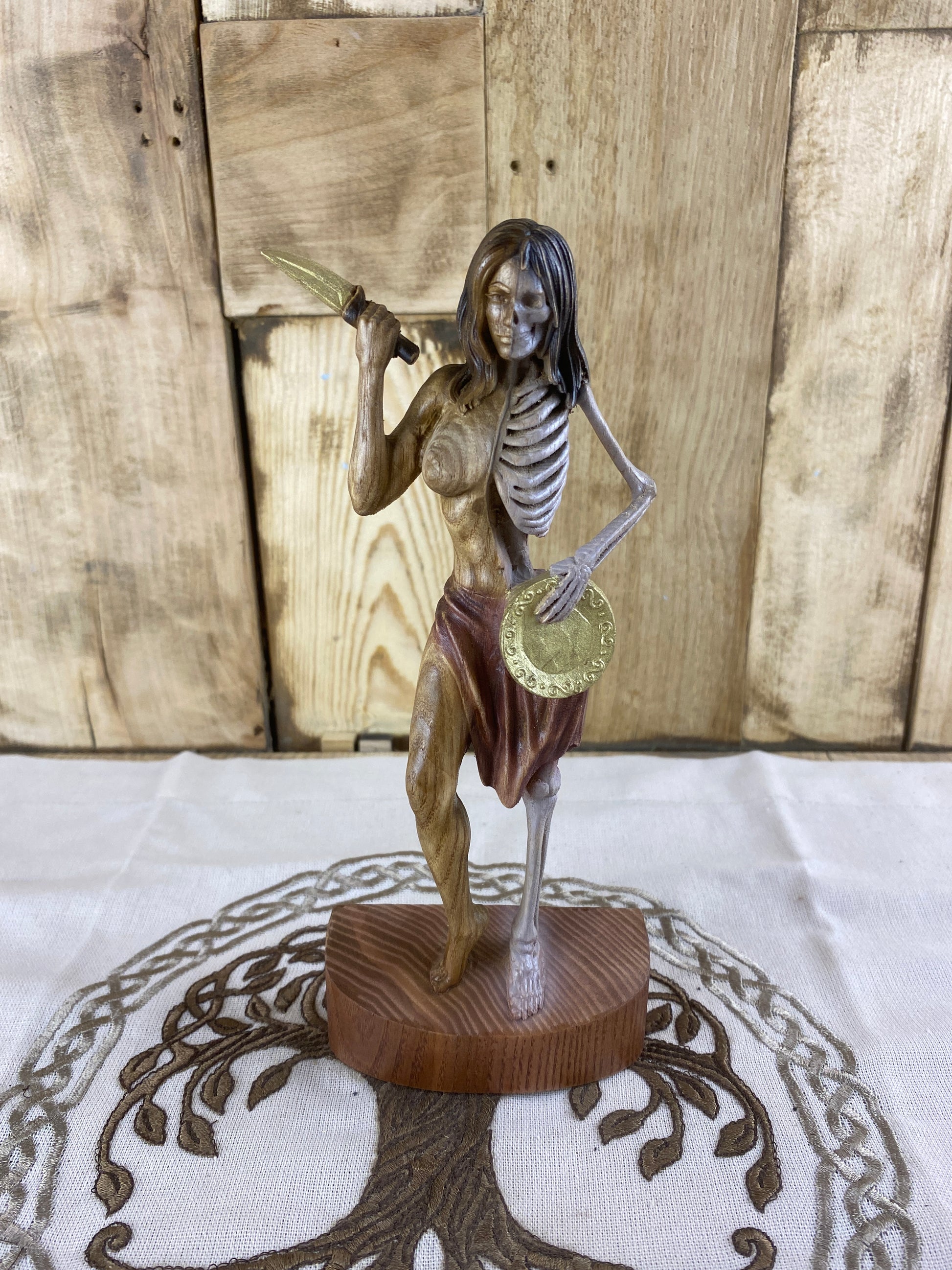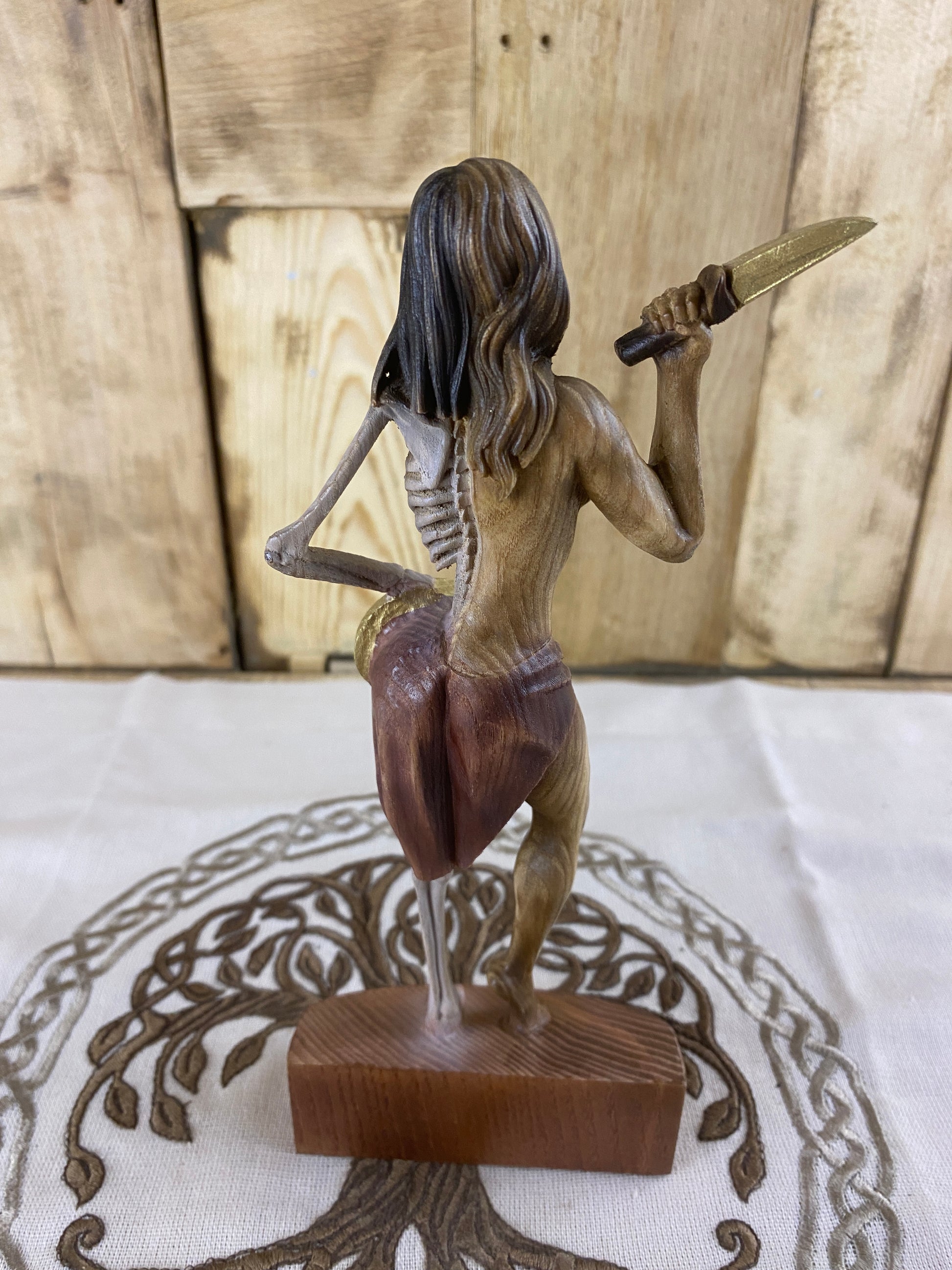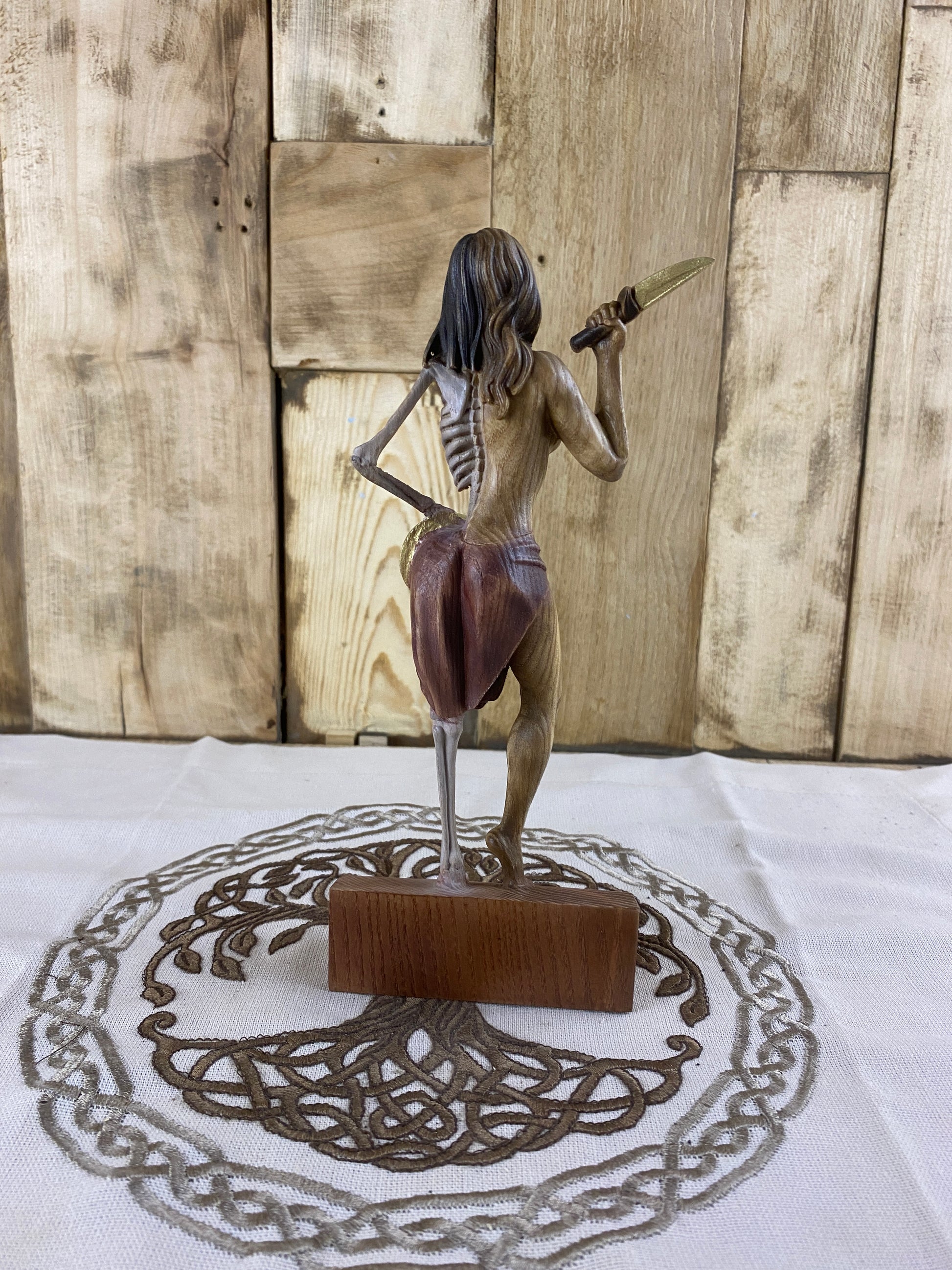Wooden Carved Statue of Hel – Norse Goddess of the Underworld