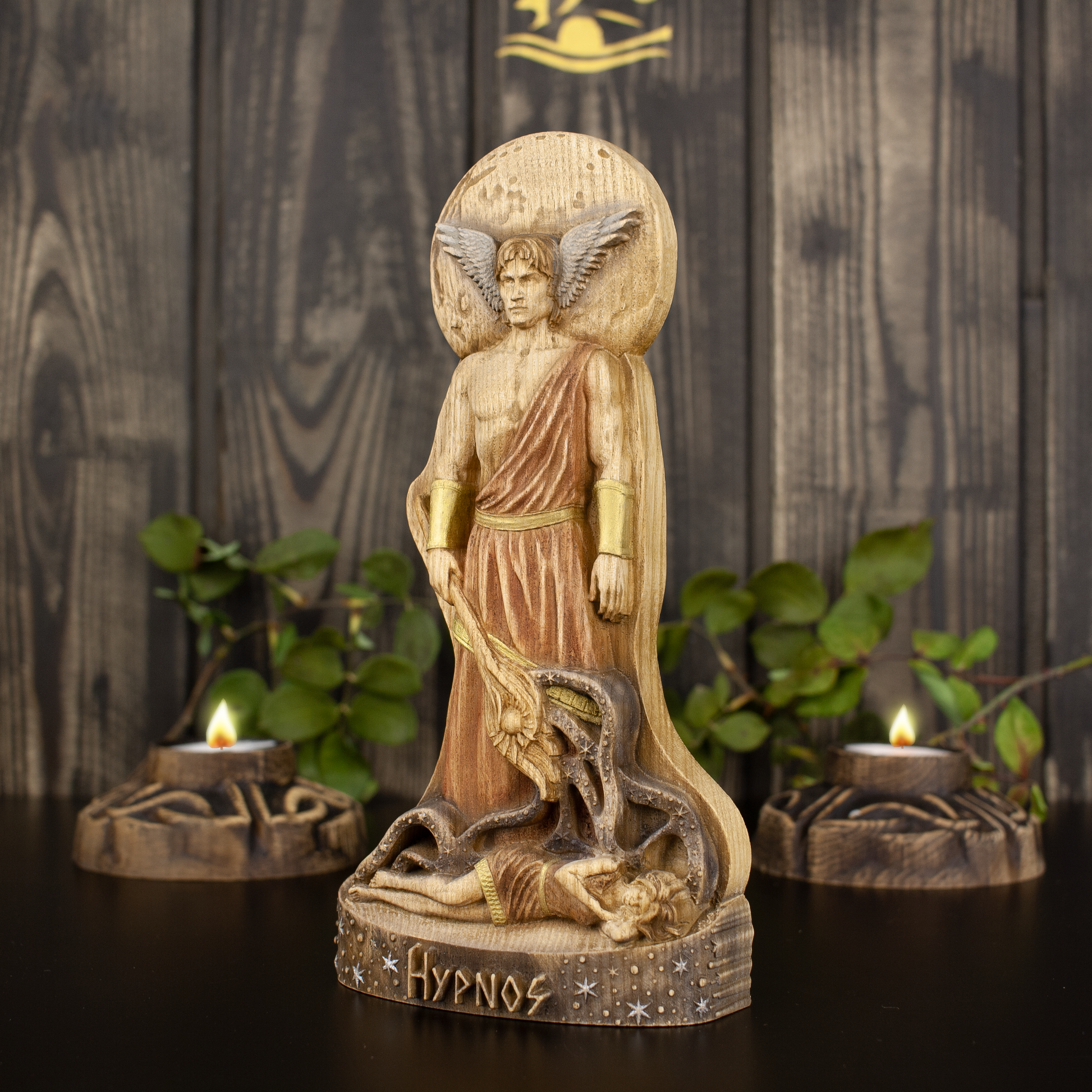 Hypnos Greek god Hypnos (god of sleep) - figurine wooden altar carved wooden statue Greek mythology