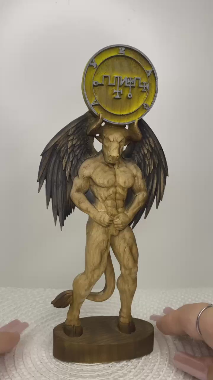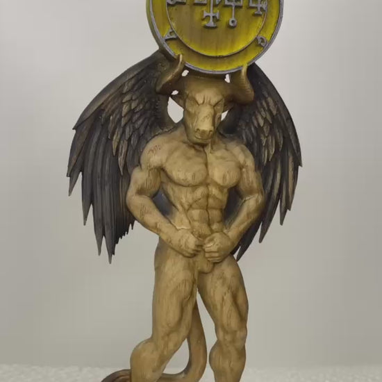 King Zagan Statue: Wooden Demon from Goetia Occult Decor, Sigil Zagan Pagan Altar