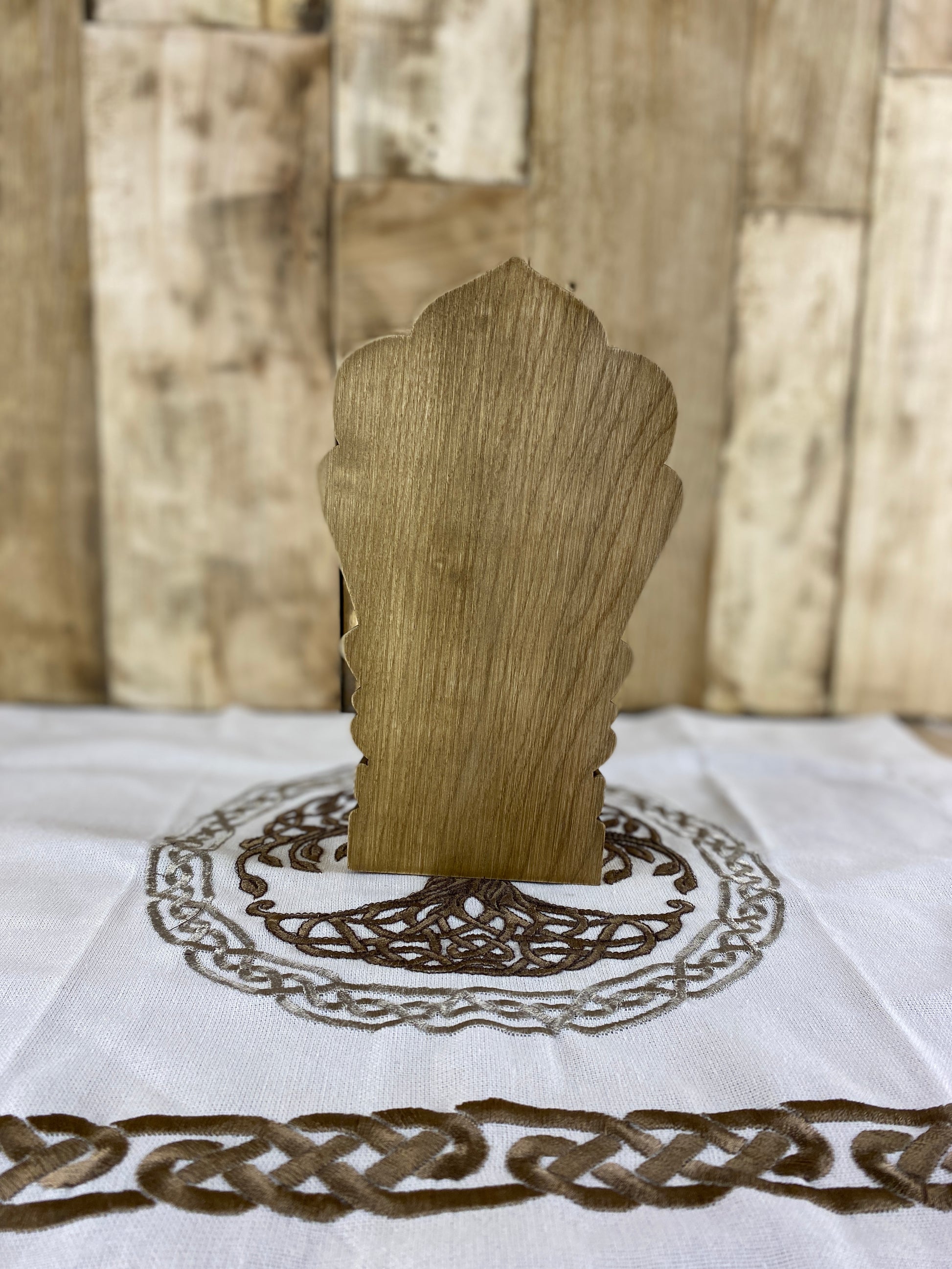 We present a unique wooden statue of the goddess Lakshmi, a symbol of wealth, fortune, and well-being in Hindu tradition. Expertly hand-carved from natural ash wood, this elegant figurine brings a warm, organic charm to any interior.