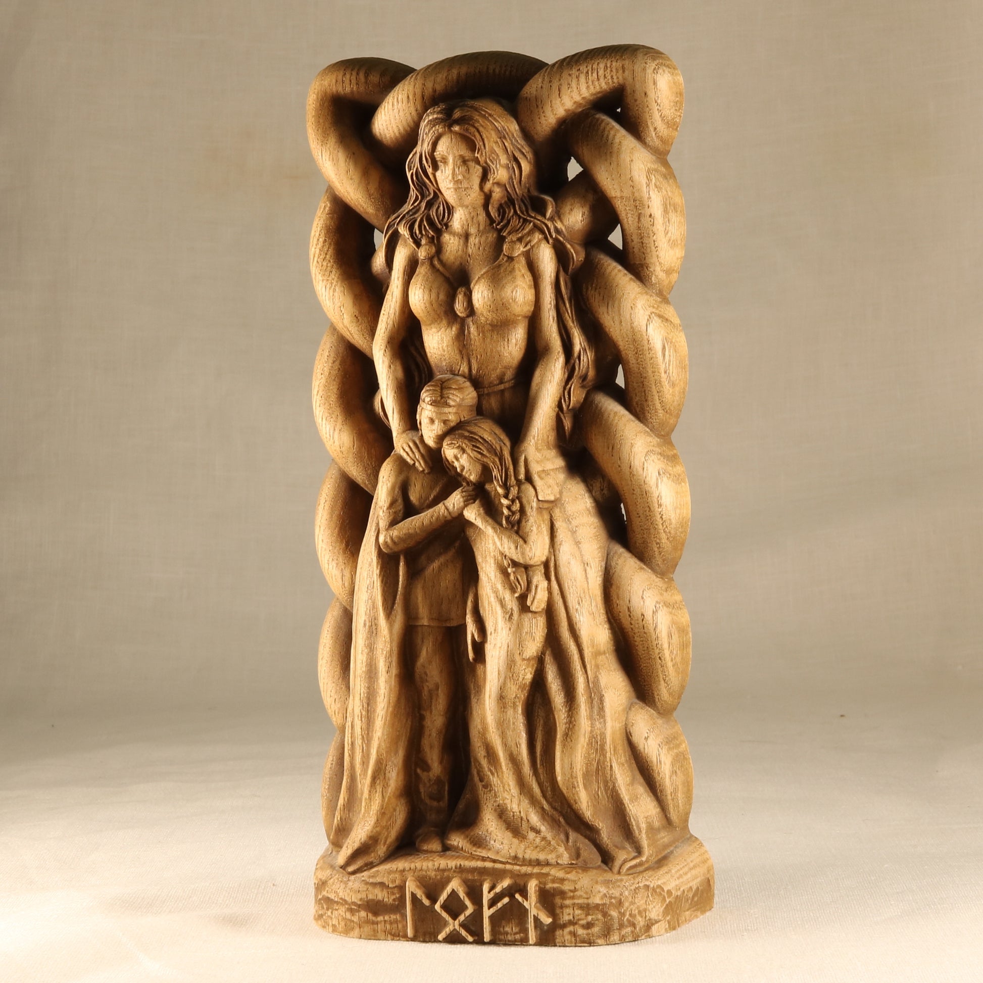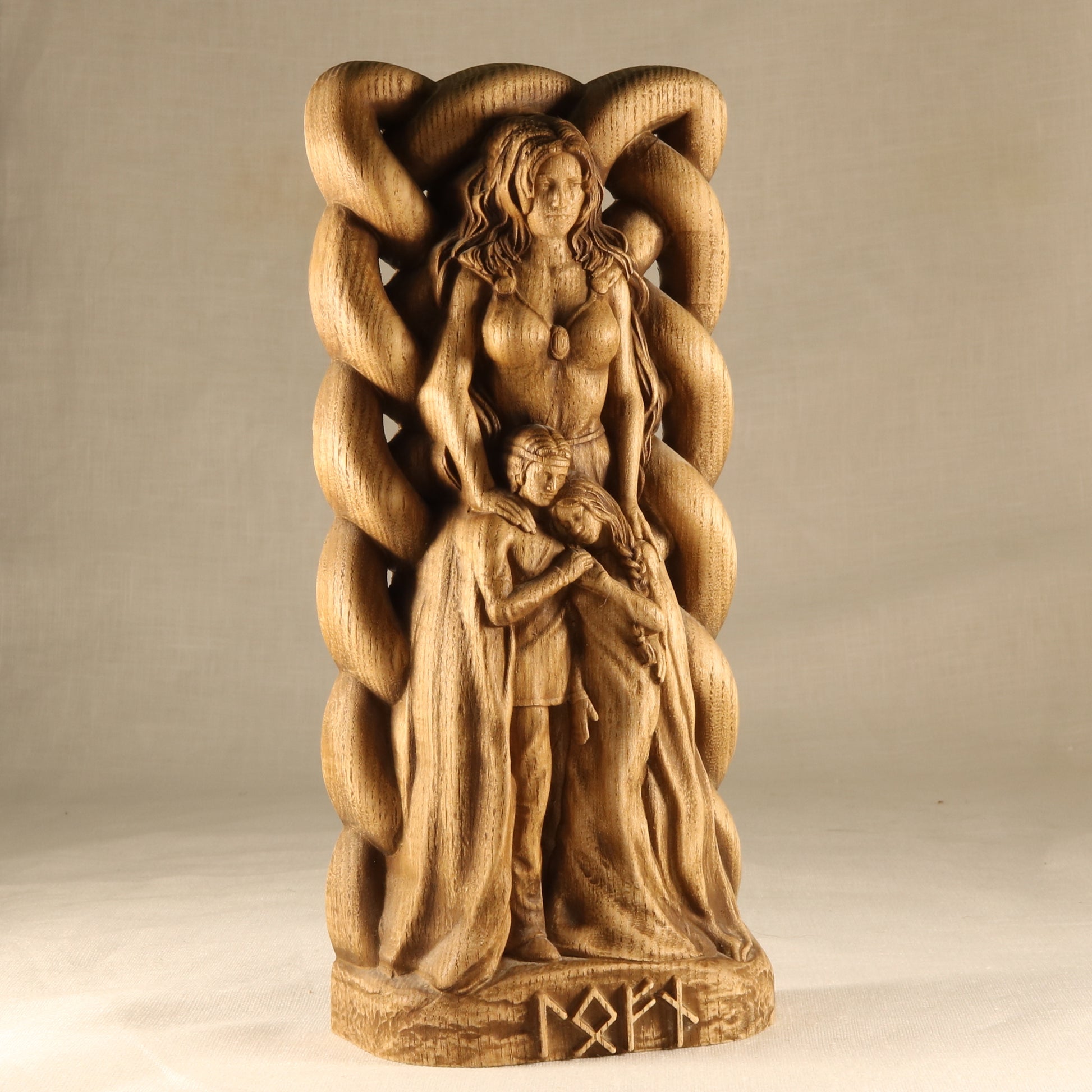 Lofn, Wood carved, Wooden statue, Norse pagan altar decor