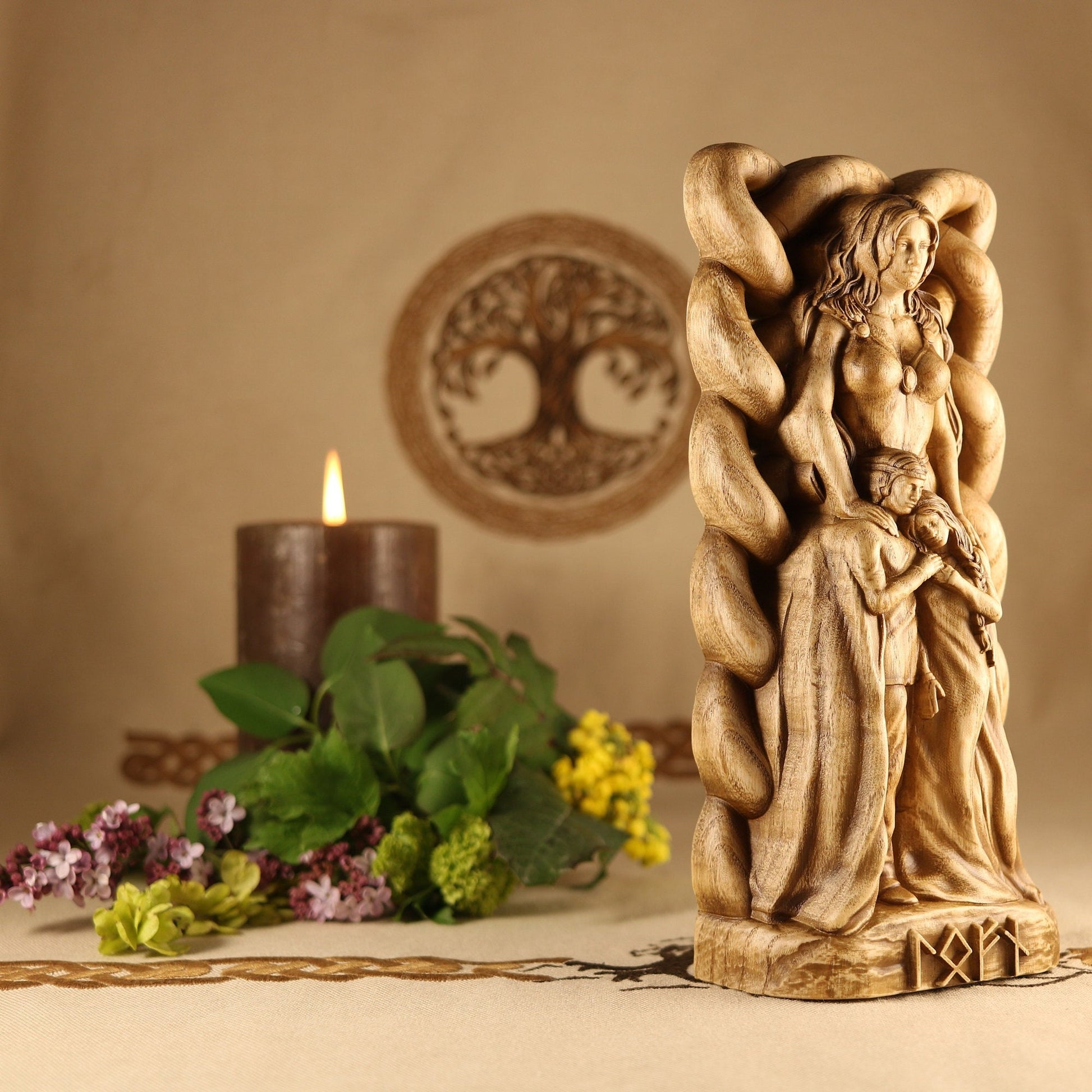 Lofn is the goddess of secret love and complete sexual liberation, and this handmade wooden statue is a beautiful tribute to her. The statue is carved from ecological material and features intricate details that make it a stunning addition to any home. The varnish coating protects the wood and ensures that the statue will last for years. Whether you're a fan of Norse mythology or simply appreciate beautiful art, this Lofn statue is a must-have.