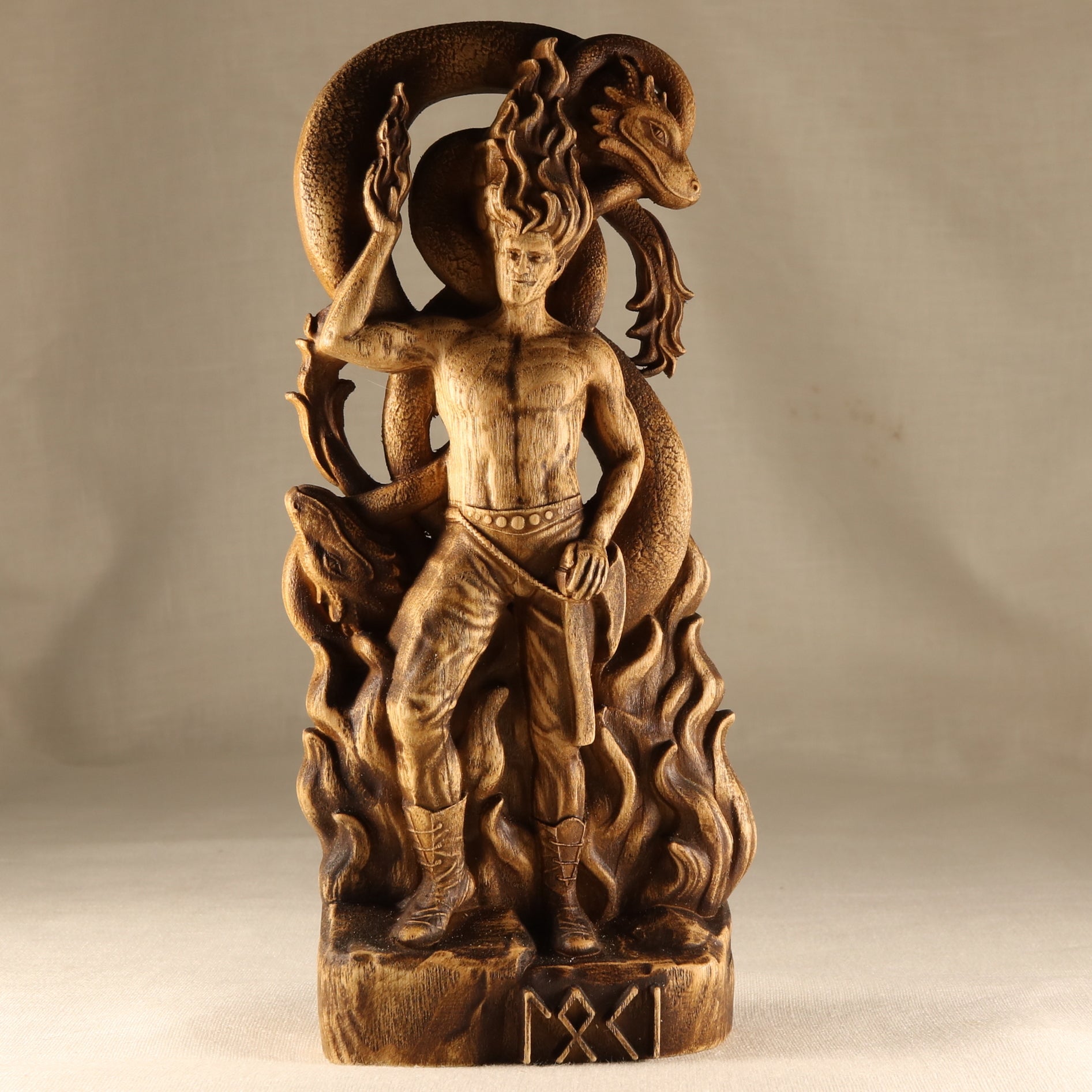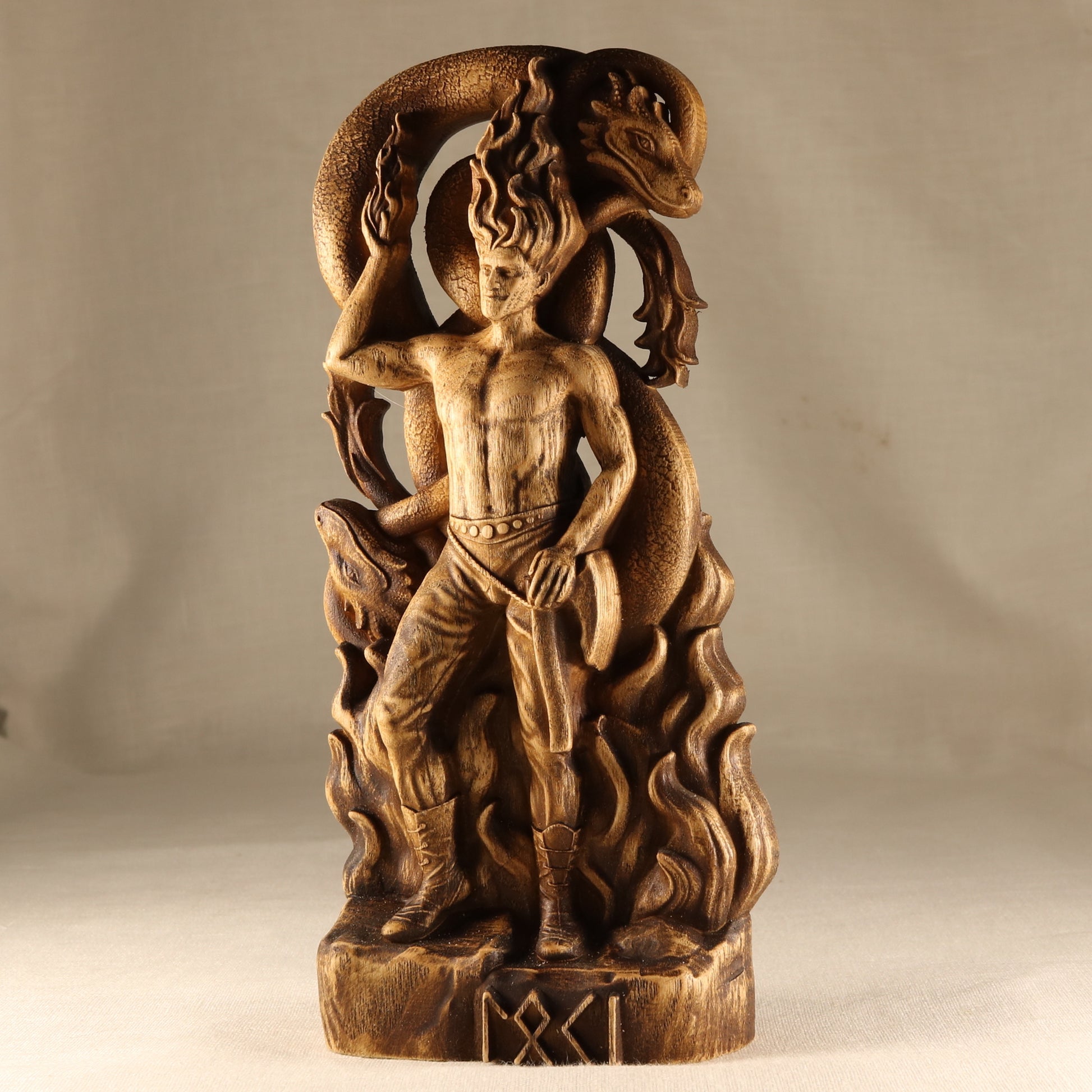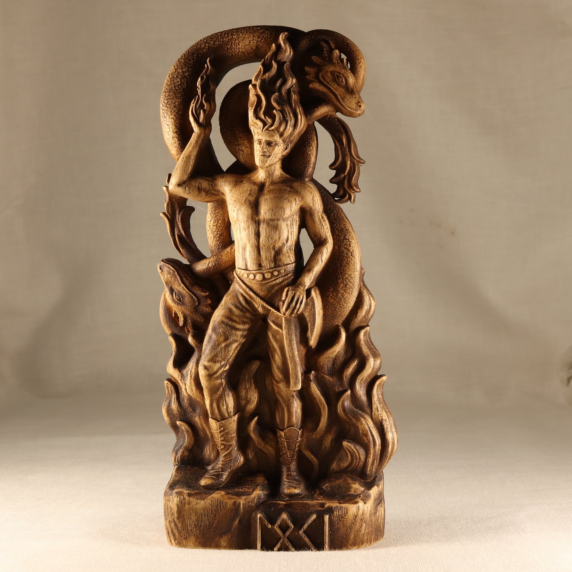 Looking for a unique way to show your devotion to the god of fire and deceit? This handmade Loki statue is perfect for any Loki altar or Norse pagan decor. Carved from ecological ash tree material, this statue is both stylish and eco-friendly. The varnish coating protects the wood and ensures that your statue will last for years to come.