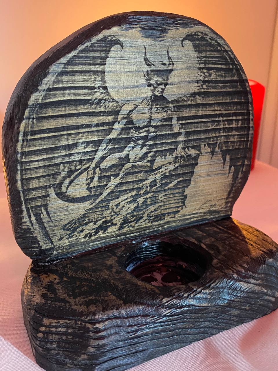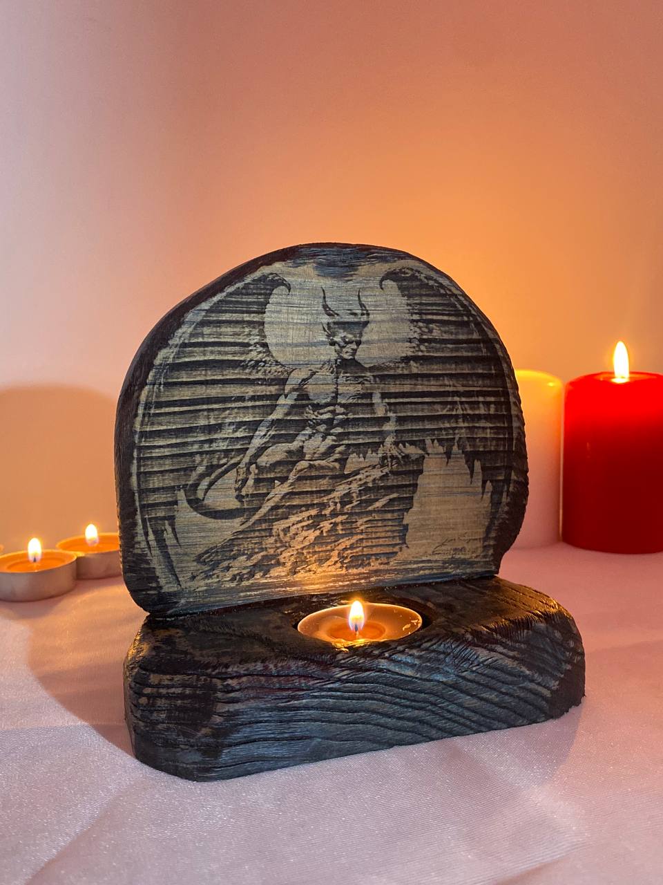 Wooden Altar Candle Holder – Lucifer Mini Altar Statue
