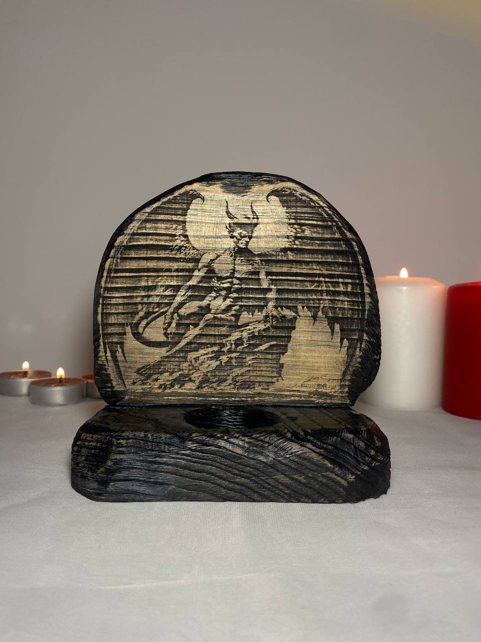 Lucifer Lucifer altar Mini altar Goddess altar Demon statue Occult decor Wooden candle holder Witchcraft candles Fallen ange altar