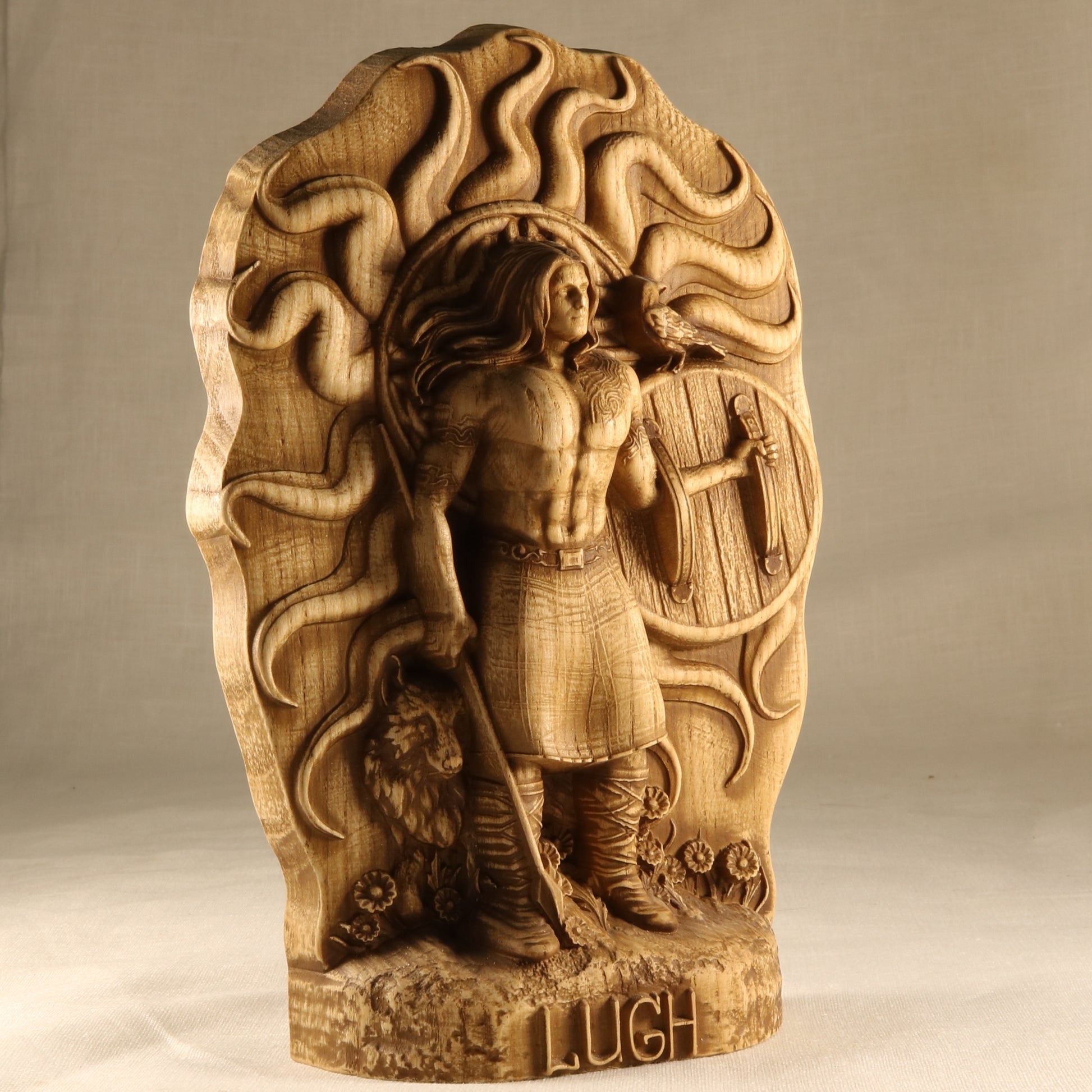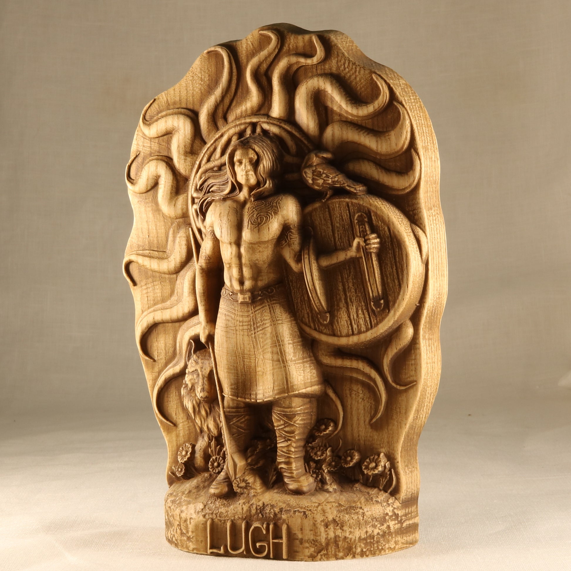 Lugh Celtic god Wood sculpture art Wooden statuettes Carved wood statue