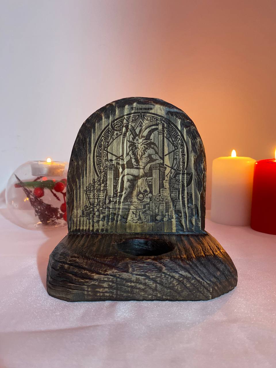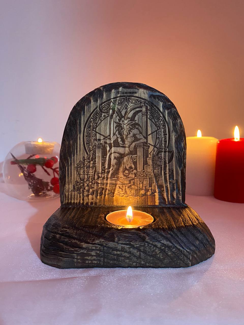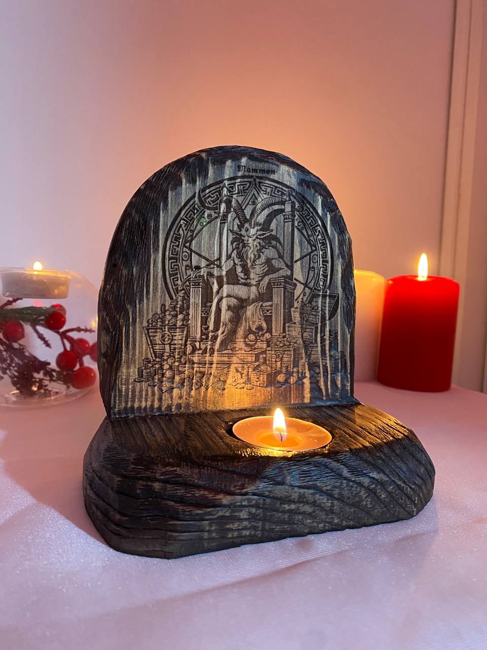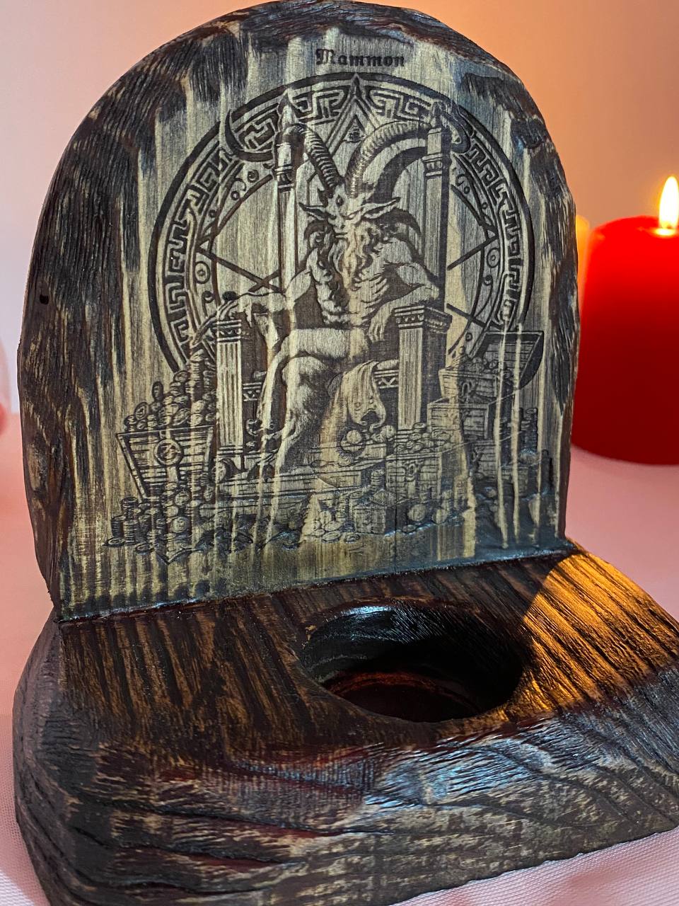 Mammon Mammon altar Demon mammon Occult art Occult decor Money spell Money ritual Satan altar Wooden candle holder Pagan altar Witchcraft