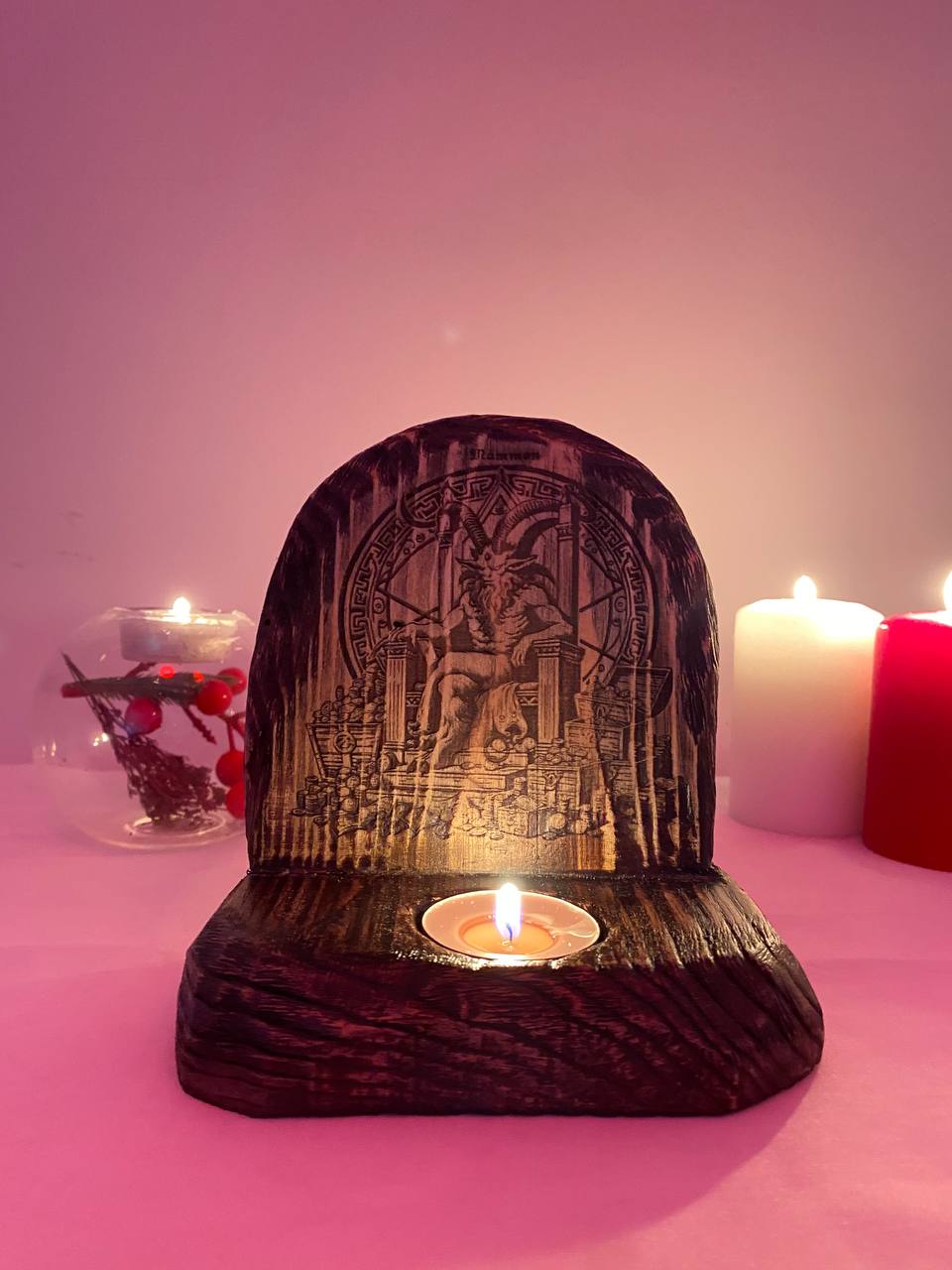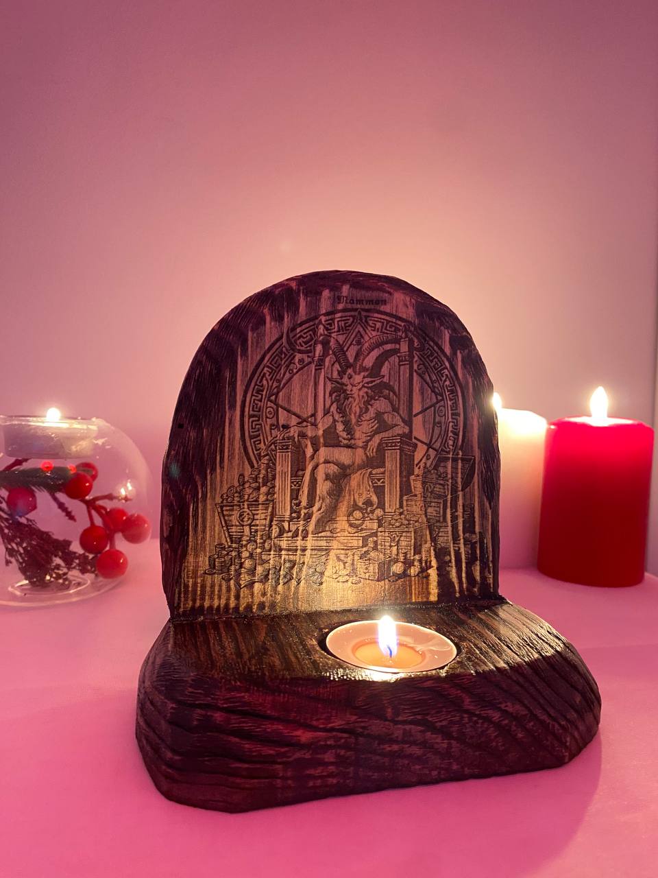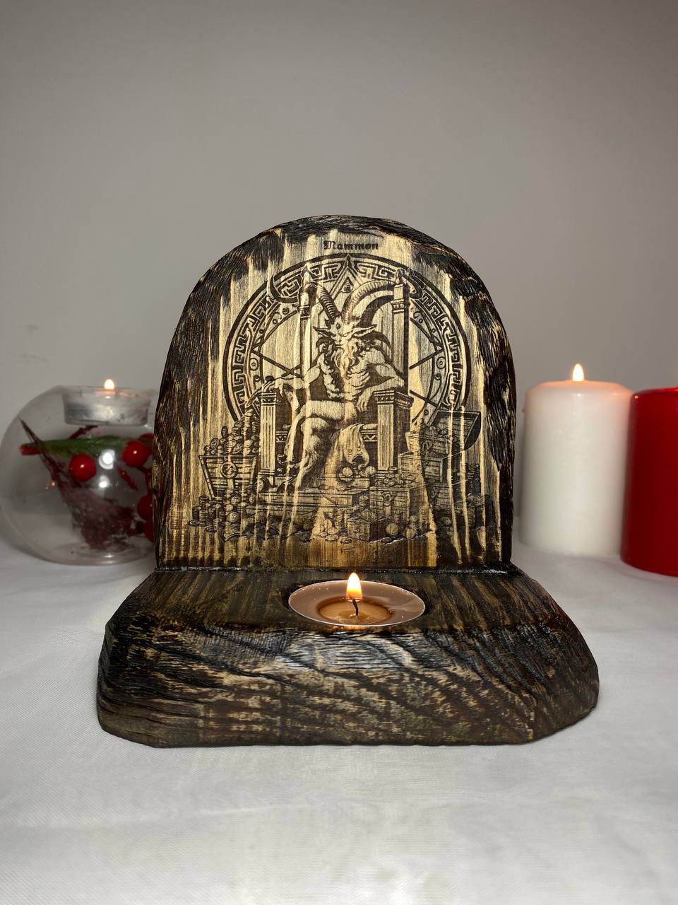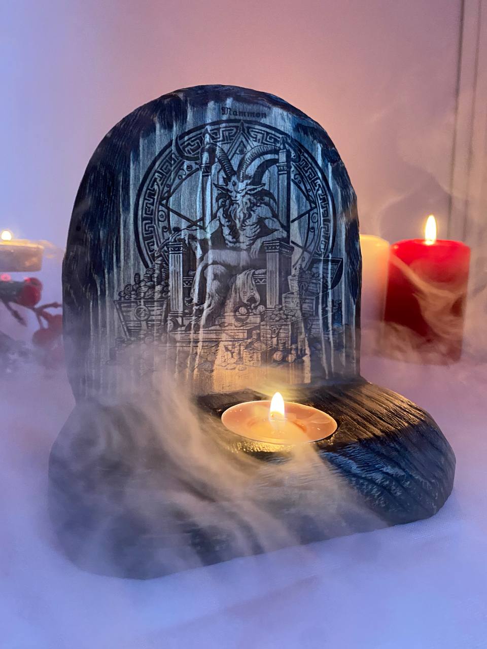 Mammon Mammon altar Demon mammon Occult art Occult decor Money spell Money ritual Satan altar Wooden candle holder Pagan altar Witchcraft