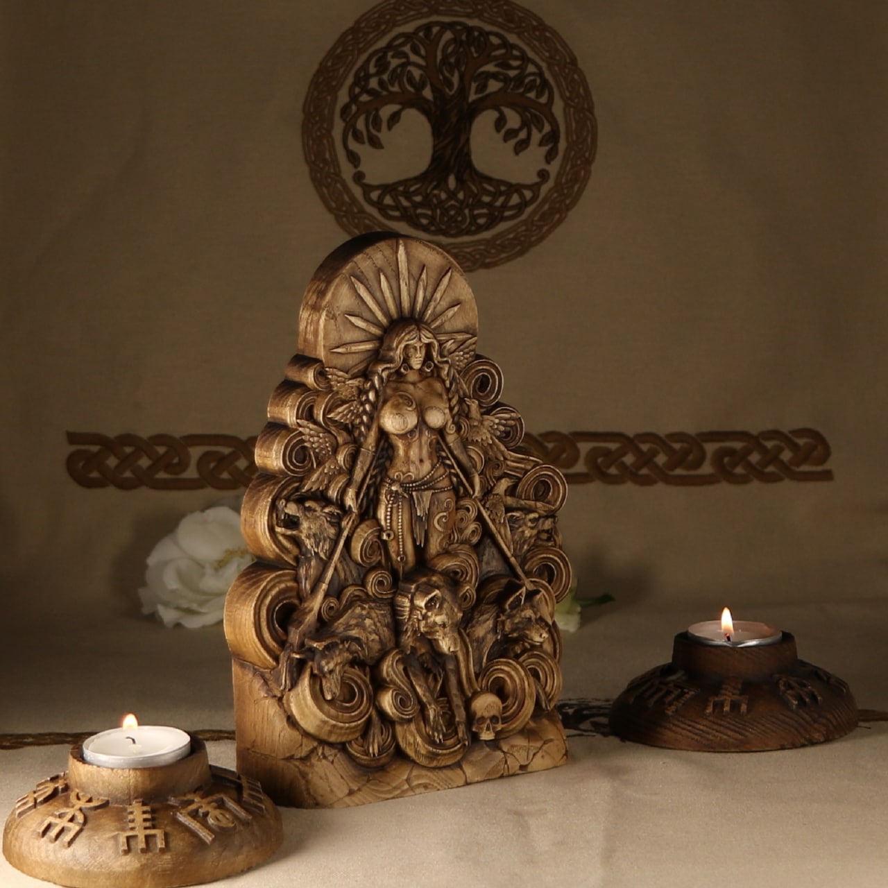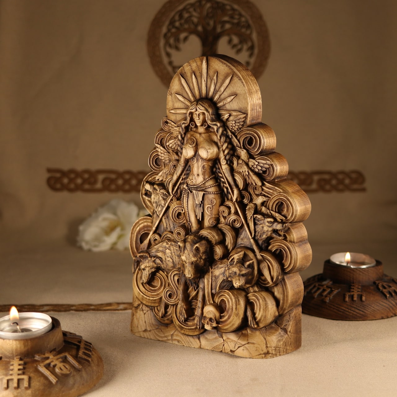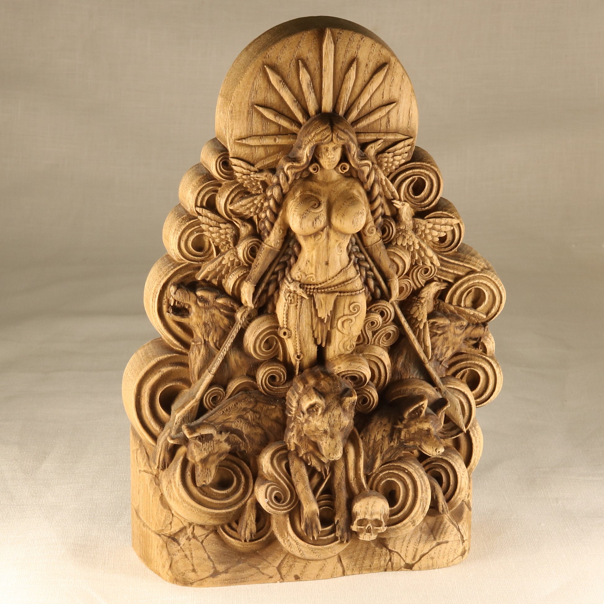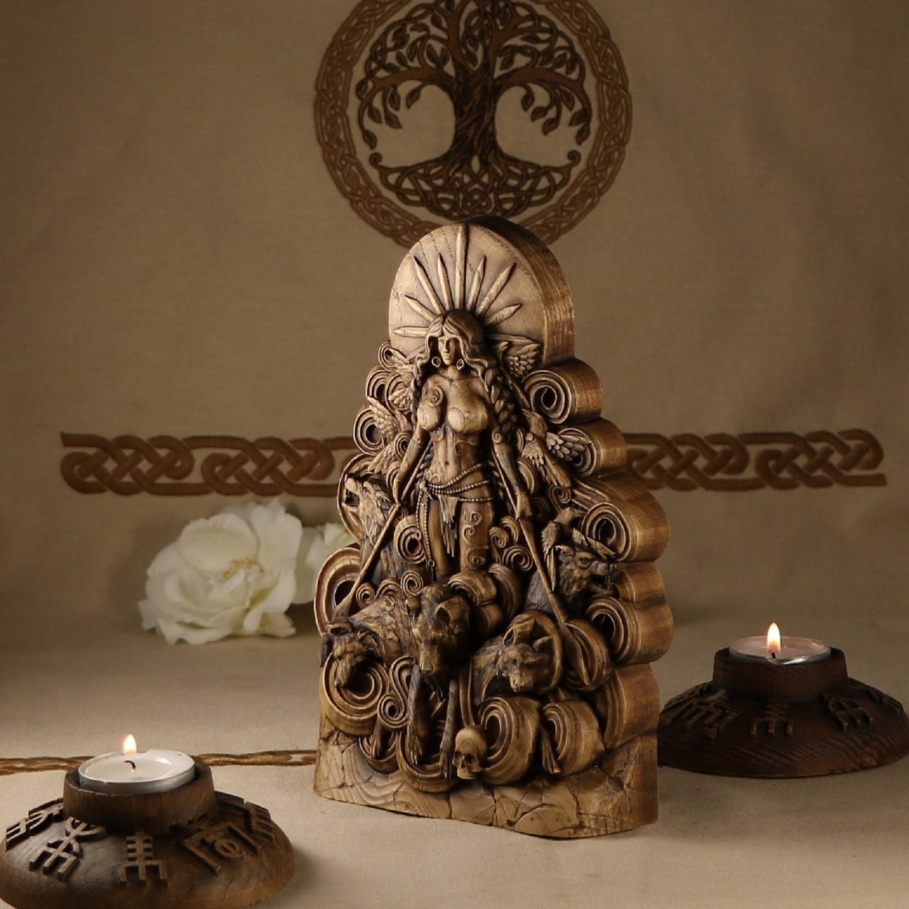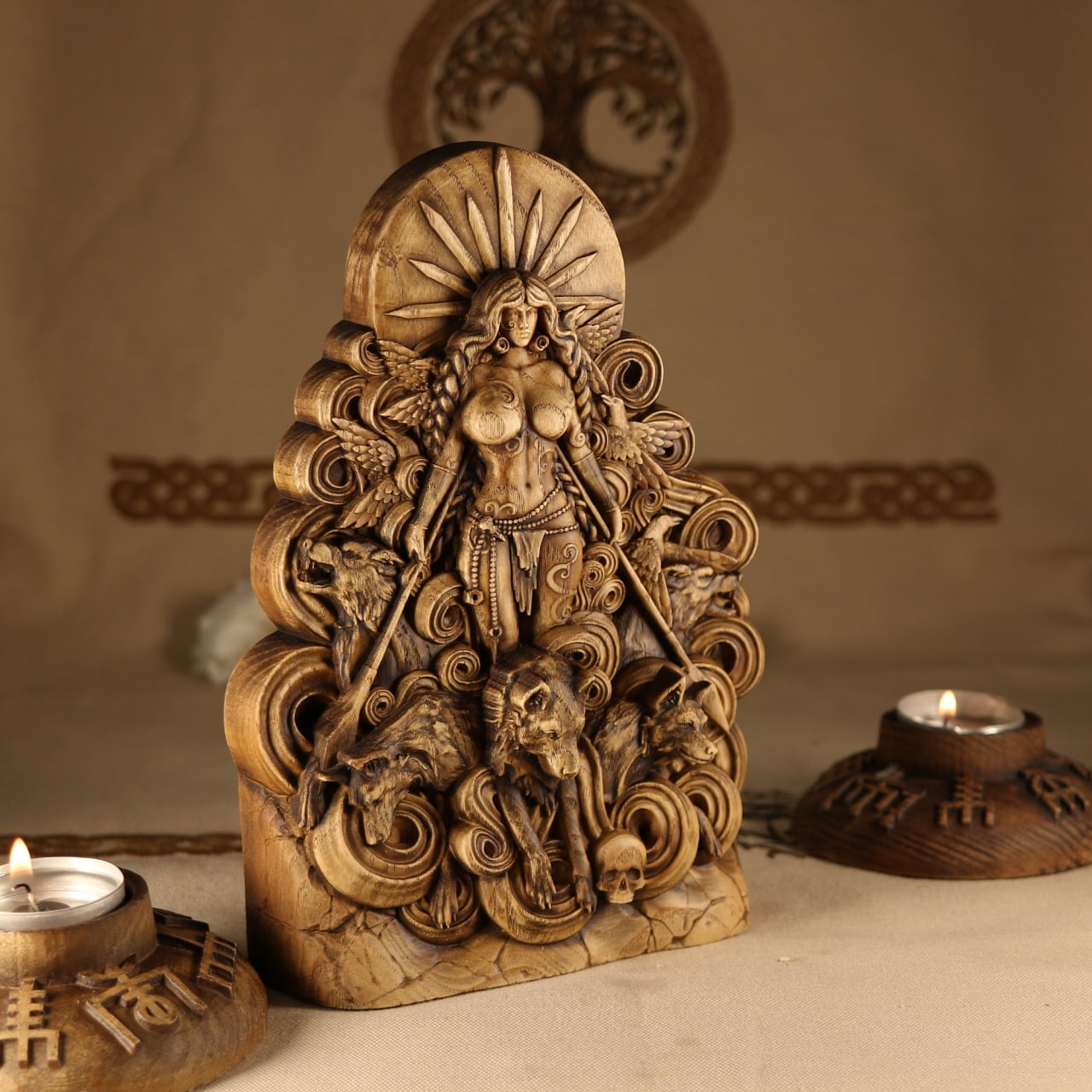 The Morrigan is a powerful Celtic goddess of war, struggle, and abundance. She is a force to be reckoned with, and this statue perfectly captures her essence. This beautiful wooden statue is handmade from ecological materials, making it the perfect addition to any goddess altar or pagan decor. The intricate carving and stunning details make this statue a true work of art. Whether you are looking for a meaningful gift or a powerful addition to your own spiritual practice, the Morrigan statue is sure to please.