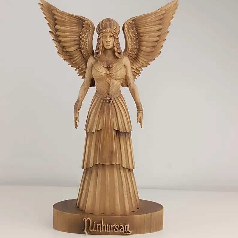 Bring the primordial power of ancient Mesopotamia into your space with this wooden statue of Ninhursag, the great mother goddess of Sumerian mythology. Revered as the creator, nurturer, and protector of life, she embodies the grounding force of the earth and the sacred feminine energy that sustains all living beings. Hand-carved from natural ash wood, the sculpture radiates warmth, stability, and timeless presence — a meaningful piece for spiritual decor, altars, or mythology collections.