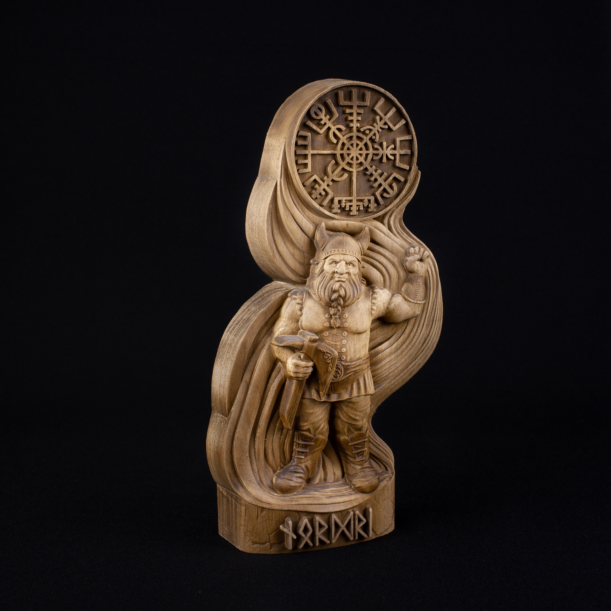 This wooden statuette Nordri serves as a wonderful decorative accessory to adorn any interior space. It adds a touch of magic and mystery to your home, office, or any other setting.