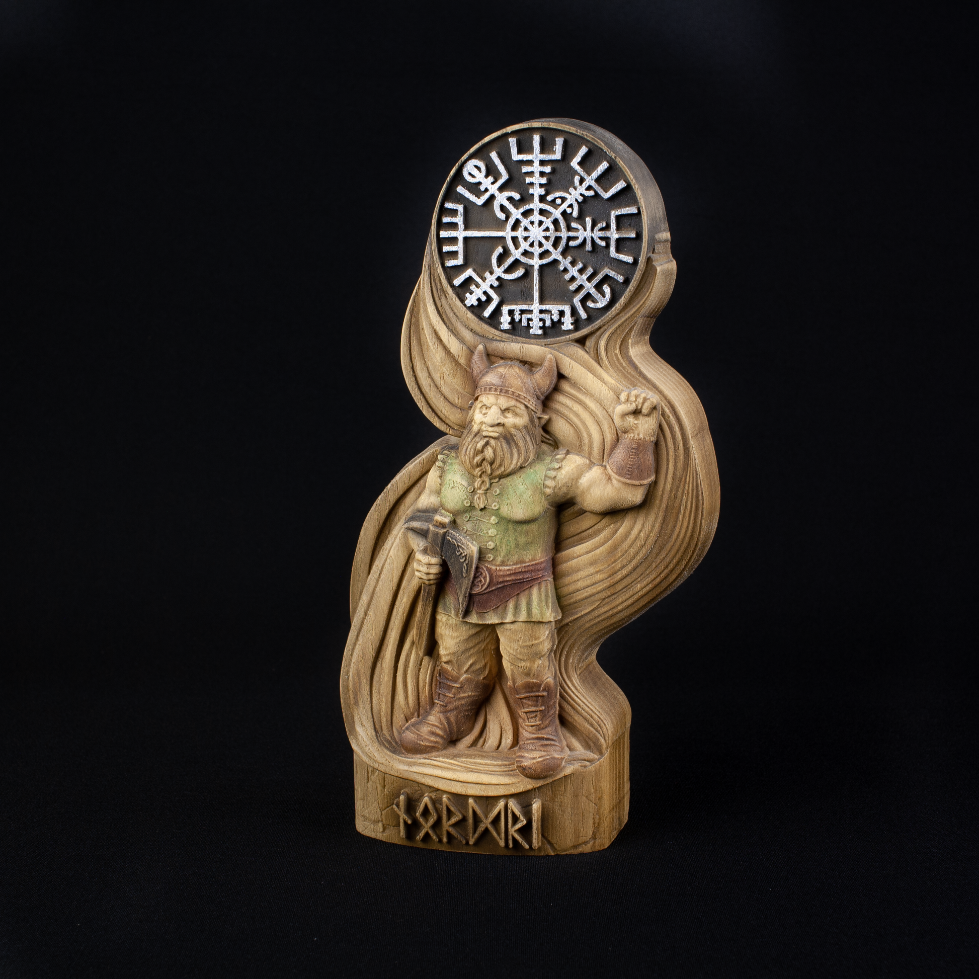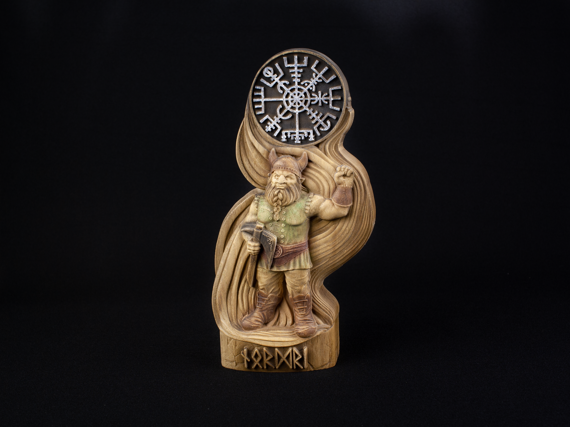 The wooden statuette Nordri is a unique art object depicting a gnome symbolizing the northern direction in the world of Scandinavian mythology. Gnomes are known for their ability to work deep within the earth, where they create incredible things from precious stones and metals.